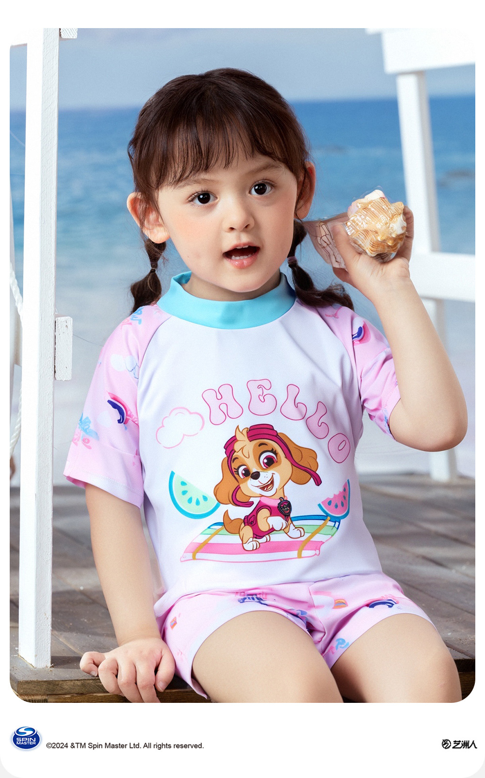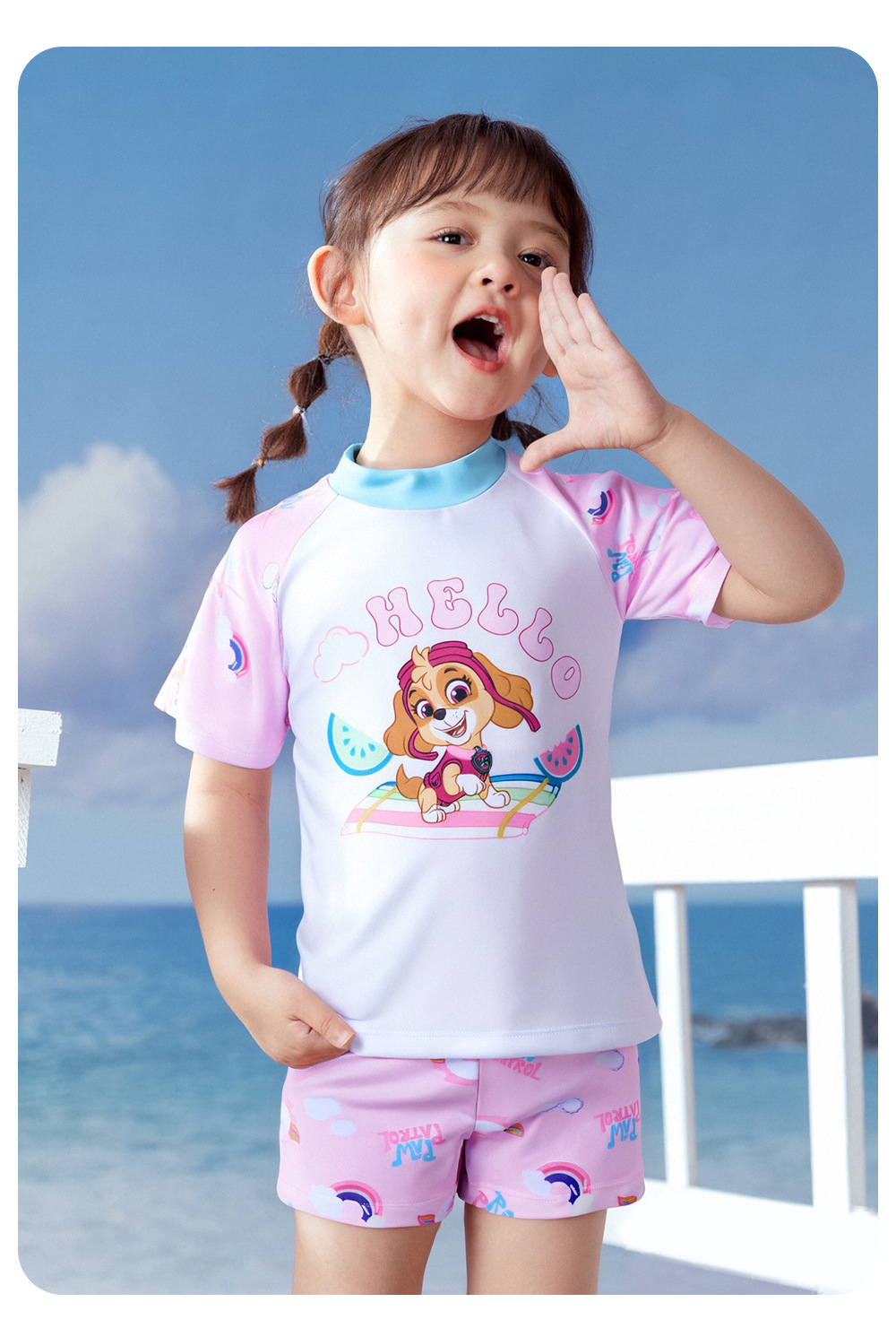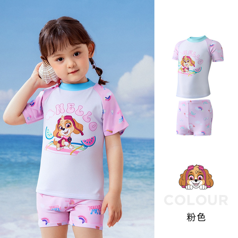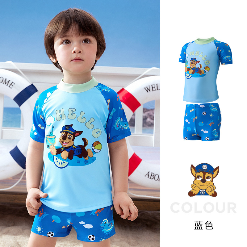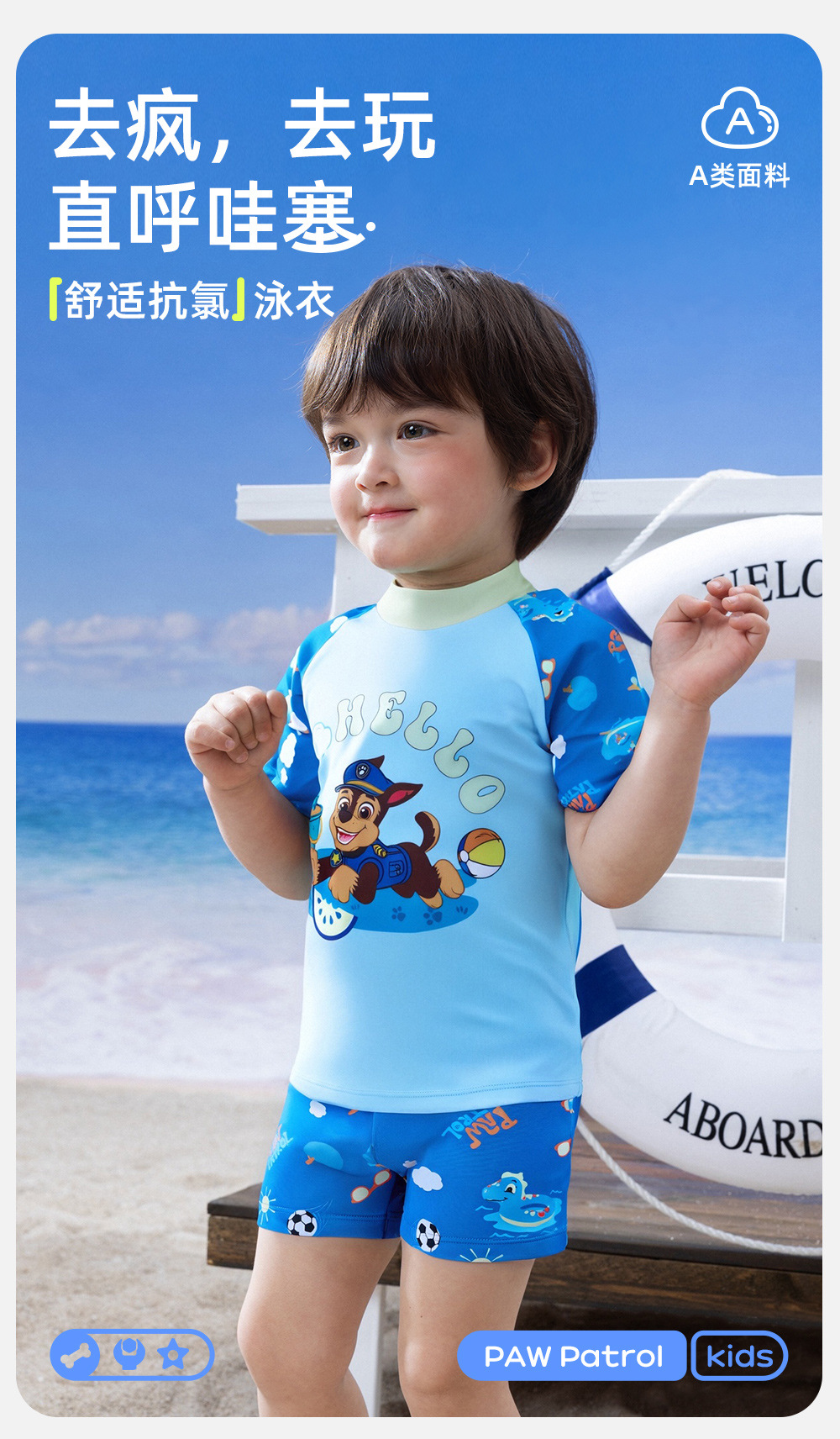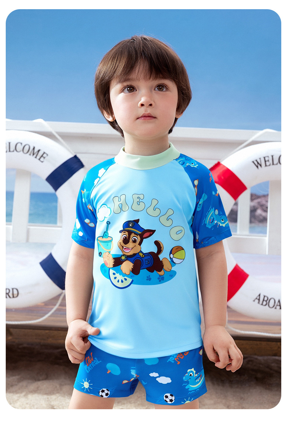 왕왕 팀 아기 수영복 소년 및 소녀 분할 반팔 수영복 베이비 비치 선 스크린 클래스 수영복