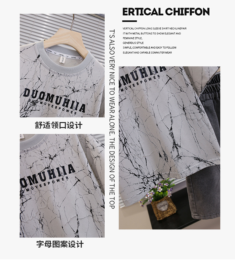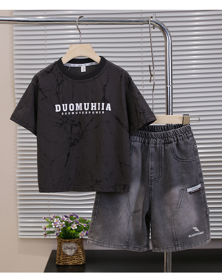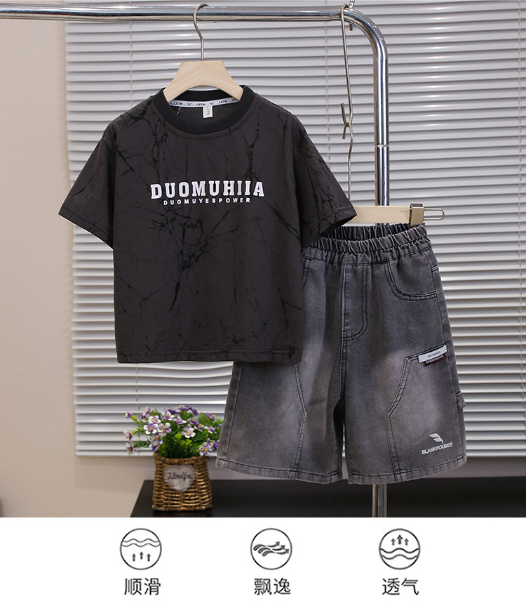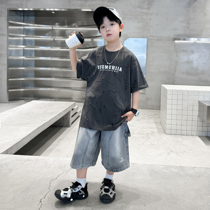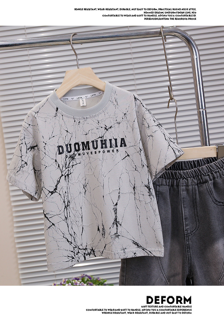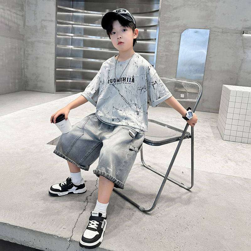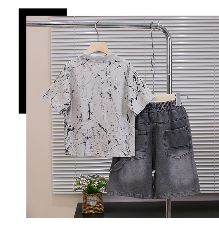 7250 소년 여름 반팔 세트 2025 새로운 외국 스타일 프린트 티셔츠 반바지 투피스 여름 그물 레드 3스토어 가기