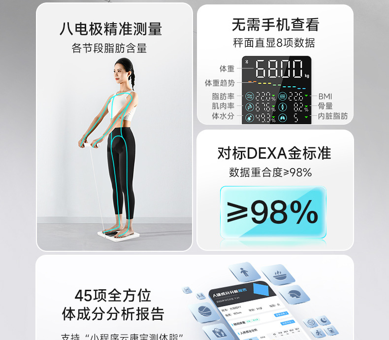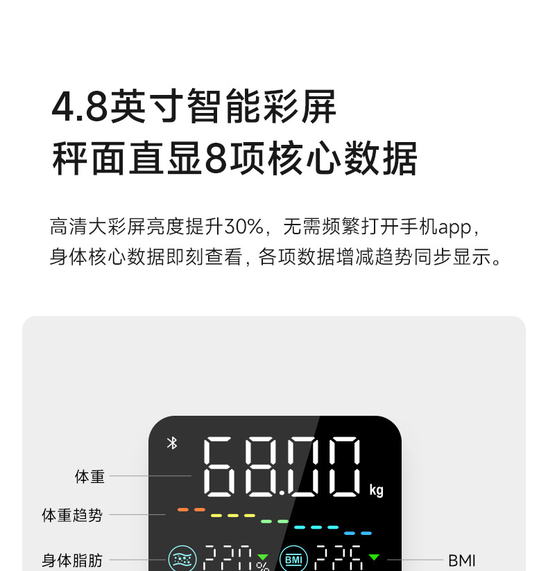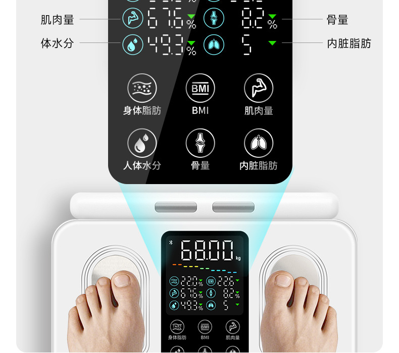 스마트 홈 대형 컬러 스크린 체중계, 정확한 블루투스 전자 체중계, 피트니스 관리용 8전극 체지방계