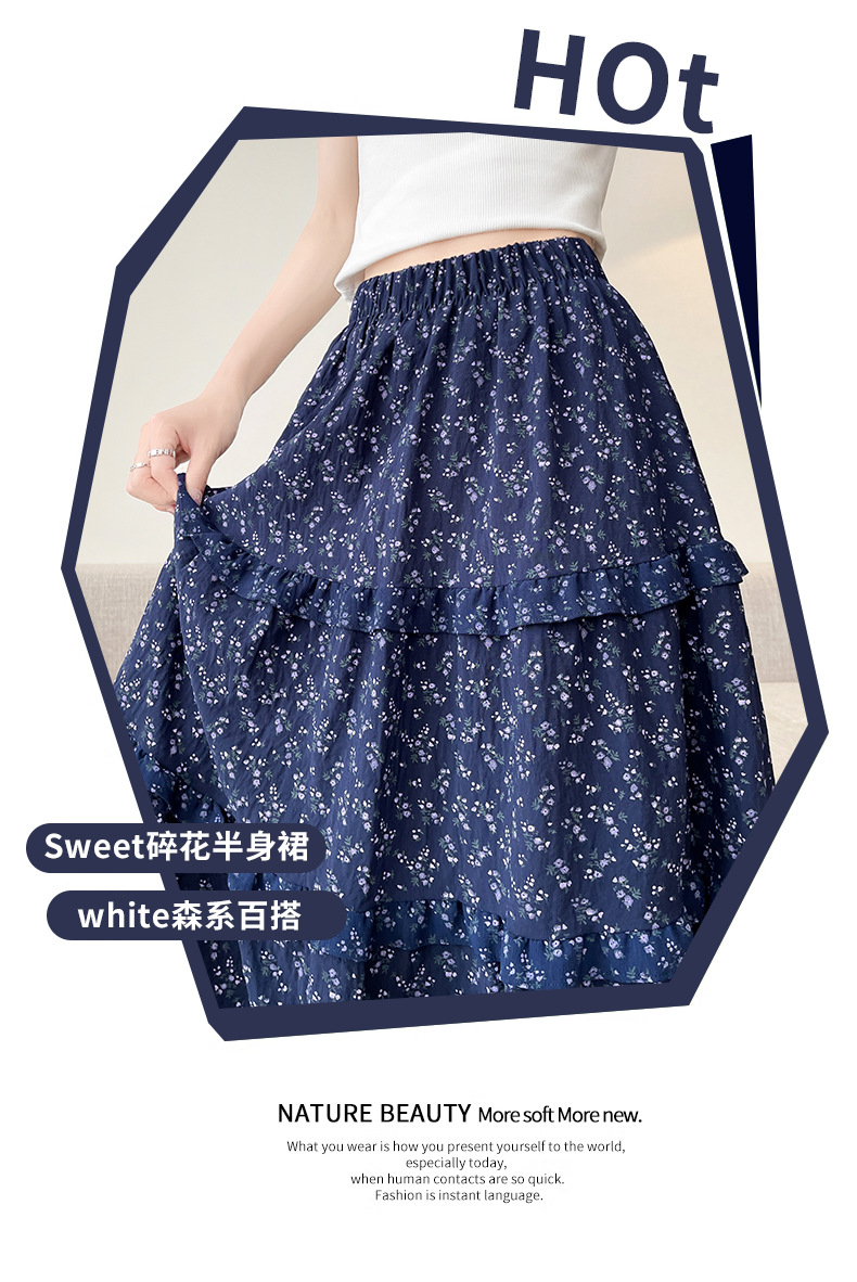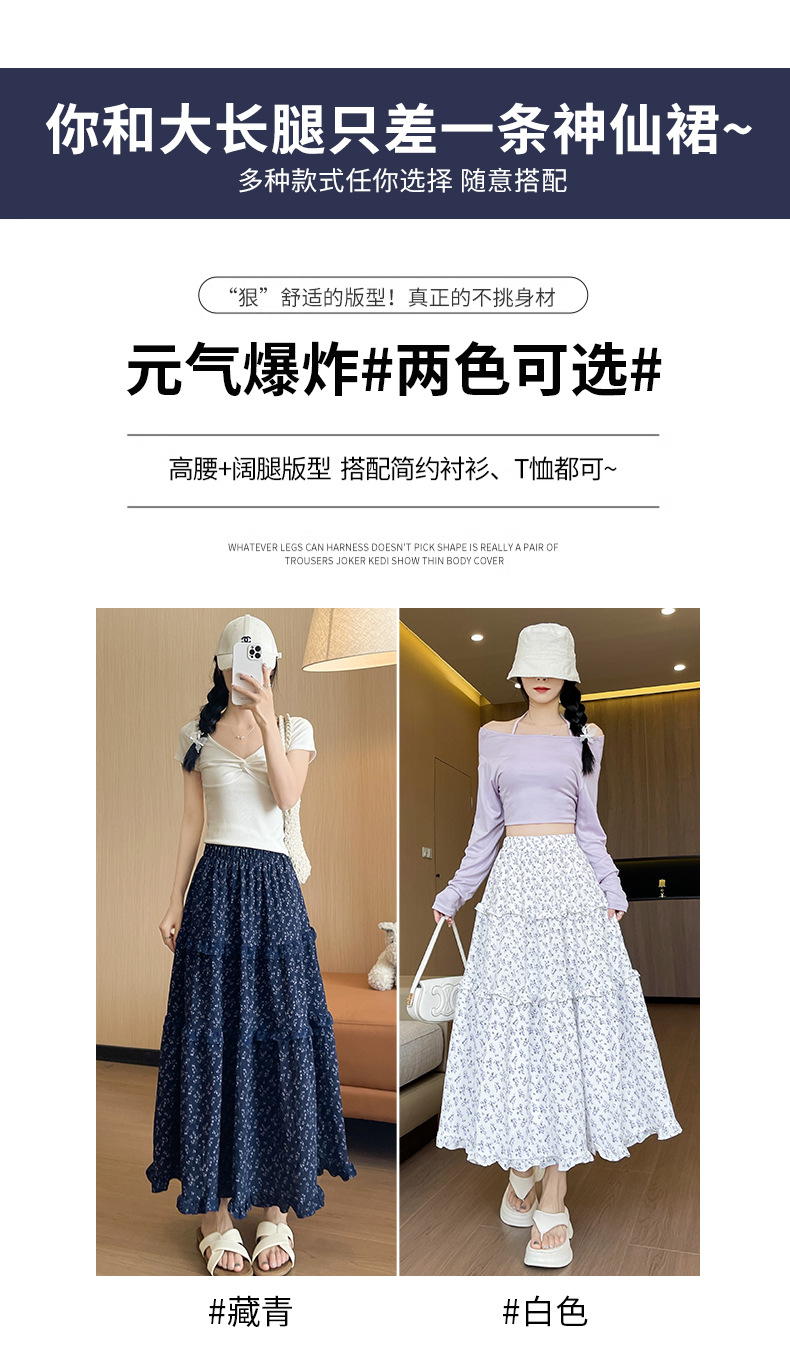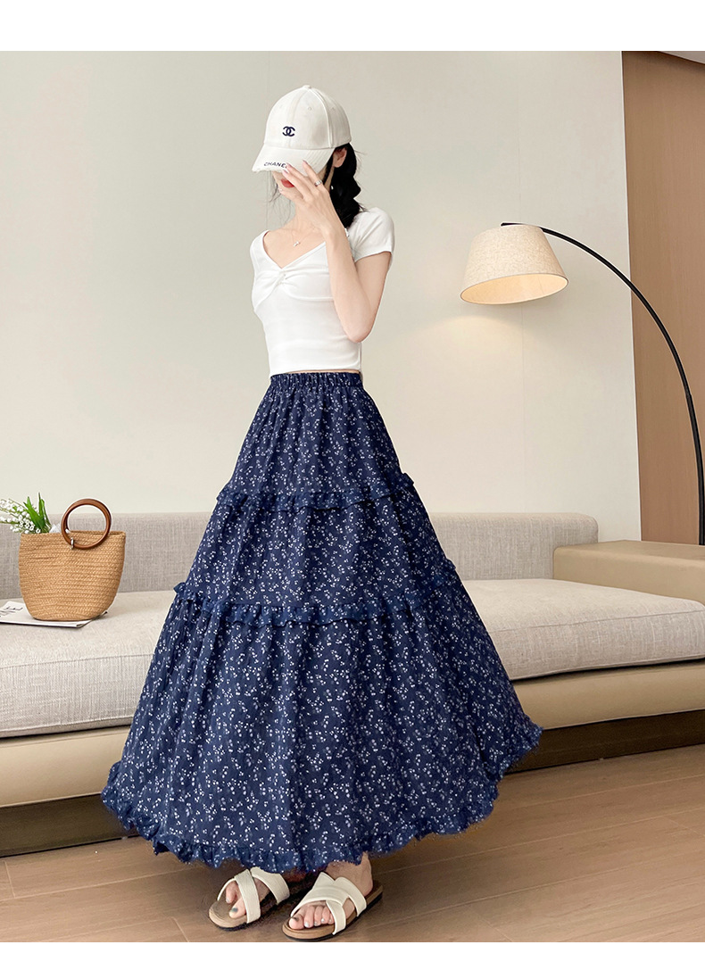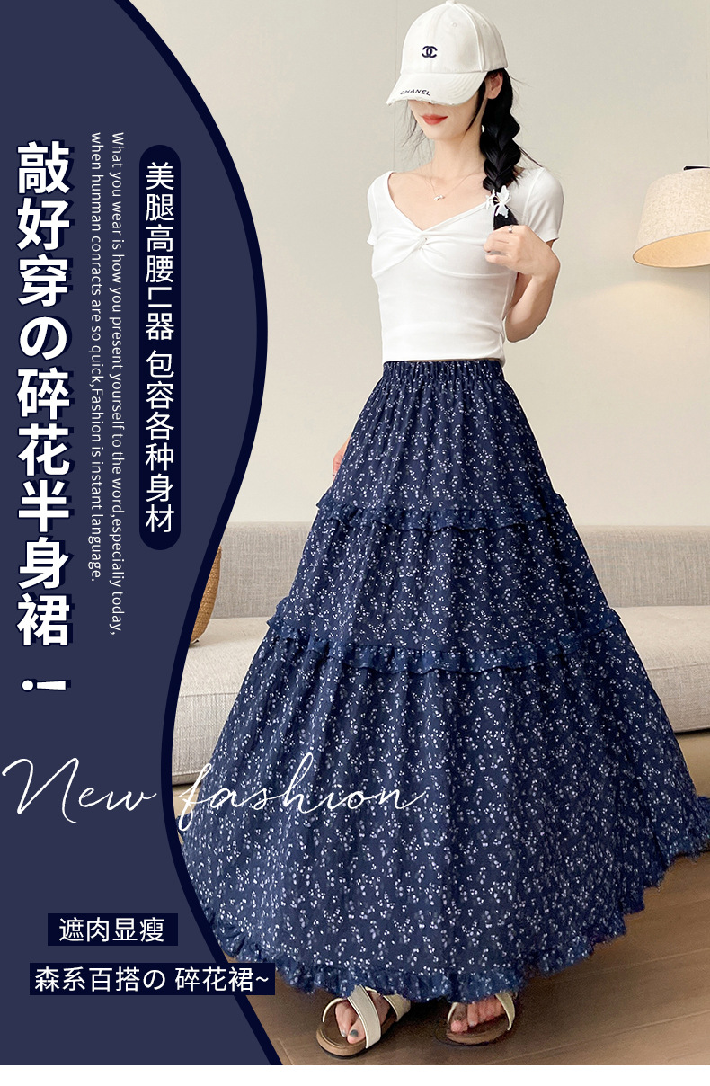 여자 치마 봄과 여름 새로운 한국 스타일 레트로 아이보리 꽃 높은 허리 A 라인 스커트 캐주얼 게으른 스타일 긴 치마스토어 가기
