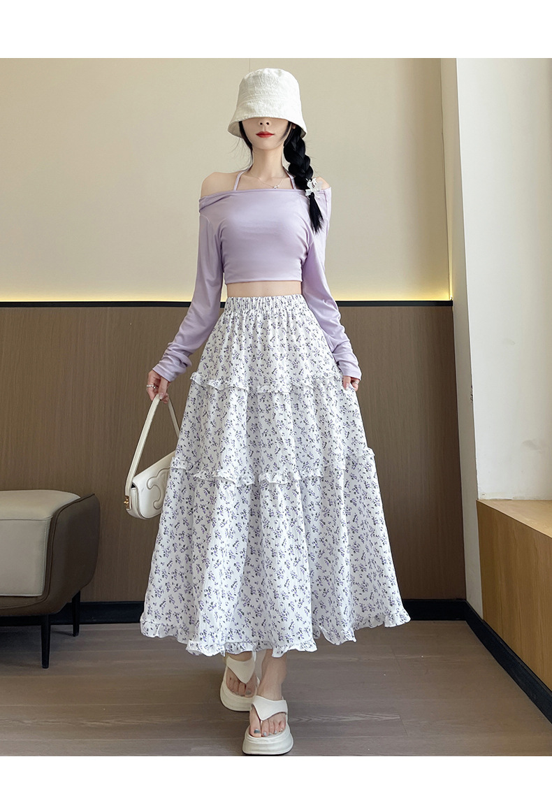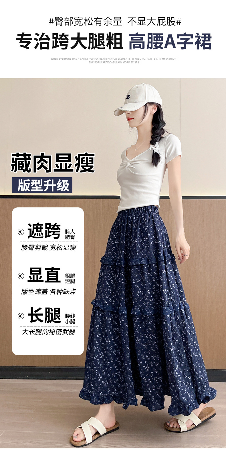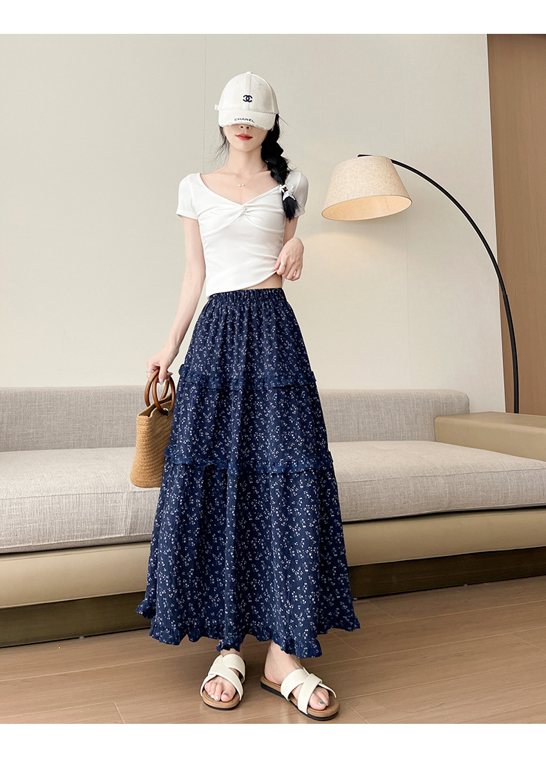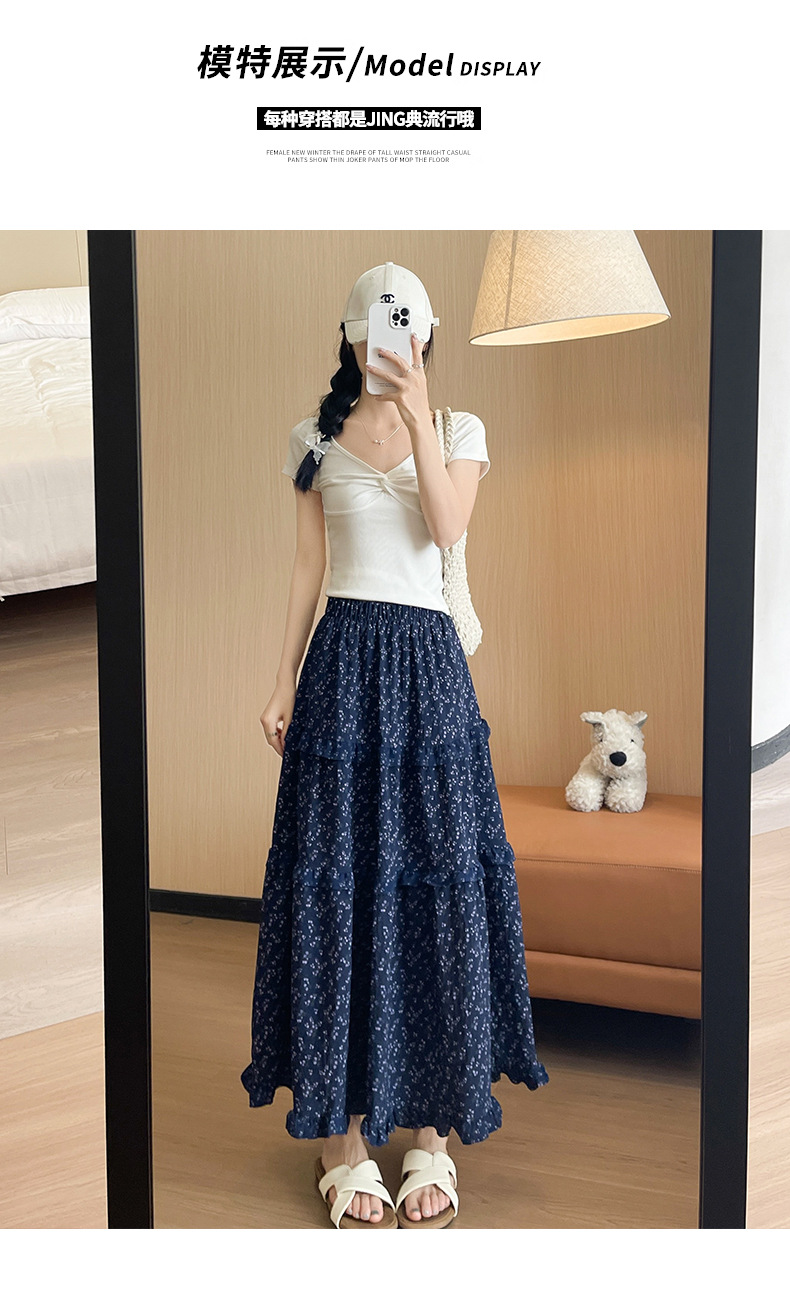 여자 치마 봄과 여름 새로운 한국 스타일 레트로 아이보리 꽃 높은 허리 A 라인 스커트 캐주얼 게으른 스타일 긴 치마스토어 가기