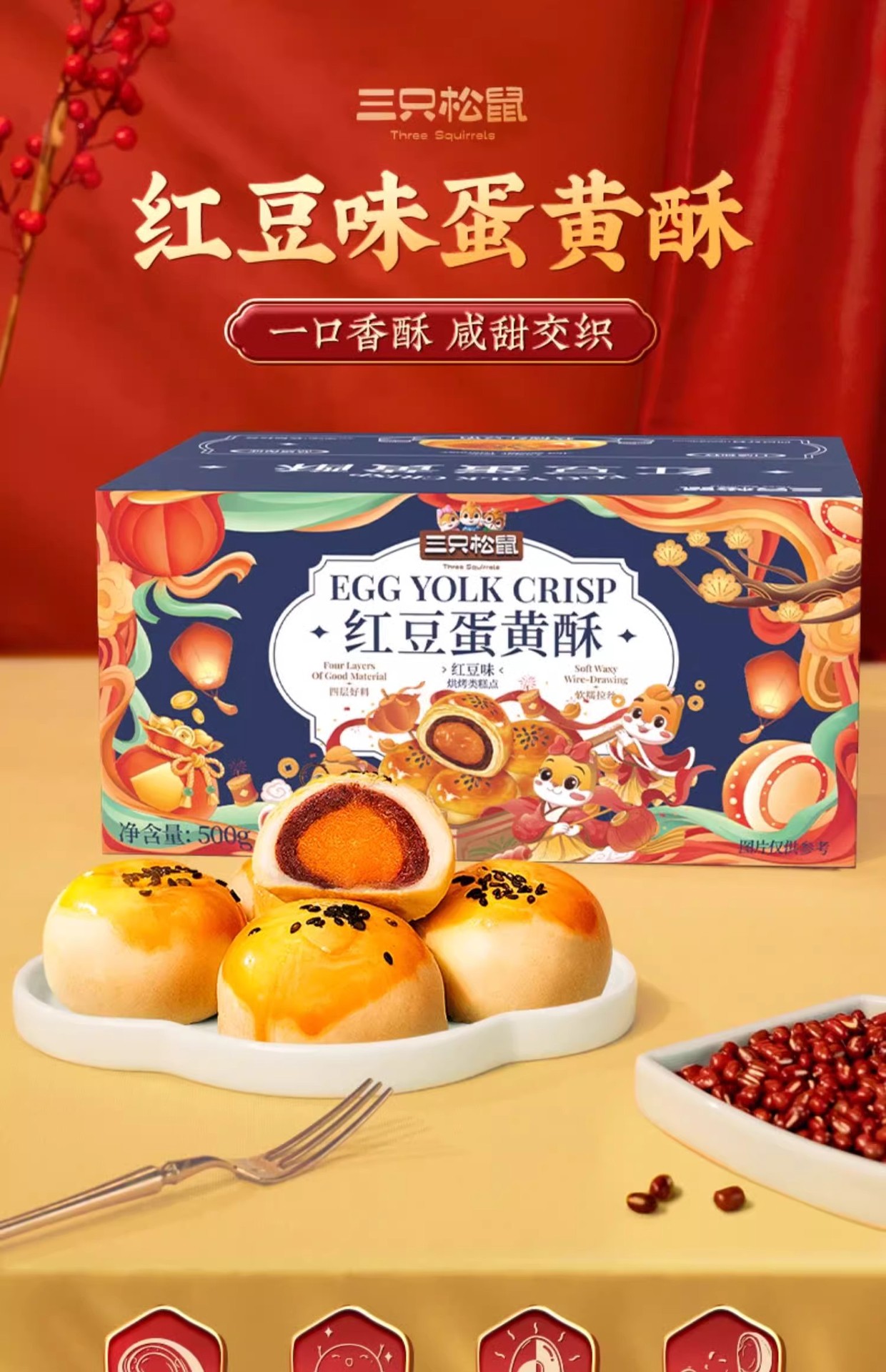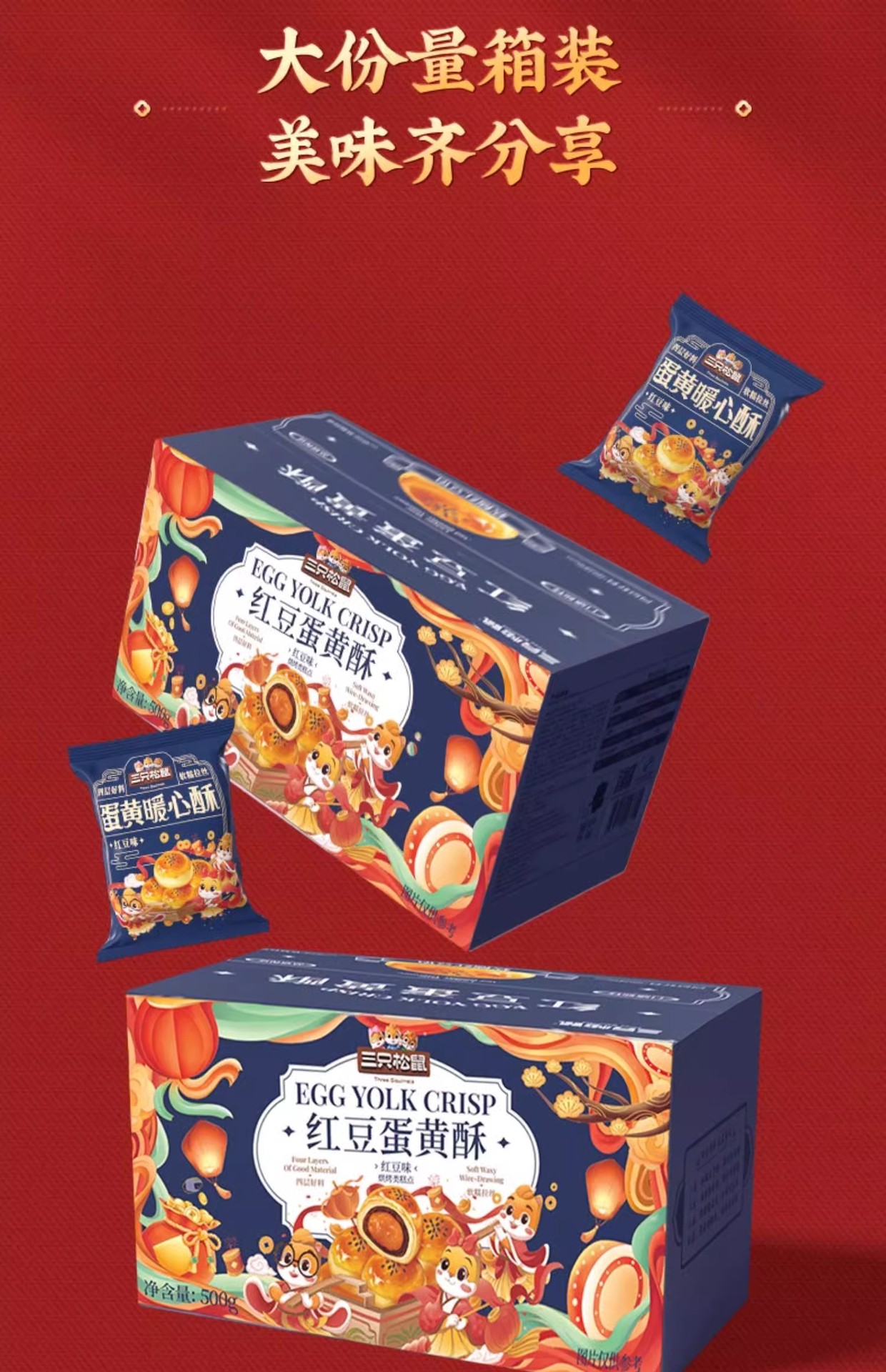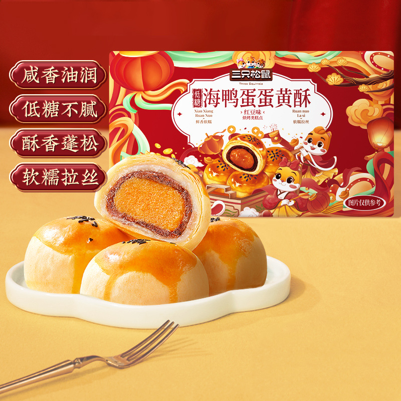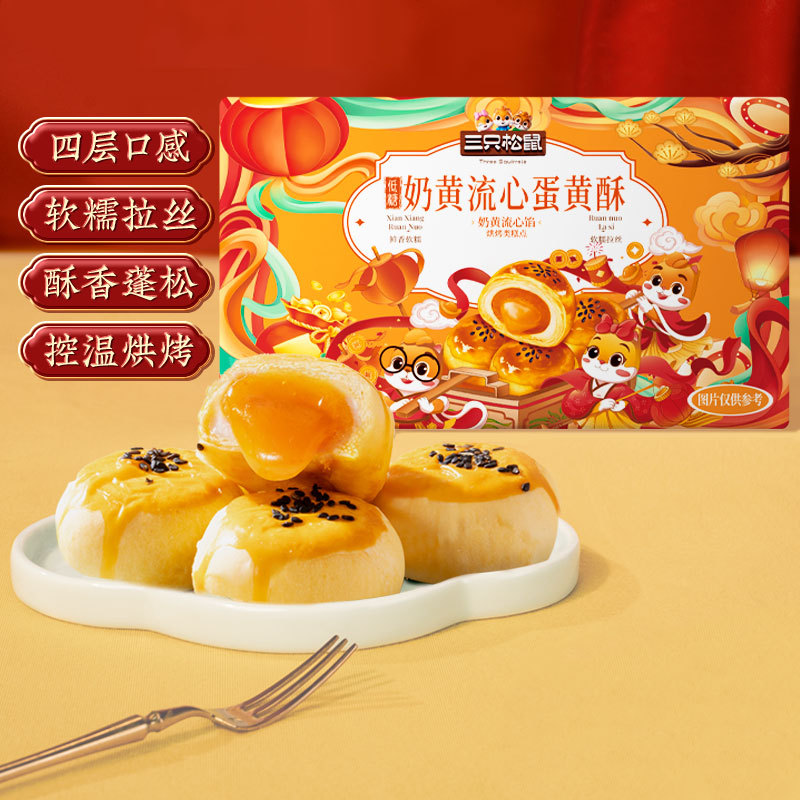 다람쥐 세 마리_달걀 노른자 크리스피 영양가 있는 아침 식사 전문 스낵 스낵 재고 있음 전통 중국 과자 선물 상자스토어 가기
