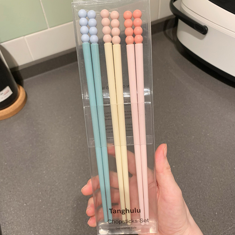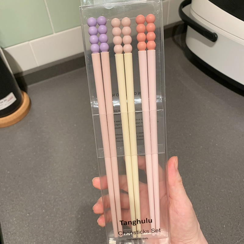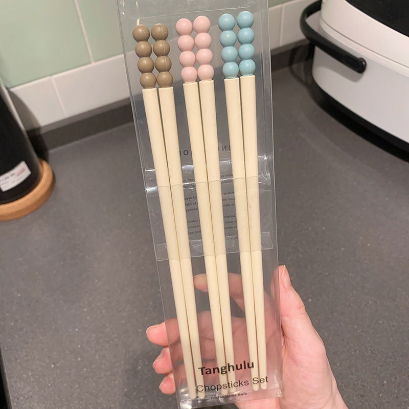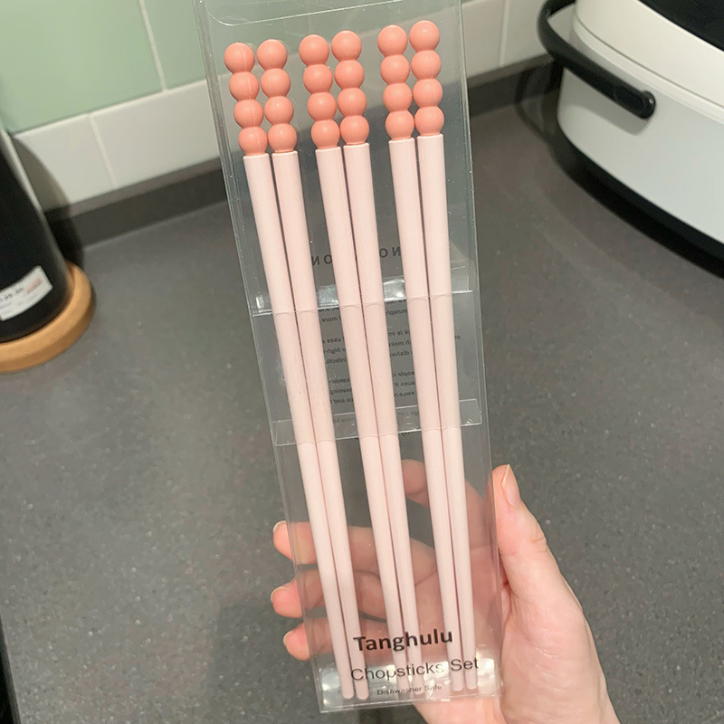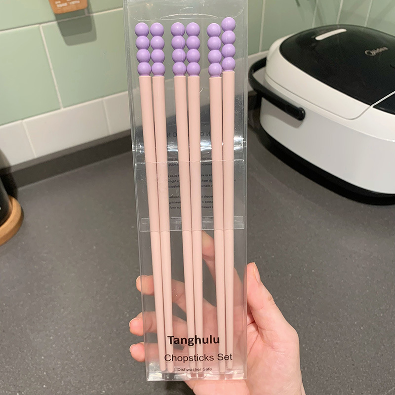 Swanlace 둥근 귀여운 비니 식기 세척기 젓가락 페인트가 없고 고온 방지, 곰팡이 방지 및 미끄럼 방지 합금 젓가락