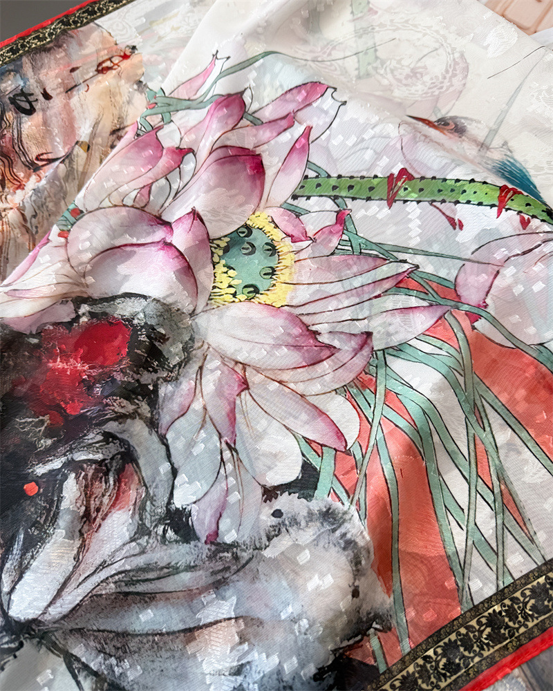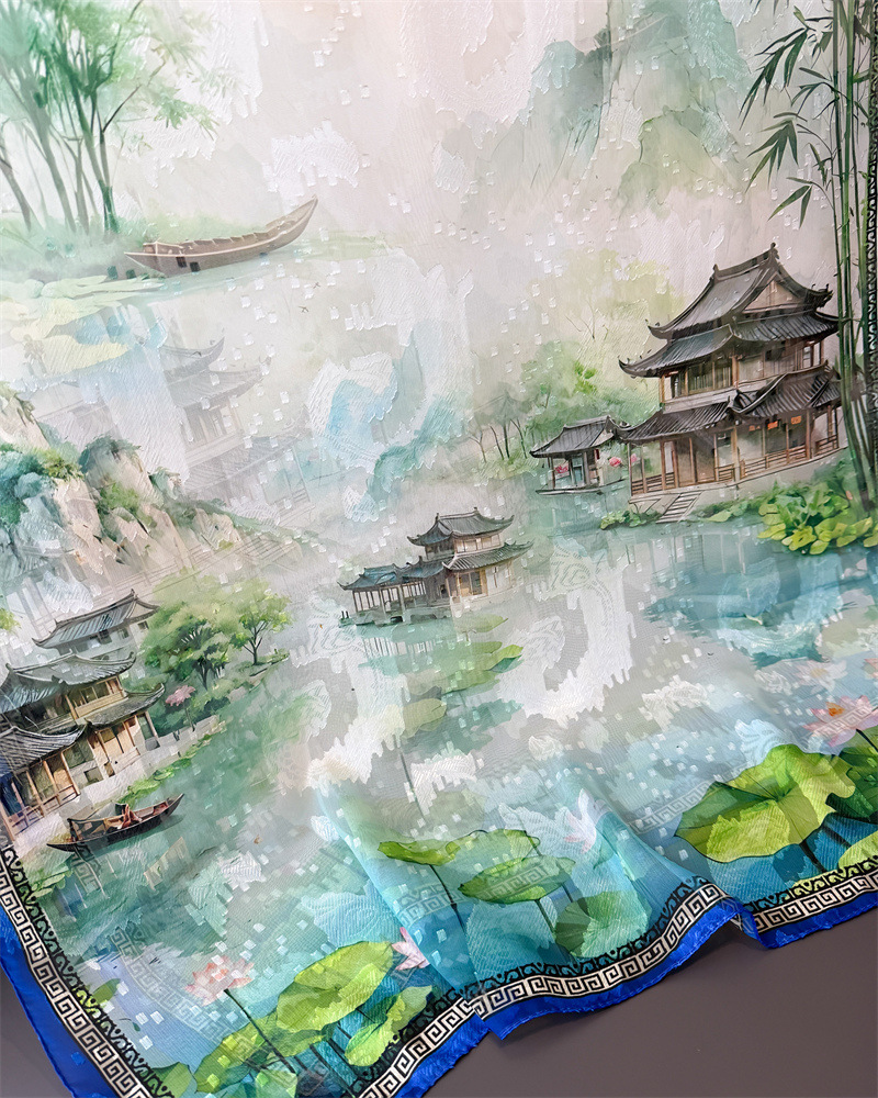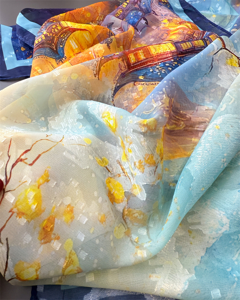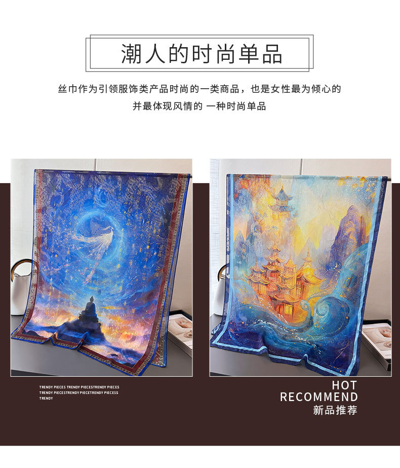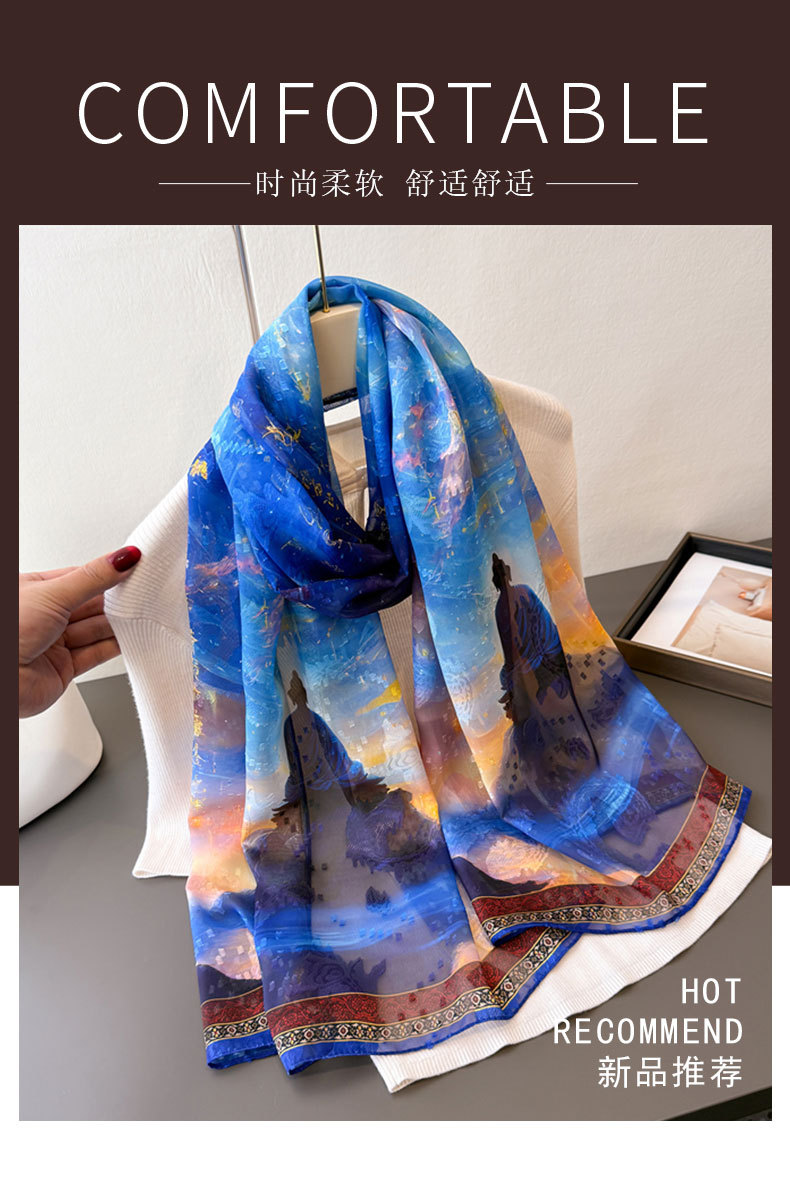 물 마을 그림 인쇄 절단 꽃 봄과 여름 실크 스카프 대형 긴 스카프 하이 엔드 여행 목도리 태양 보호 여성 스카프 머리 스카프스토어 가기