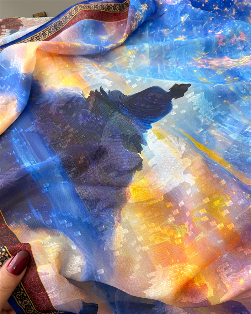 물 마을 그림 인쇄 절단 꽃 봄과 여름 실크 스카프 대형 긴 스카프 하이 엔드 여행 목도리 태양 보호 여성 스카프 머리 스카프