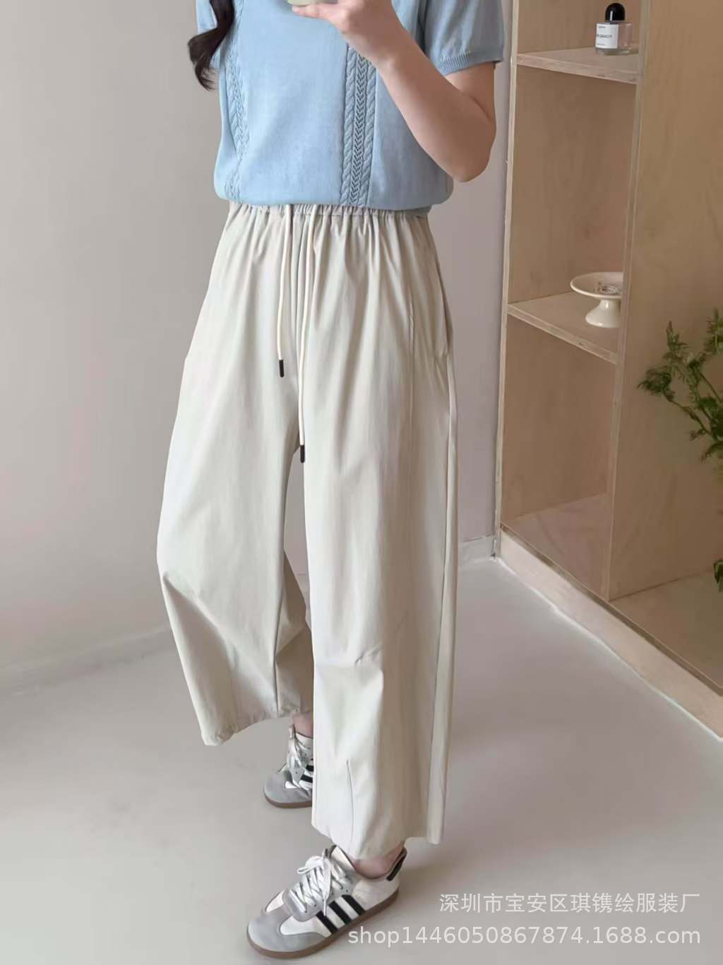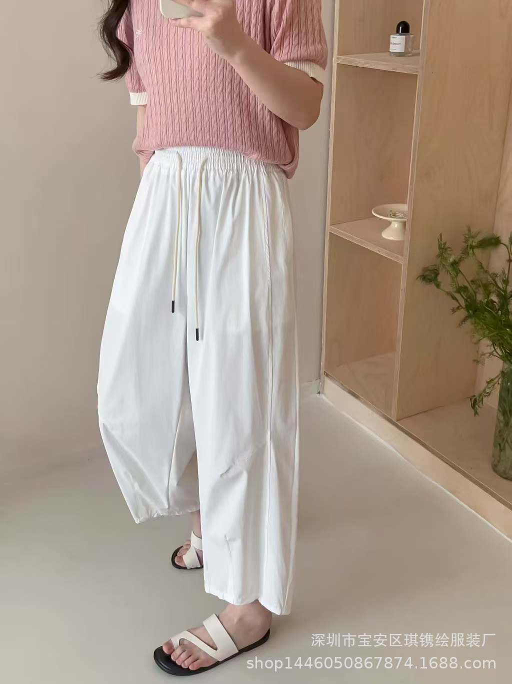 Qi 새겨진 그림 캐주얼 올 매치 솔리드 컬러 탄성 허리 끈 Harlan 바지 여자 여름 새로운 느슨한 슬리밍 바지