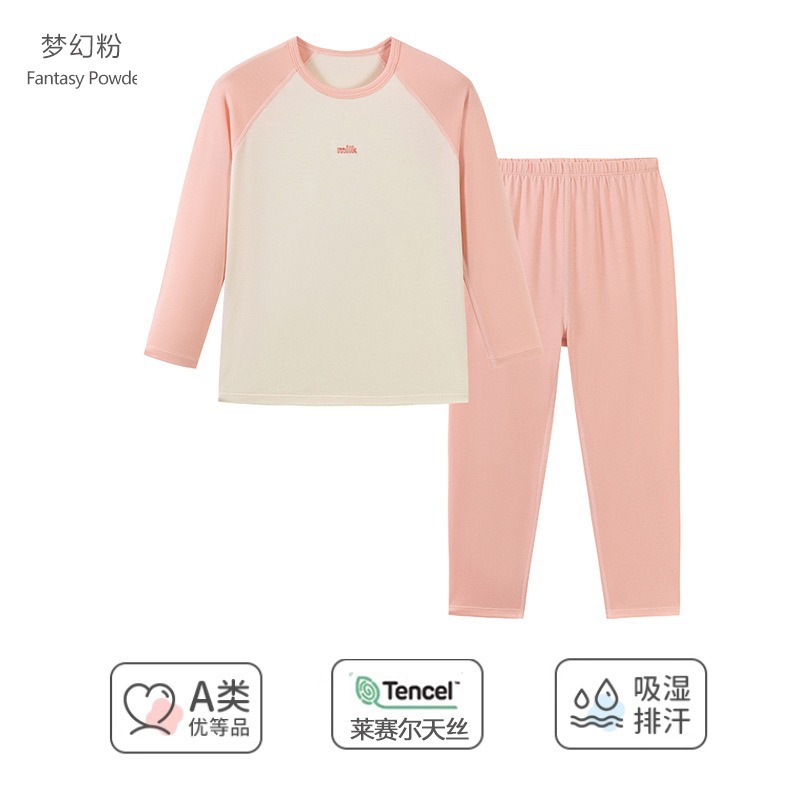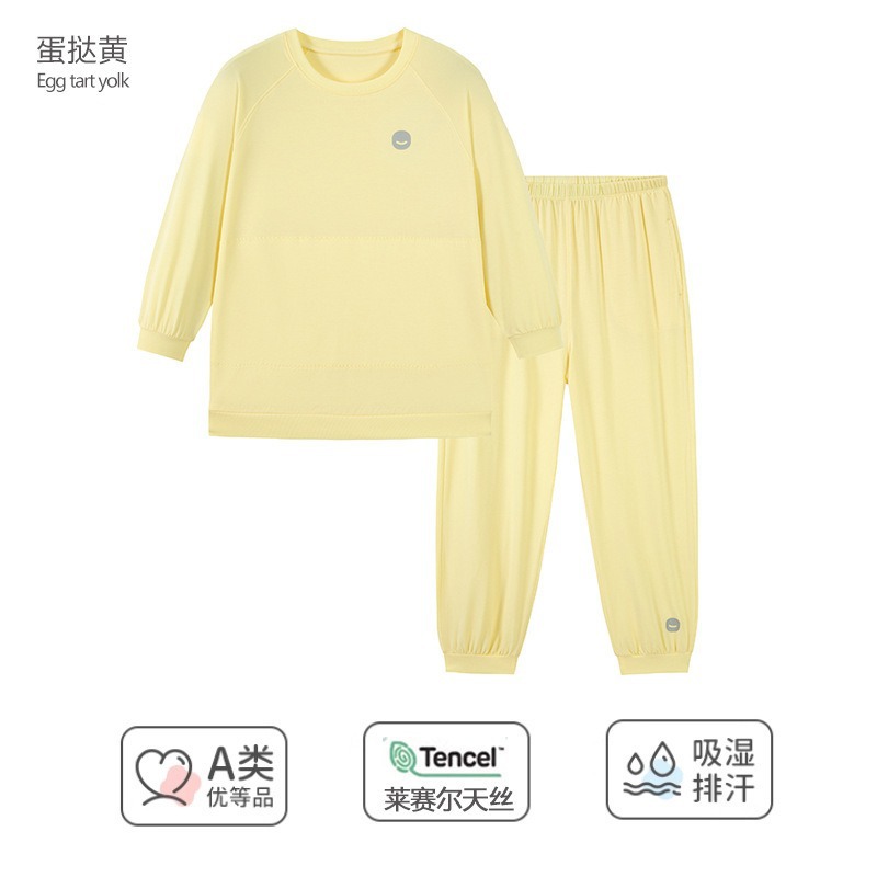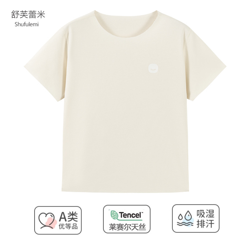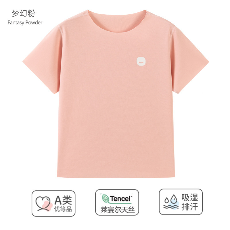 여름 새로운 어린이 Lyocell 반팔 티셔츠 남학생과 여학생 숨막히는 땀 흡수성 아이스 느낌 파자마 세트