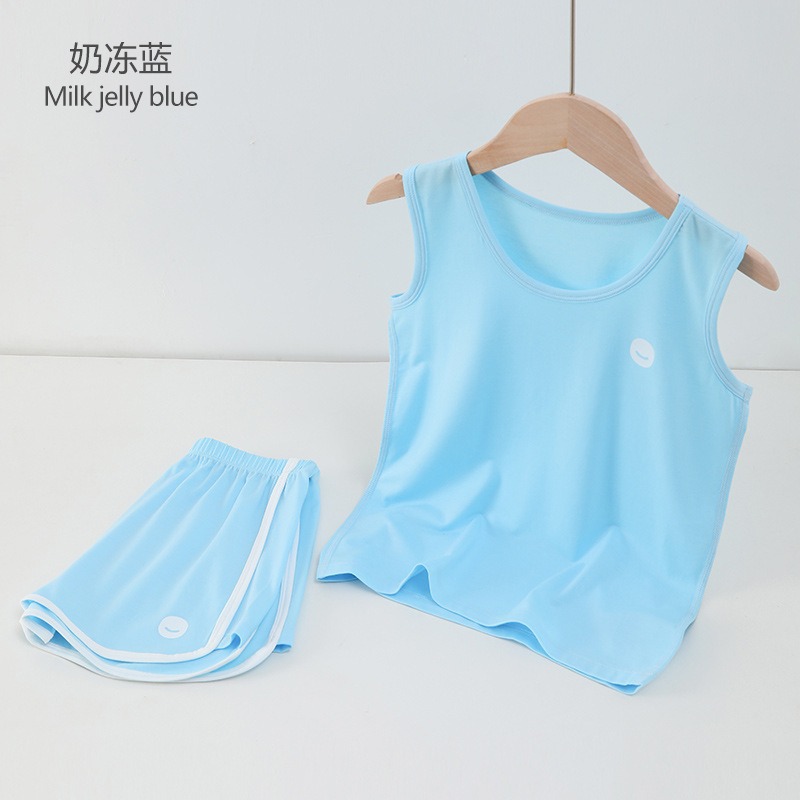 여름 새로운 어린이 Lyocell 반팔 티셔츠 남학생과 여학생 숨막히는 땀 흡수성 아이스 느낌 파자마 세트스토어 가기