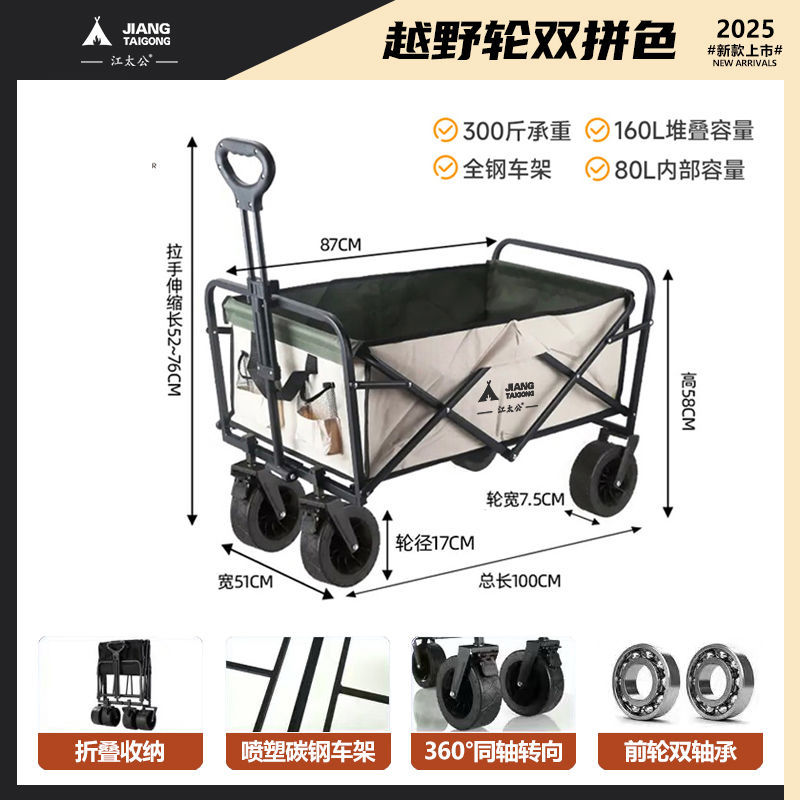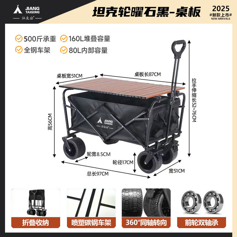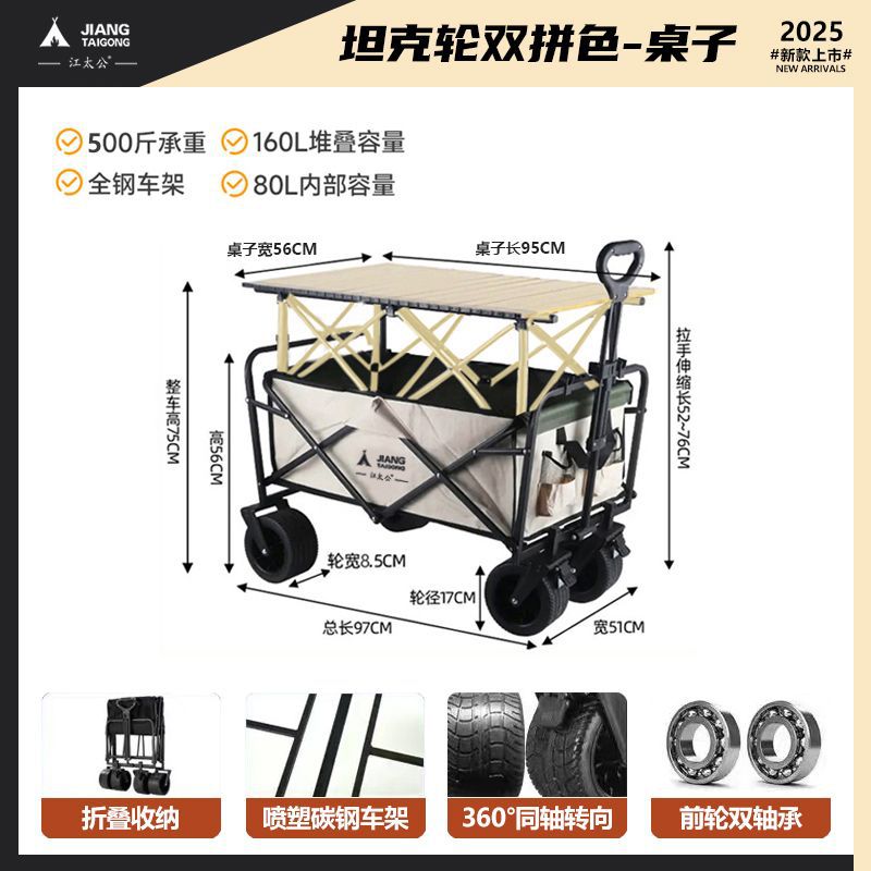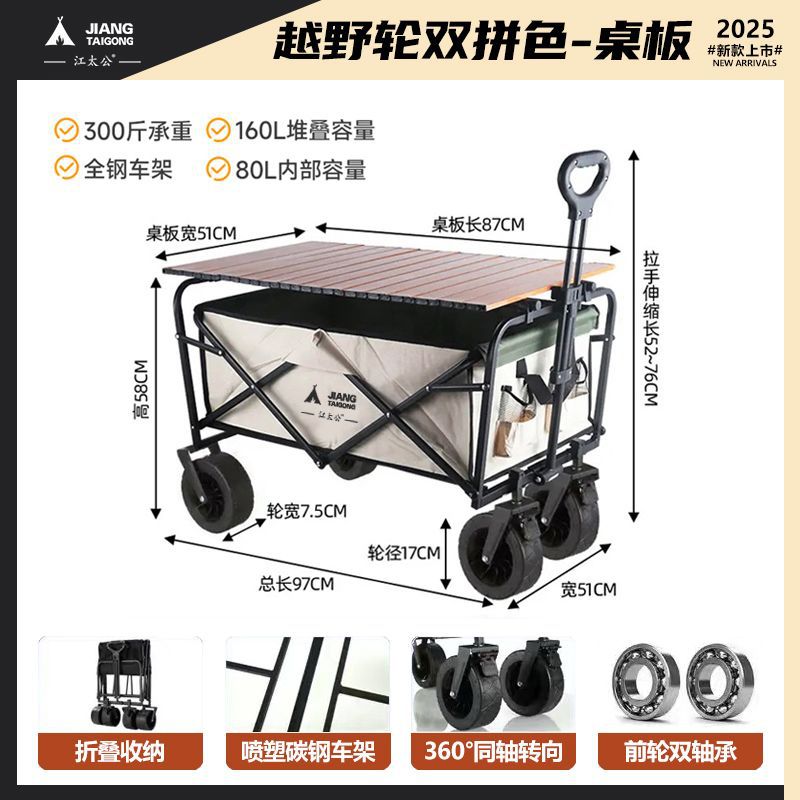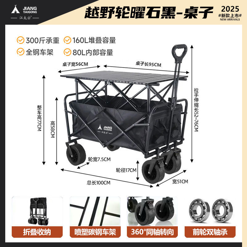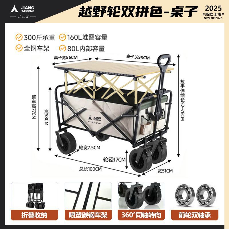 • 독일 품질 [내하중 증가] Yaoyehei-대형 오프로드 휠/이중 브레이크/내하중 150kg 무료 접이식 테이블
