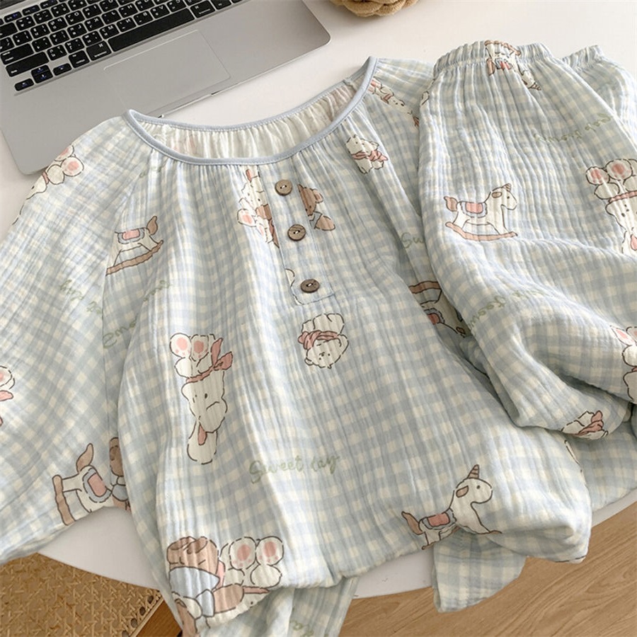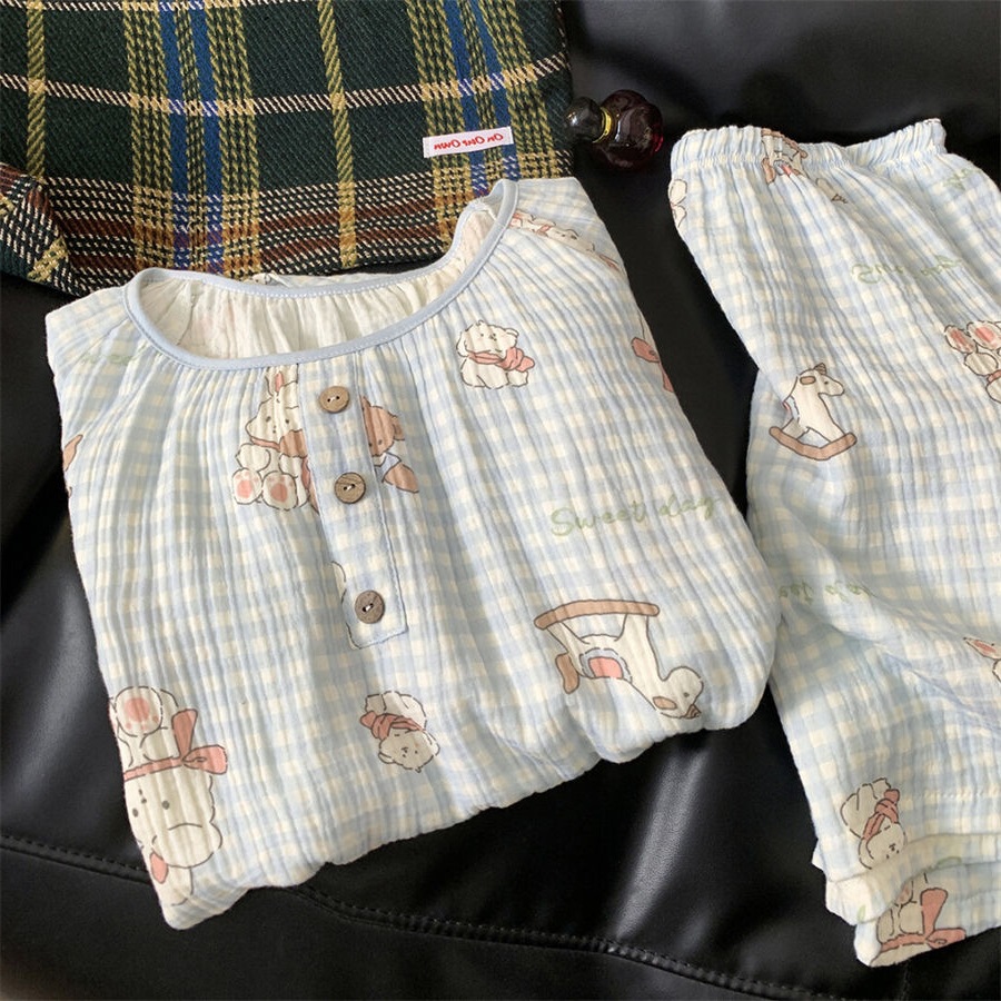 공주 스타일 달콤한 둥근 목 트로이 목마 강아지 여름 잠옷 여성의 새로운 반팔 반바지 Ins 일본식 홈 세트