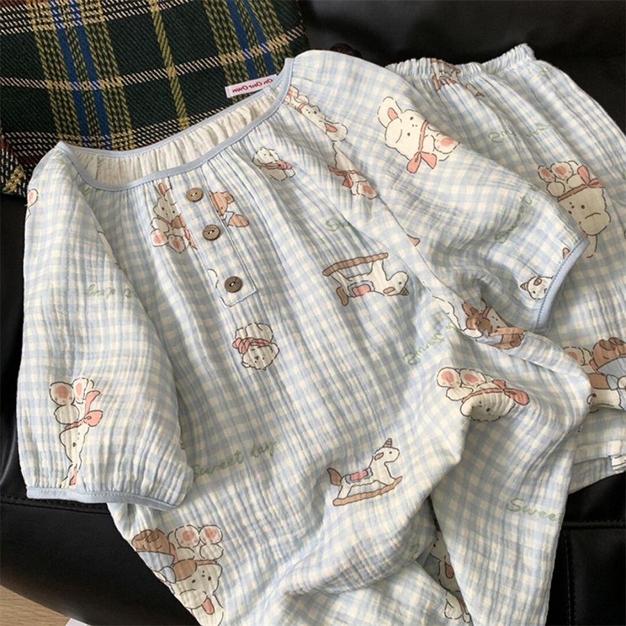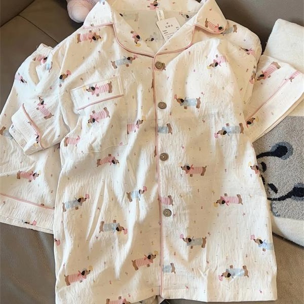 공주 스타일 달콤한 둥근 목 트로이 목마 강아지 여름 잠옷 여성의 새로운 반팔 반바지 Ins 일본식 홈 세트스토어 가기