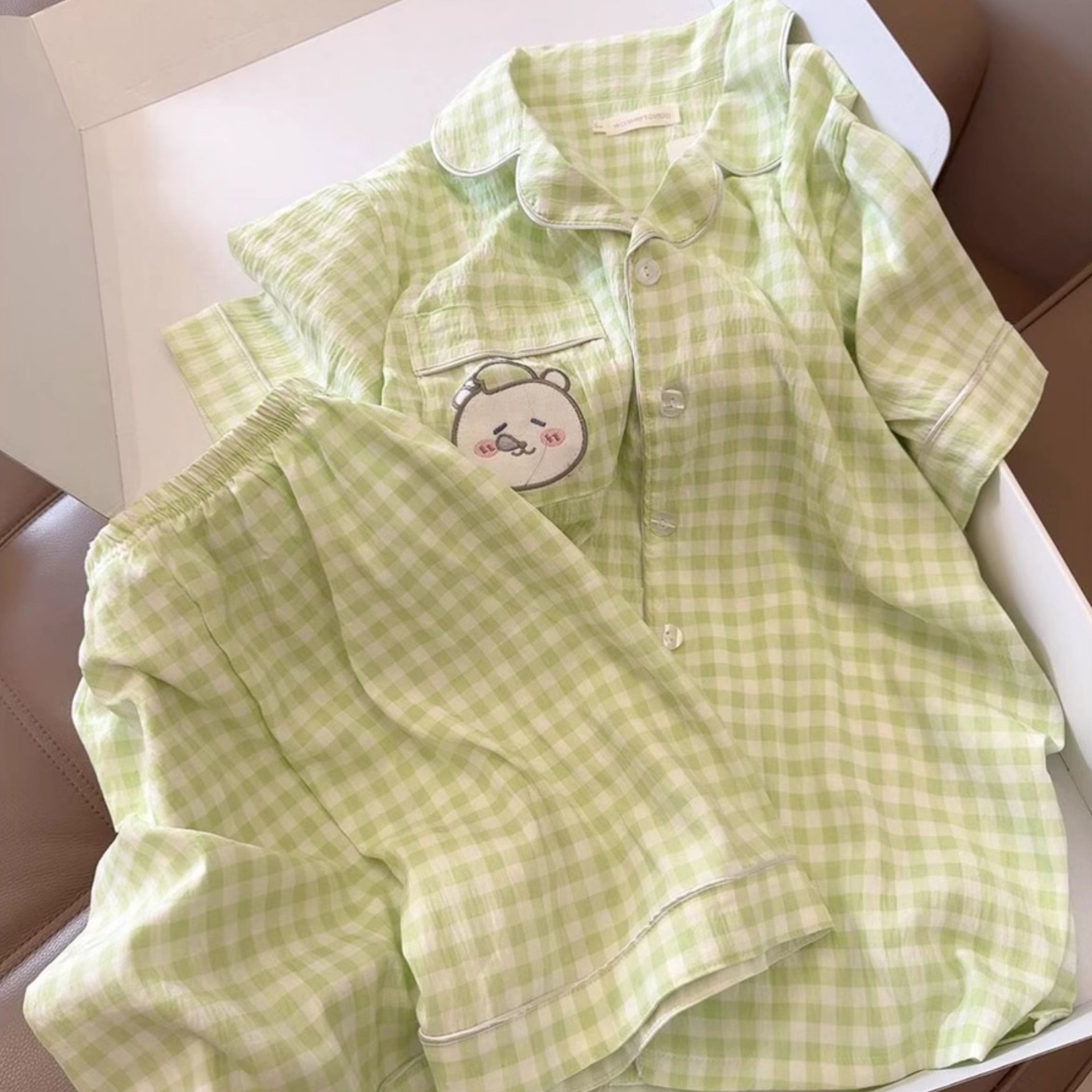 • 4063 - 그린체크 자조곰 - [반팔+반바지]슈트