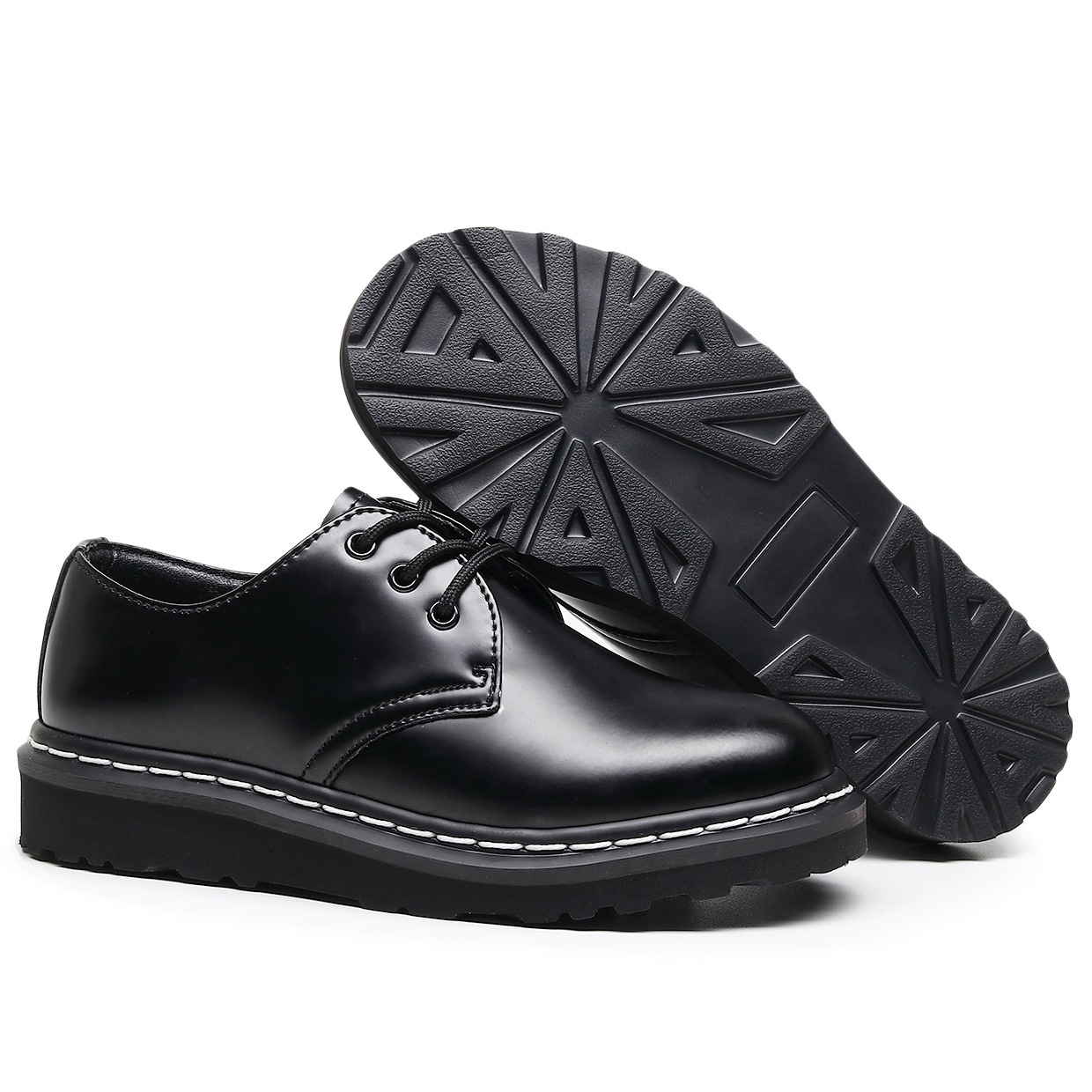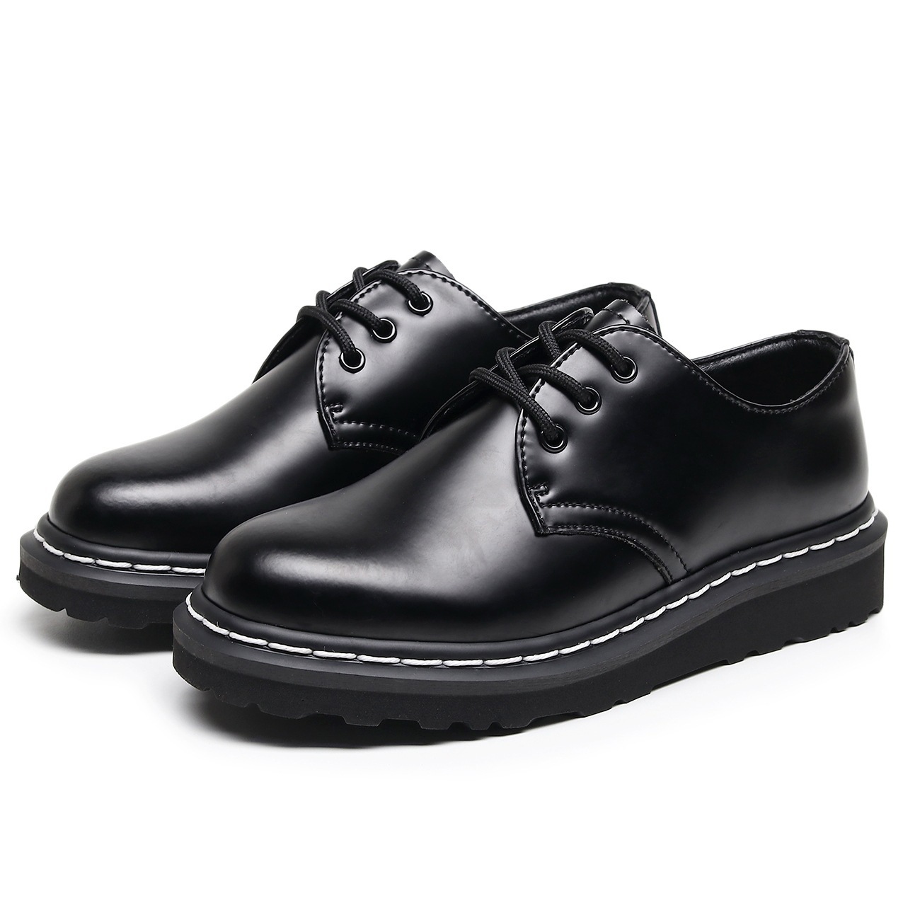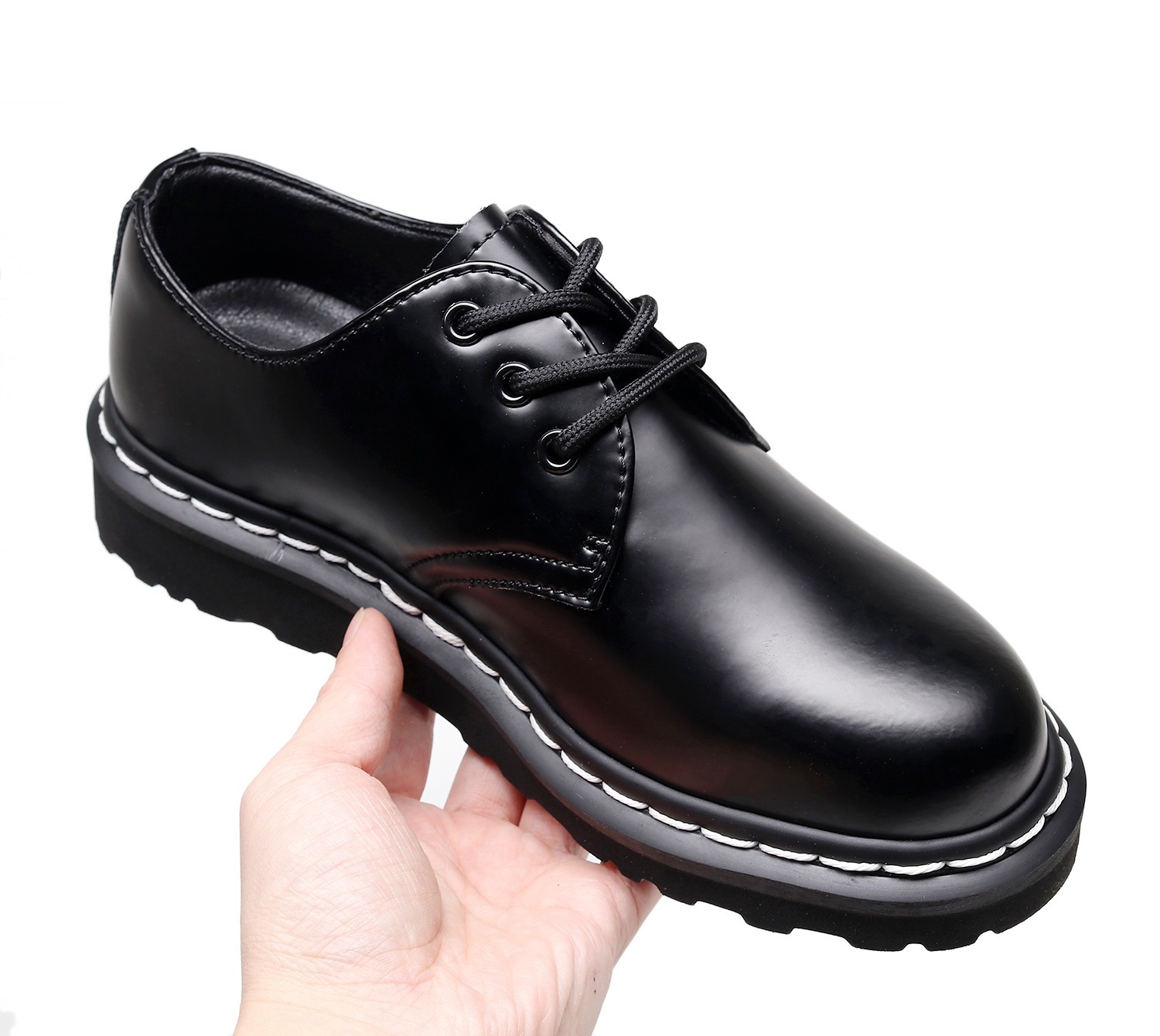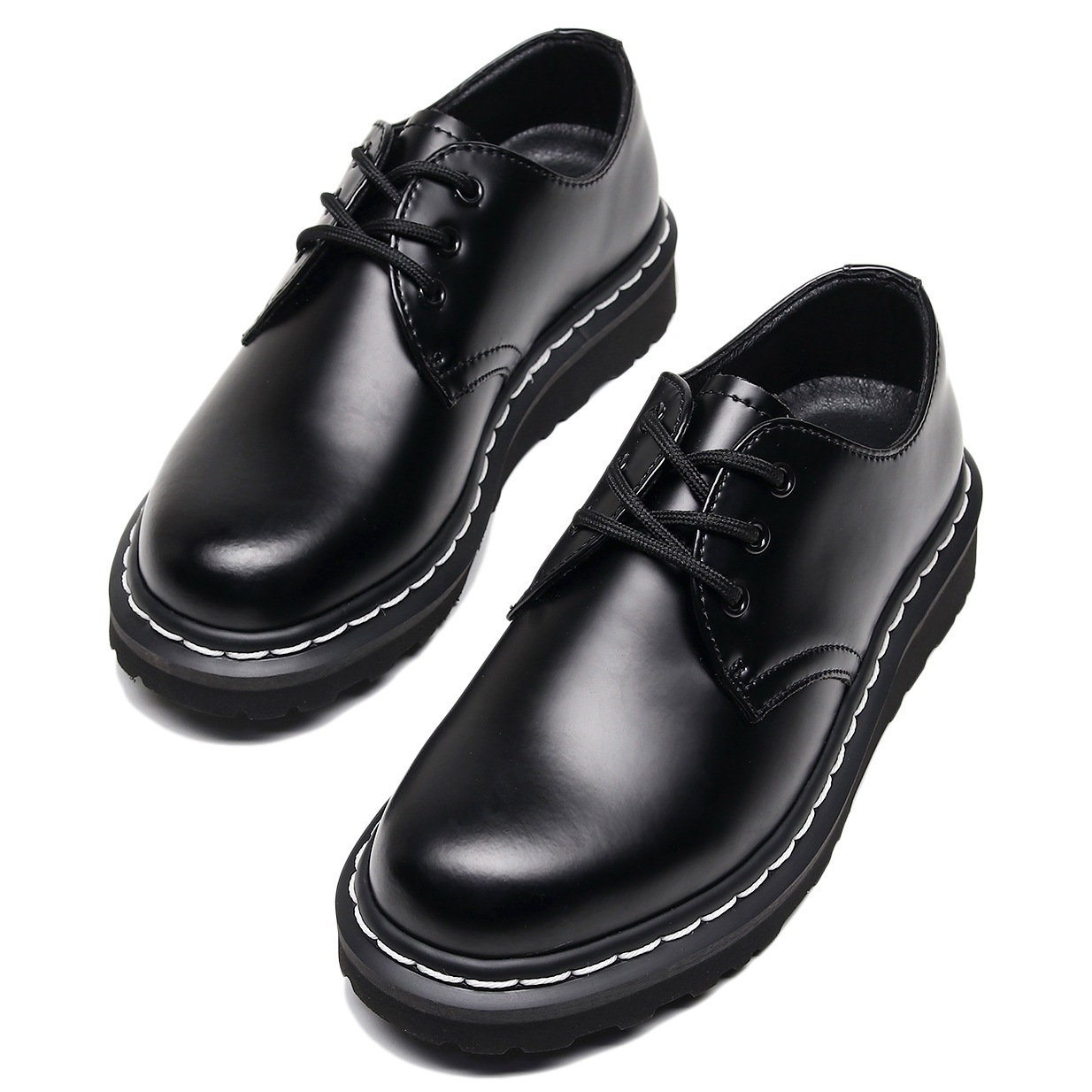여성을 위한 크로스보더 1461 로우탑 소형 가죽 신발, 정품 가죽 영국식 마틴 신발, 흰색 라인 라운드 토 남성 커플 캐주얼 작업화