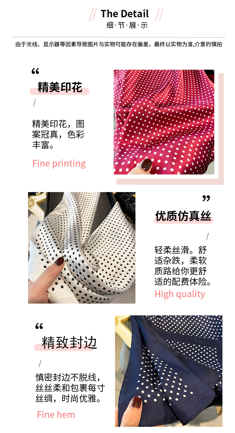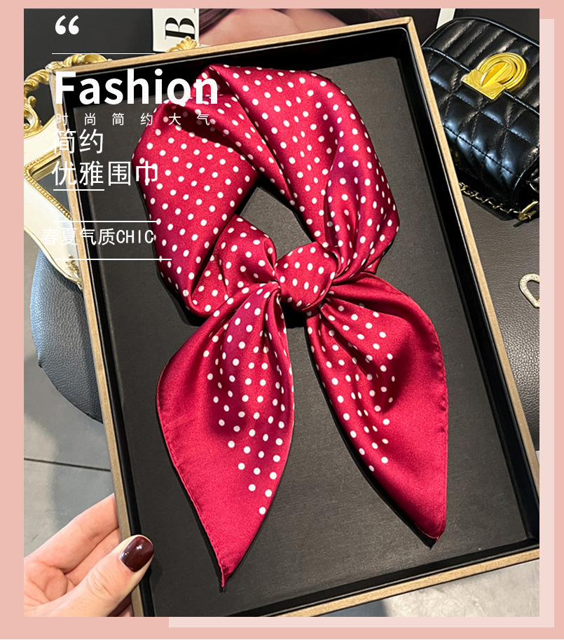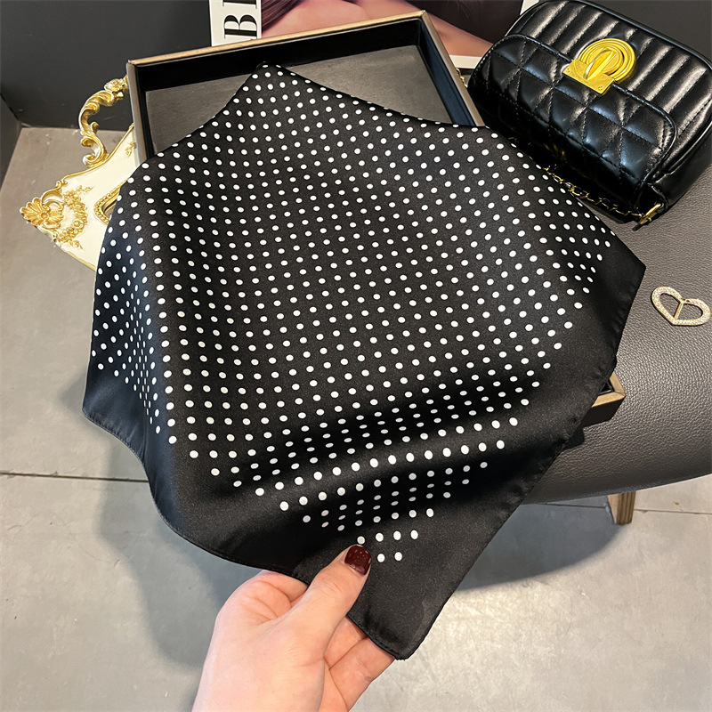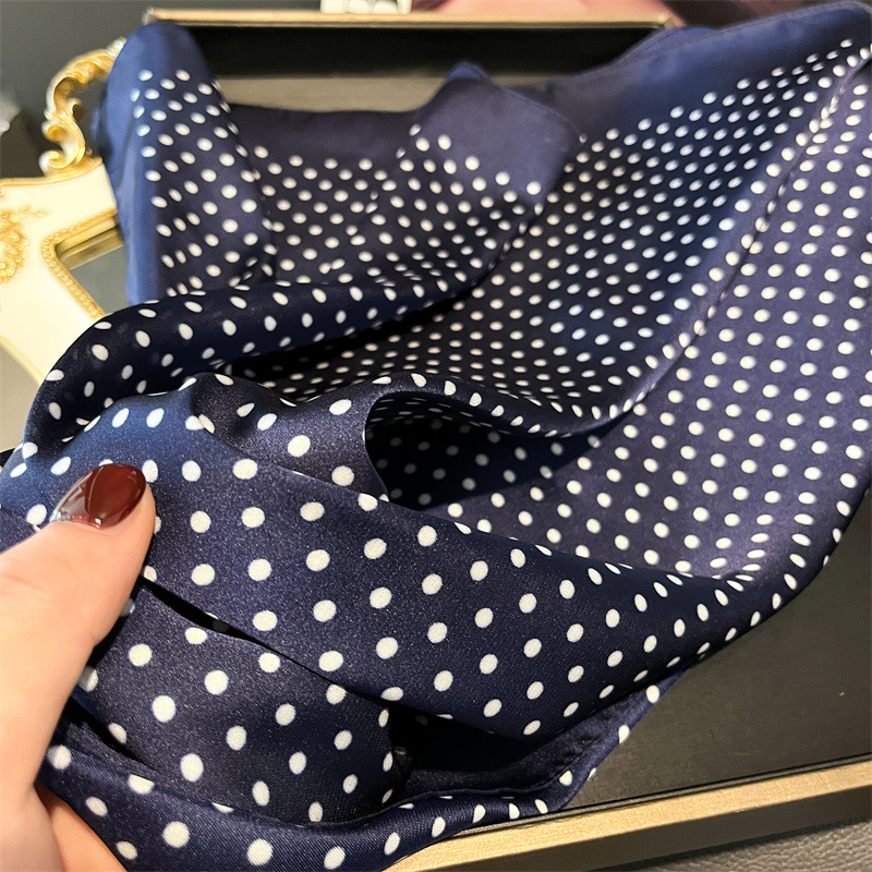 뉴 웨이브 포인트 인쇄 실크 스카프 스퀘어 스카프 고급 목도리 올매치 넥 작은 스퀘어 스카프 여성 스카프