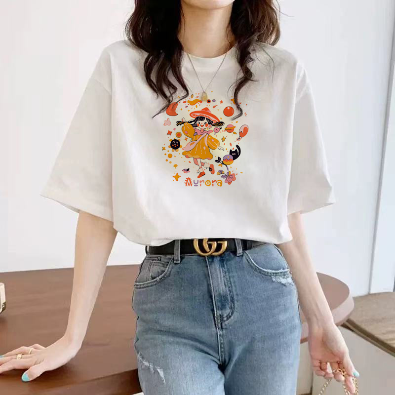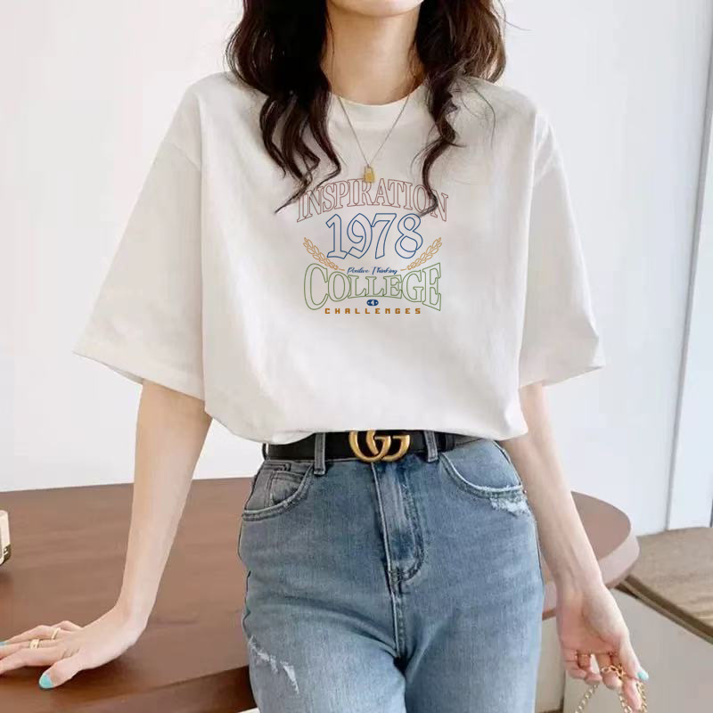 화이트 반팔 여성 티셔츠 여름 2025 새로운 패션 브랜드 퓨어 코튼 내베이스 셔츠 한국 스타일 어깨 루즈 탑스토어 가기