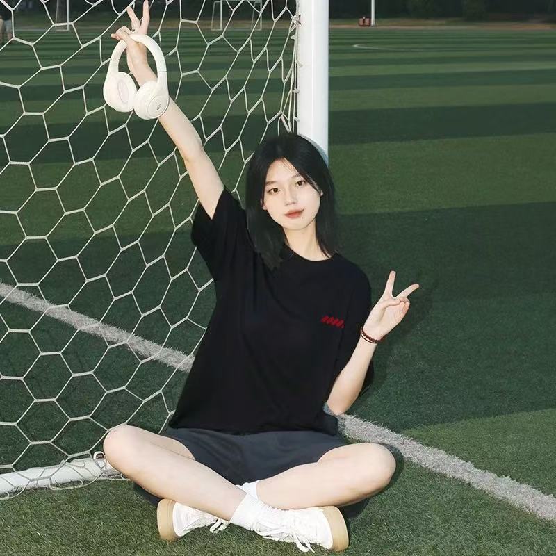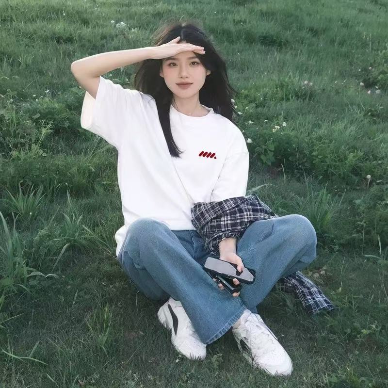 화이트 반팔 여성 티셔츠 여름 2025 새로운 패션 브랜드 퓨어 코튼 내베이스 셔츠 한국 스타일 어깨 루즈 탑