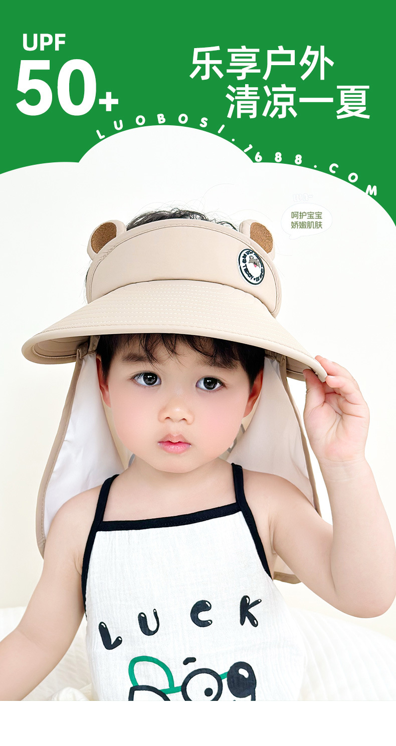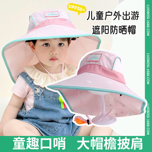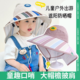 어린이 야외 선 스크린 모자 여름 큰 모자 브림 목 보호 목도리 빈 탑 모자 아기 양산 태양 모자 소년 소녀를위한스토어 가기