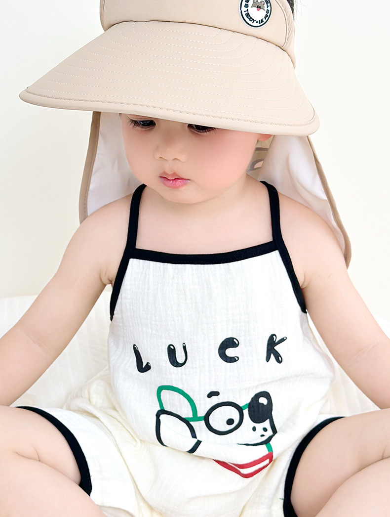어린이 야외 선 스크린 모자 여름 큰 모자 브림 목 보호 목도리 빈 탑 모자 아기 양산 태양 모자 소년 소녀를위한