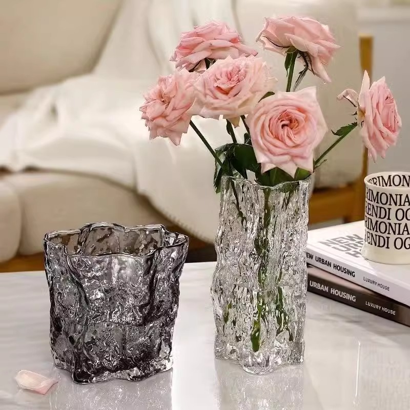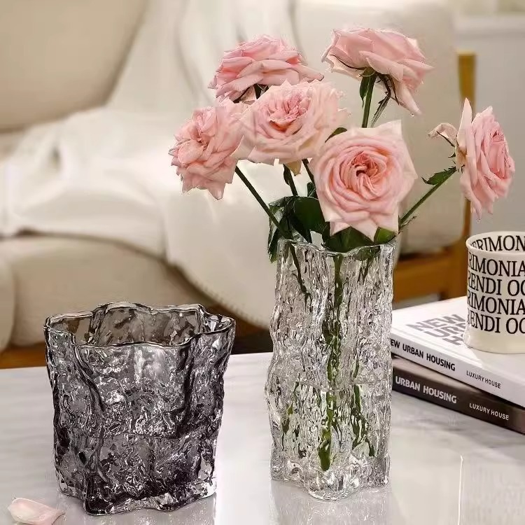 가벼운 고급 유리 꽃병 거실 꽃 배열 높은 수준의 수경 투명 수경 창조적 인 간단한 데스크탑 장식 장식품