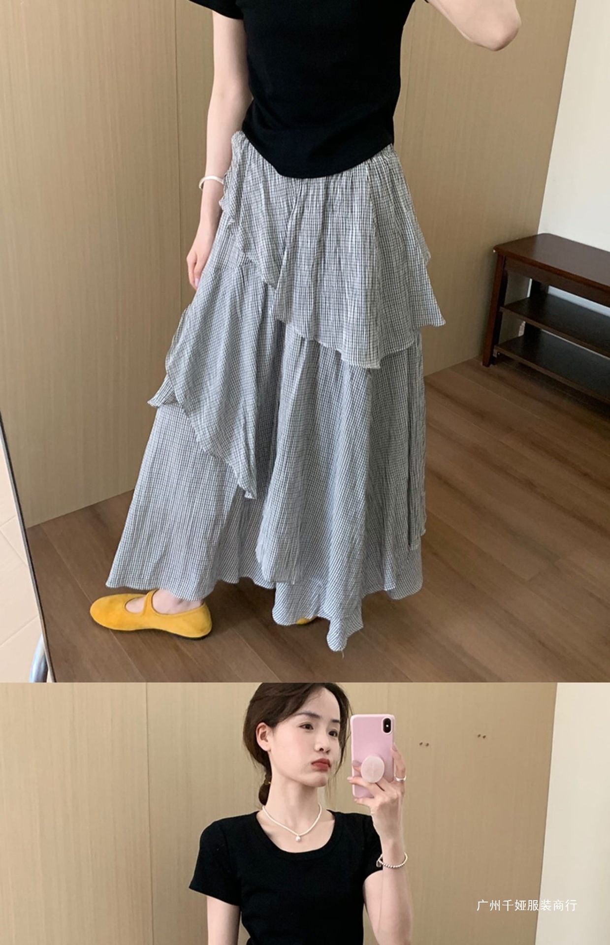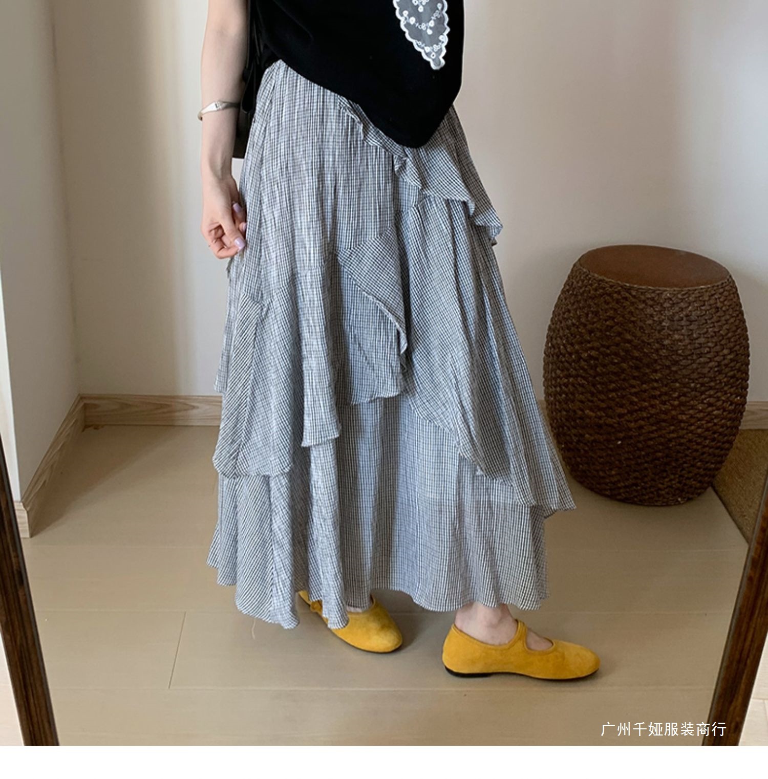 • 블랙 [스커트/플리츠/엉덩이커튼/버드퍼프스커트/A라인/케이크/피쉬테일/스커트/데님/체크무늬/jk스커트/힙커버]