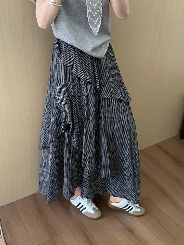 프랑스 레트로 불규칙한 스커트 여자 여름 하이 엔드 패션 올 매치 에이지 감소 A 라인 케이크 스커트 중간 길이 스커트