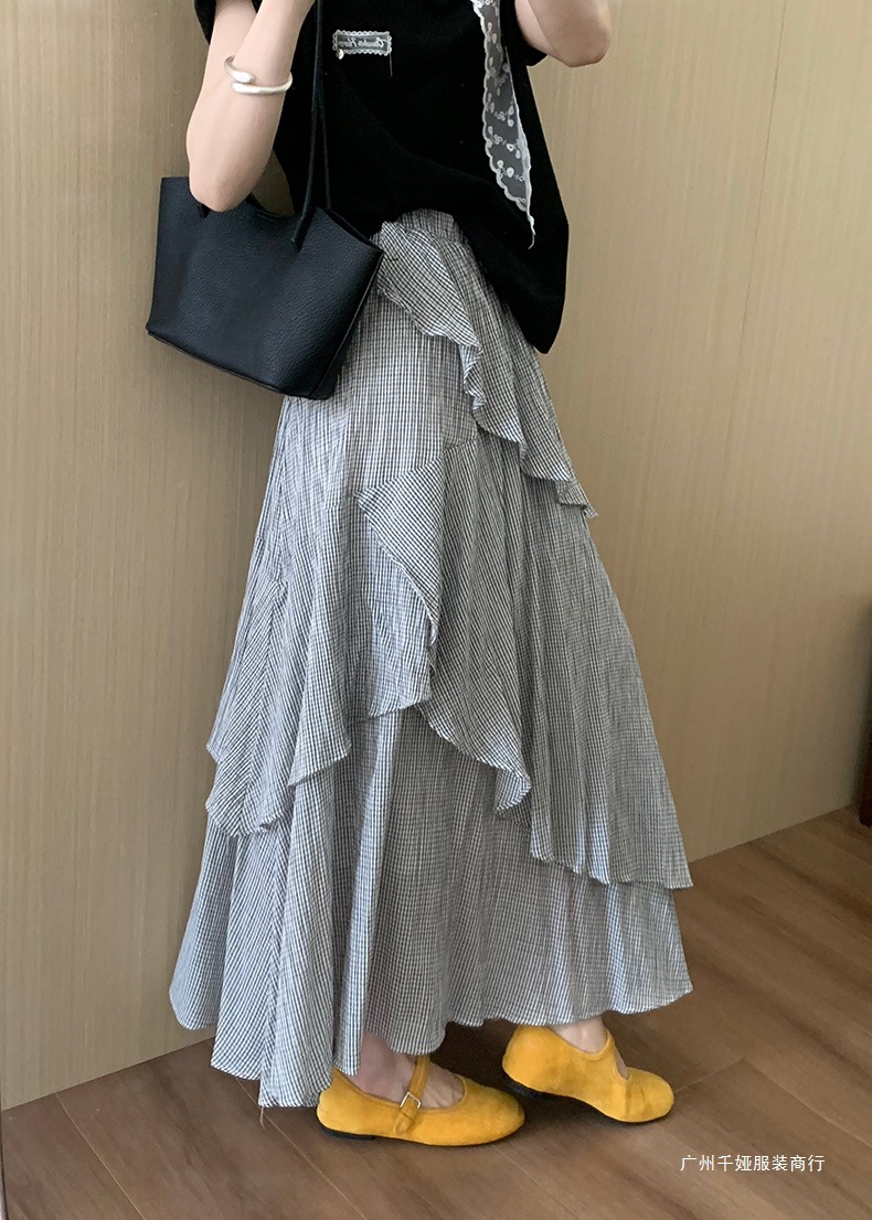 프랑스 레트로 불규칙한 스커트 여자 여름 하이 엔드 패션 올 매치 에이지 감소 A 라인 케이크 스커트 중간 길이 스커트스토어 가기