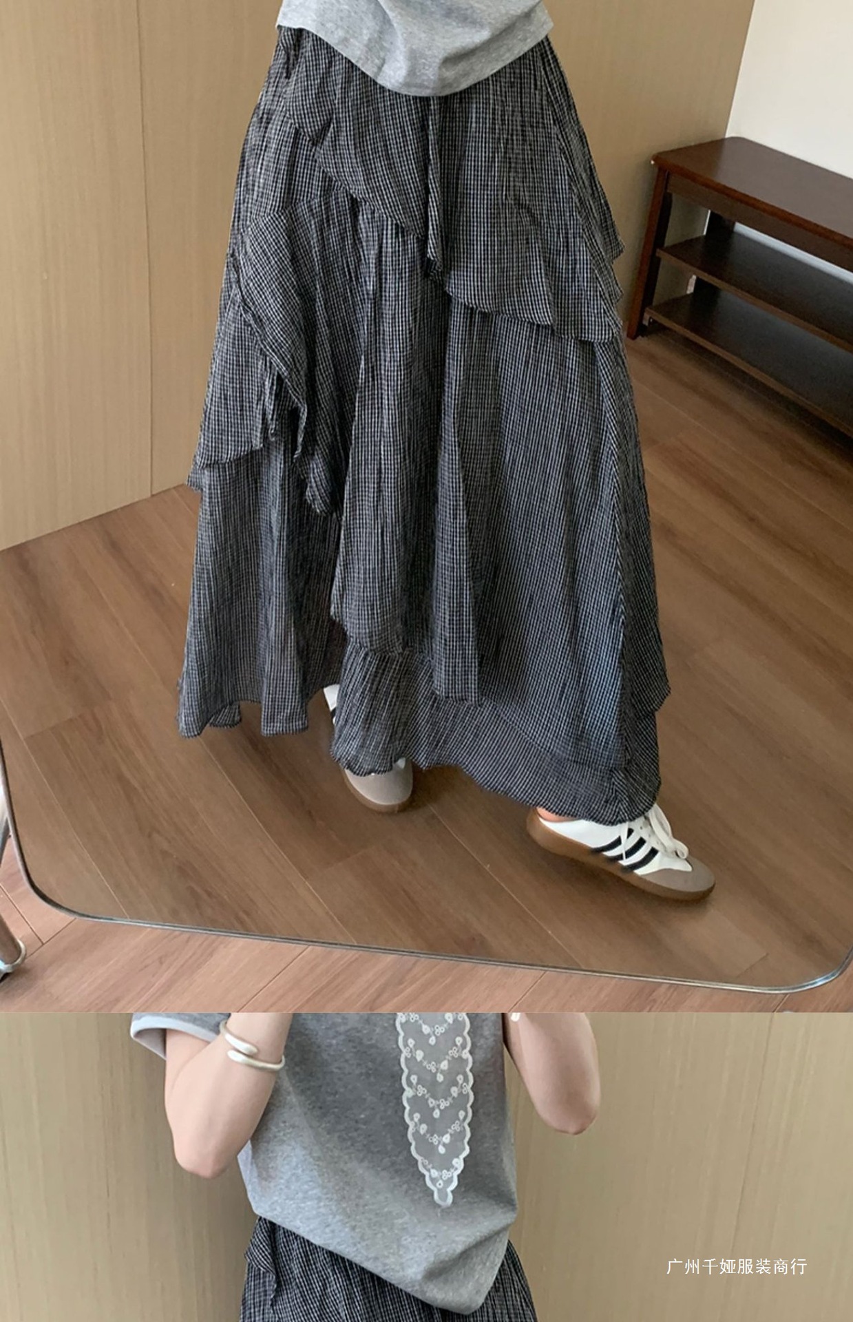 • 오프화이트 [그레이 스타일 의상/엉덩이를 가리는 배형/자카드/큰 스커트/작은/신중국풍/스트레이트/스팽글/치파오/미니스커트]