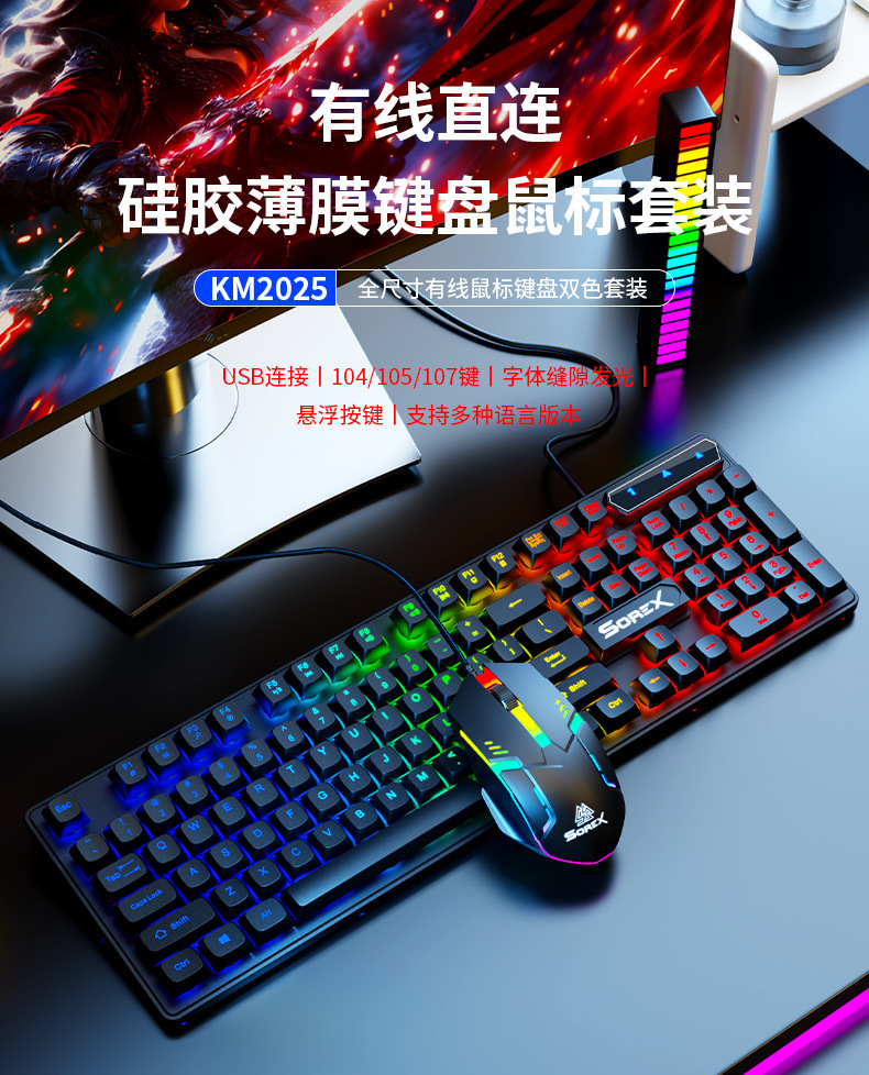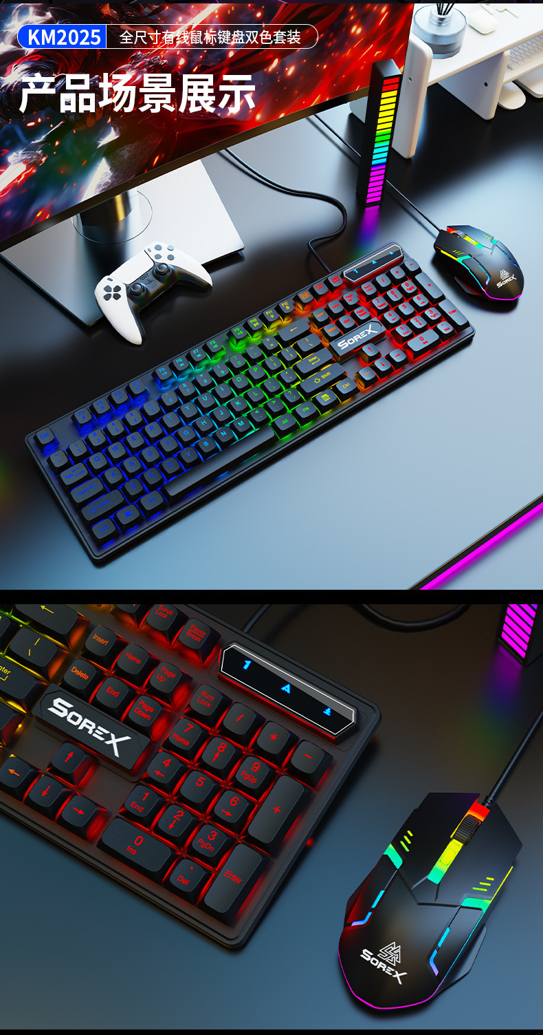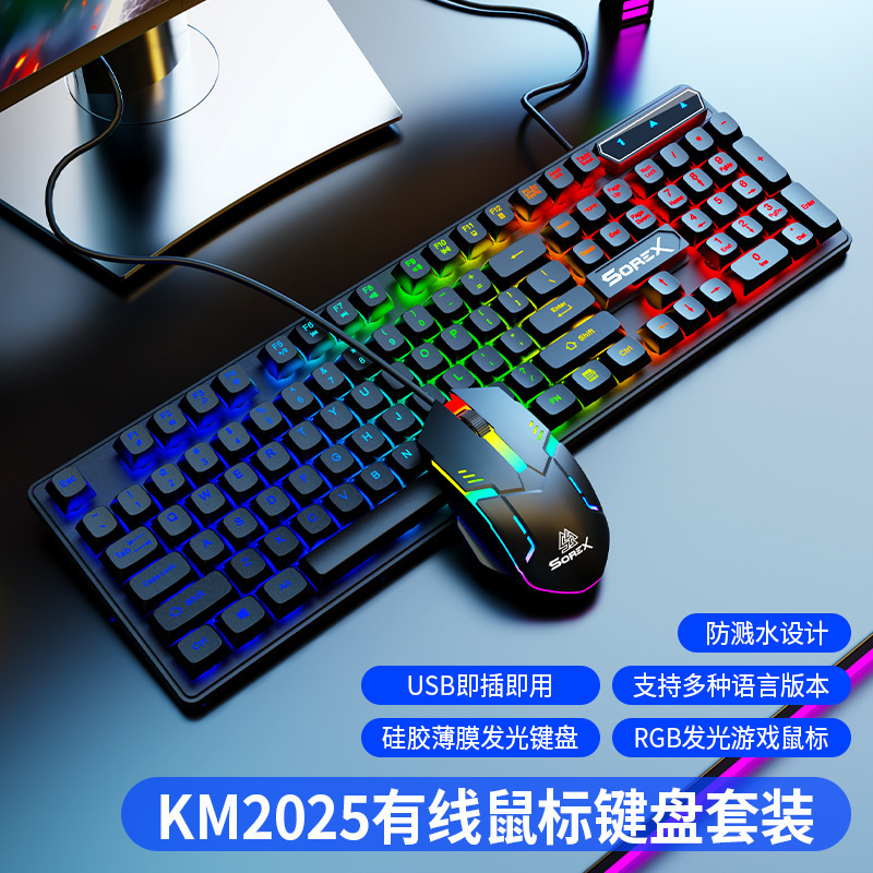 크로스보더 유선 USB 키보드 마우스 세트 노트북용 범용 e스포츠 백라이트 게이밍 오피스 키보드 세트스토어 가기