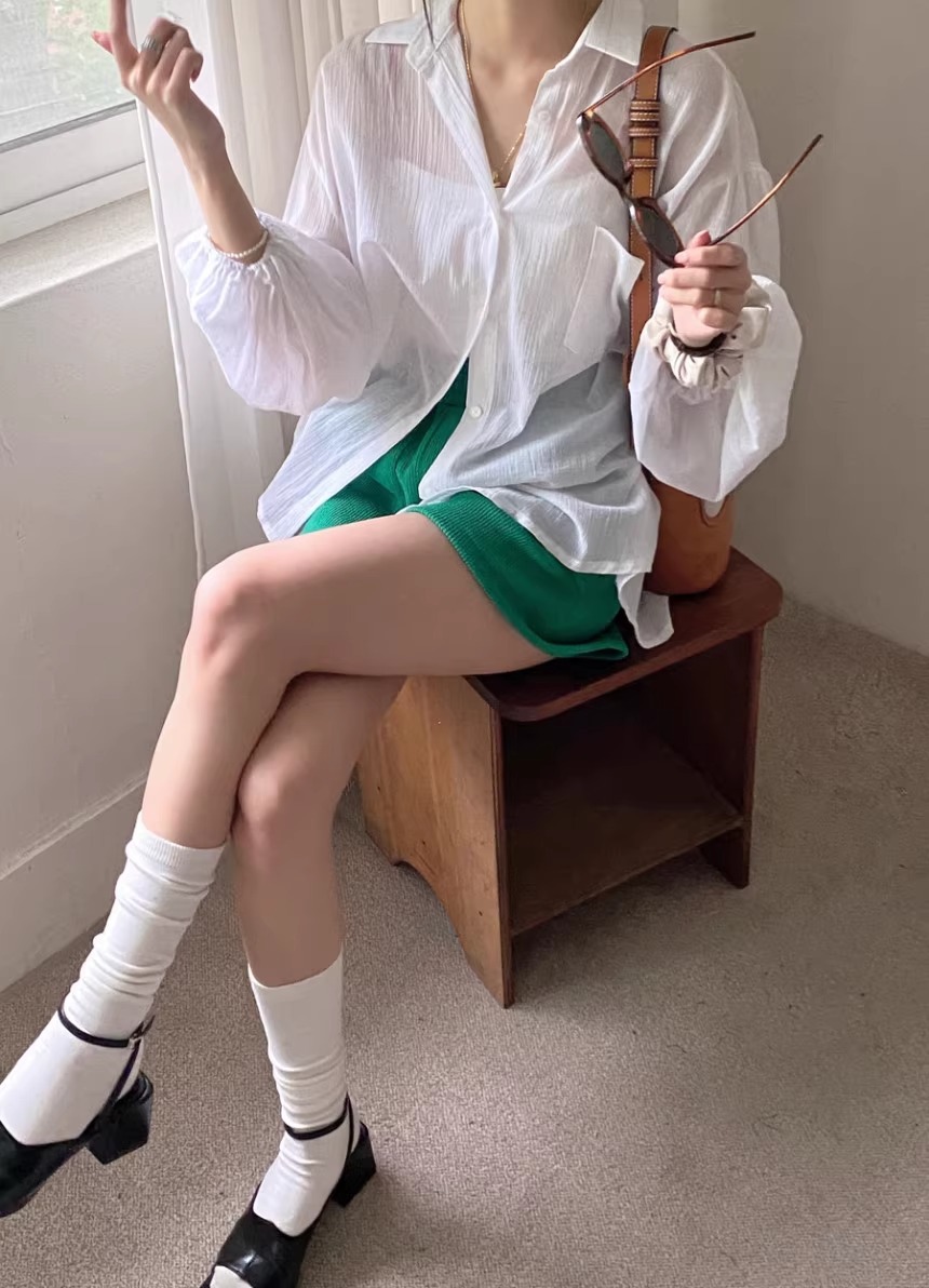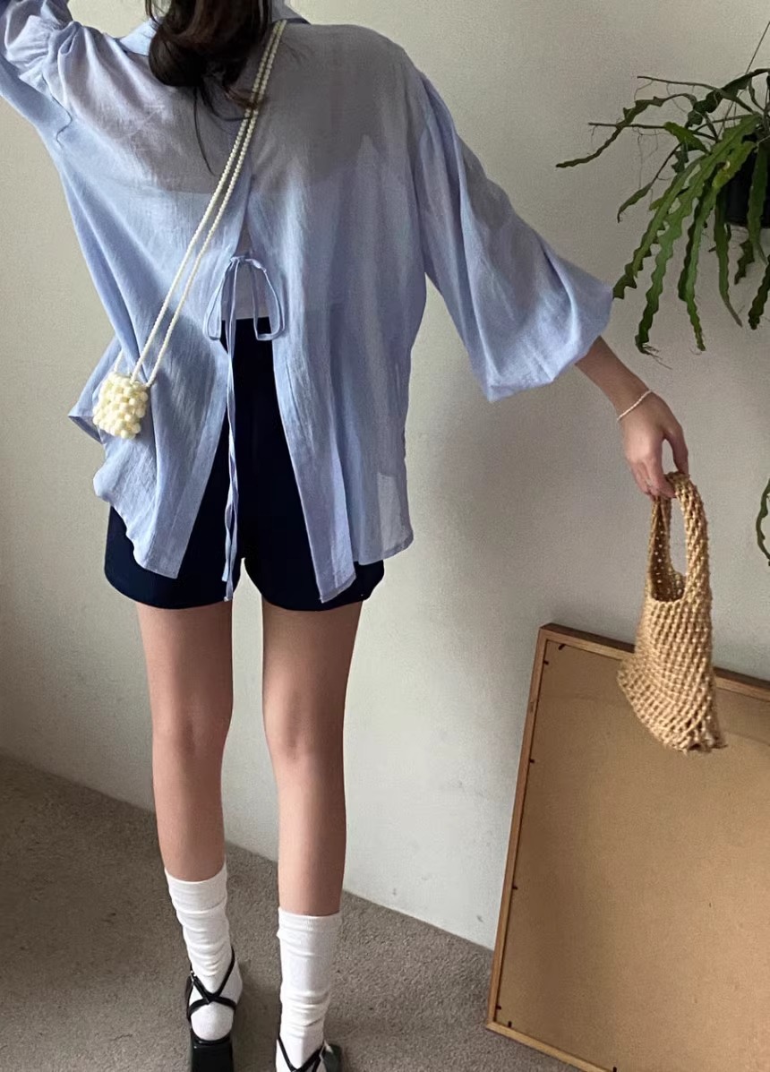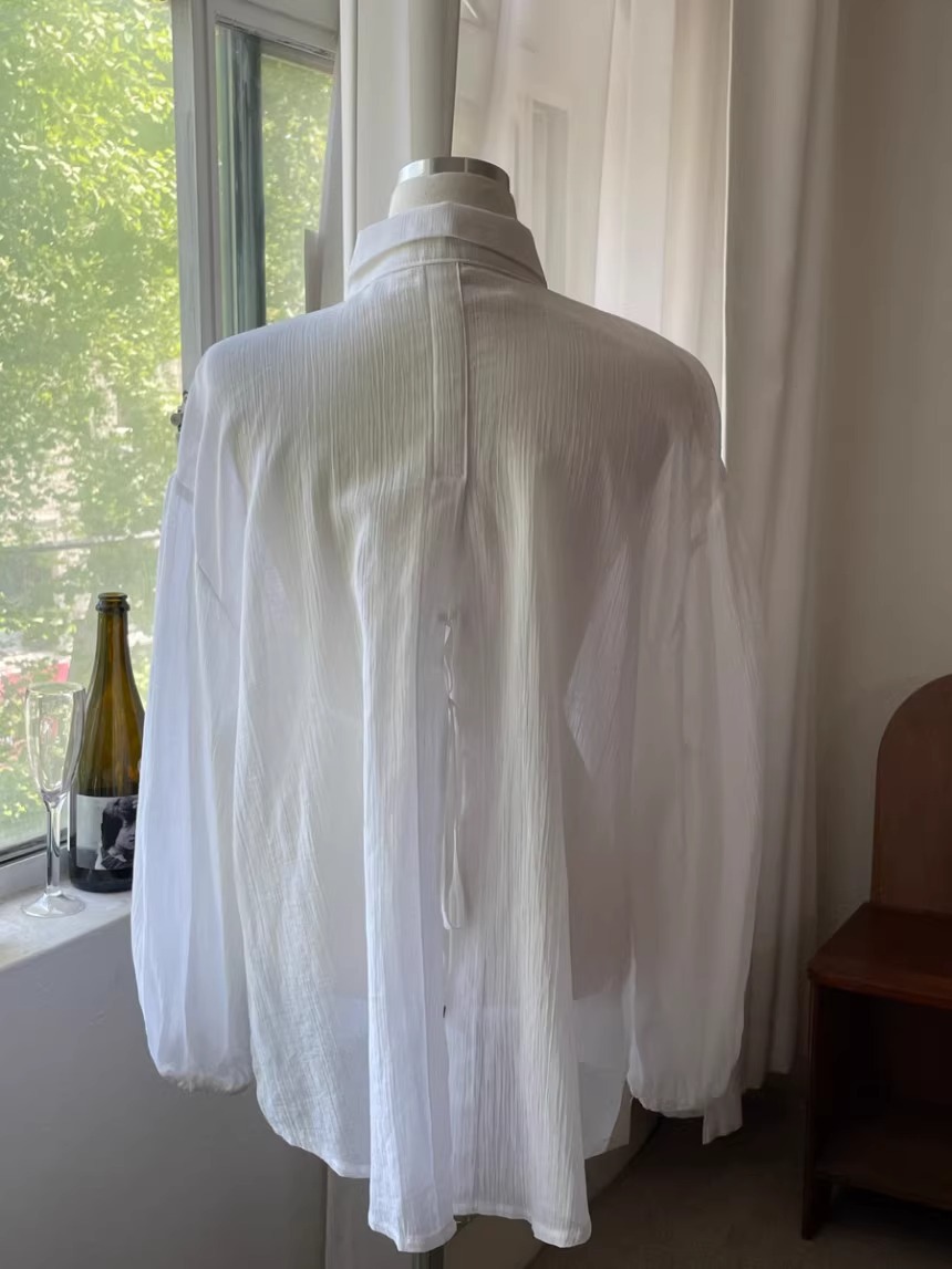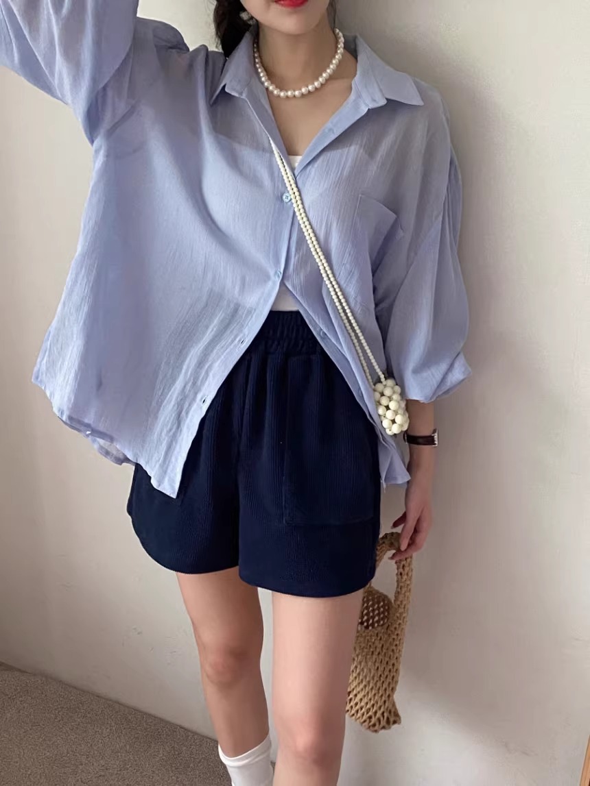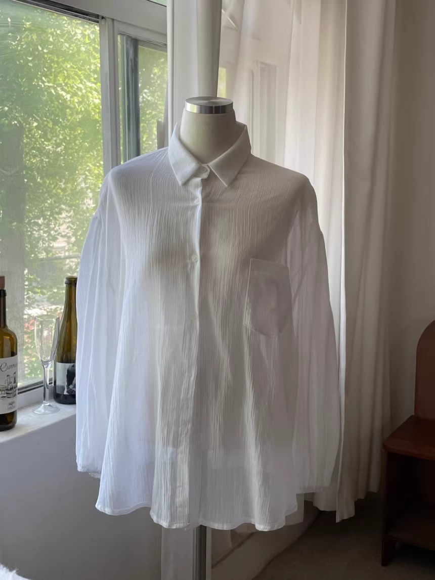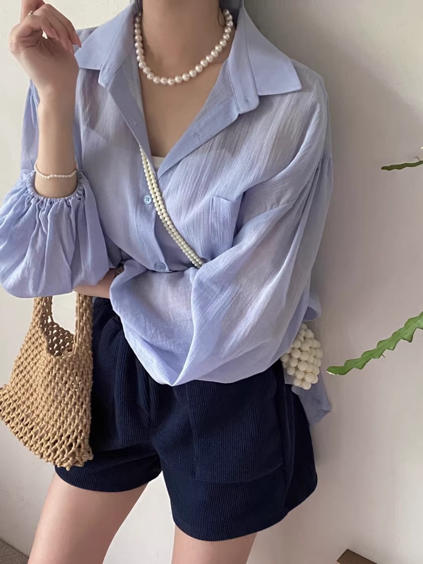 한국 세련된 여름 프랑스 기질 옷깃 시계 다시 분할 디자인 느낌 마이크로 투명 얇은 자외선 차단제 셔츠스토어 가기