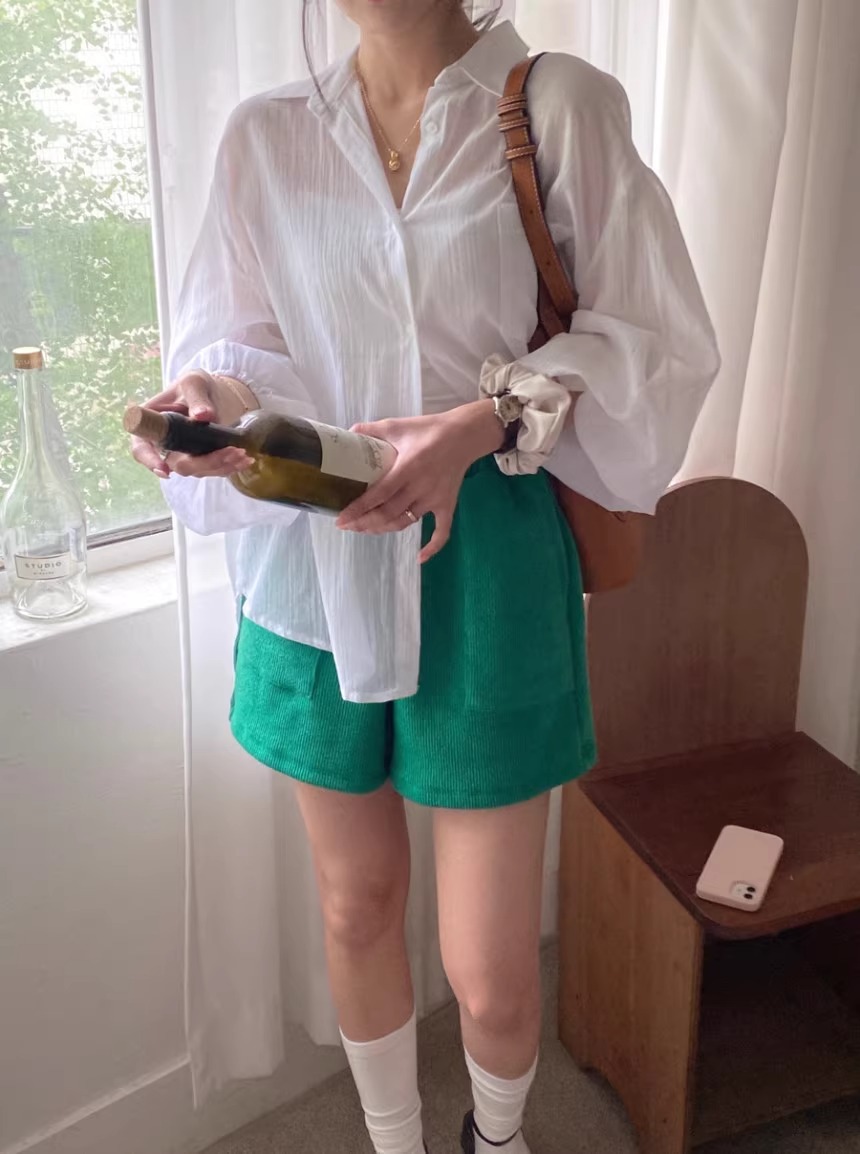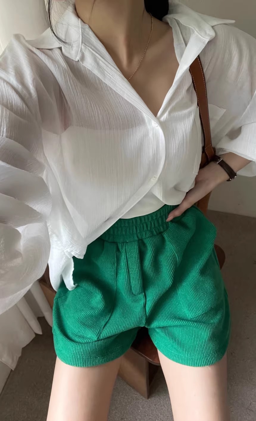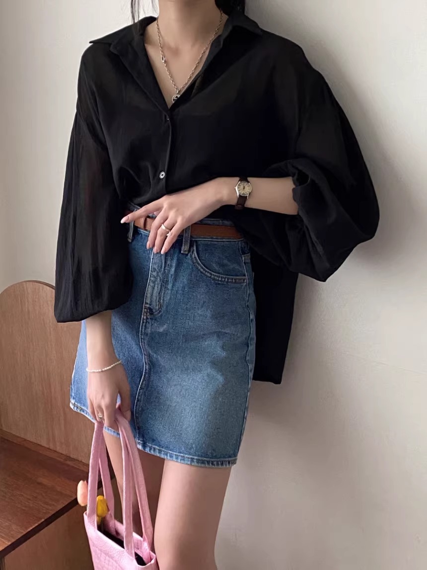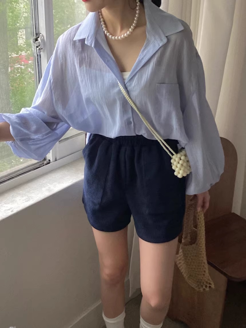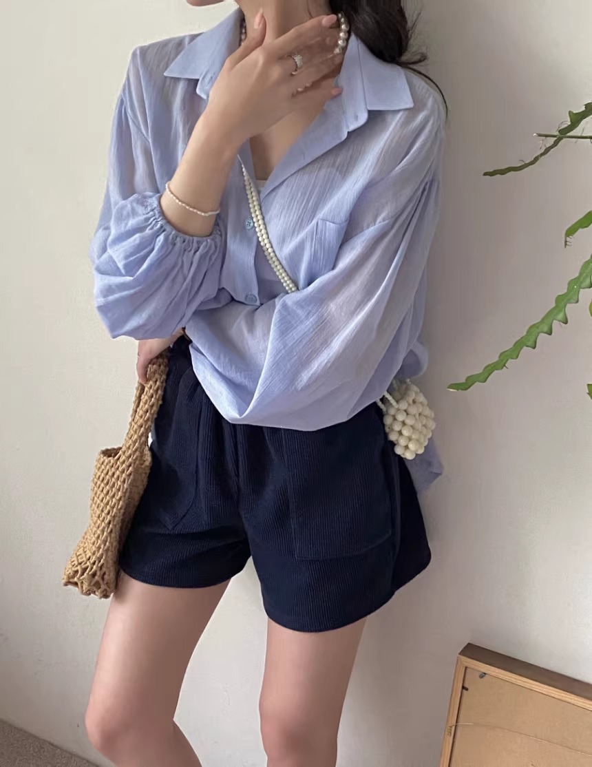 한국 세련된 여름 프랑스 기질 옷깃 시계 다시 분할 디자인 느낌 마이크로 투명 얇은 자외선 차단제 셔츠스토어 가기