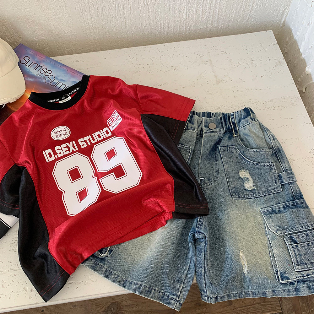 소년 여름 어린이 반팔 티셔츠 2025 여름 새로운 도착 여자 아기 스포츠 빠른 건조 통기성 농구 세트 톱 T