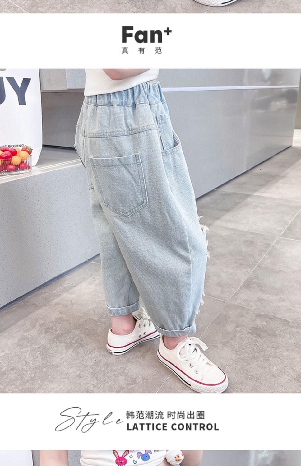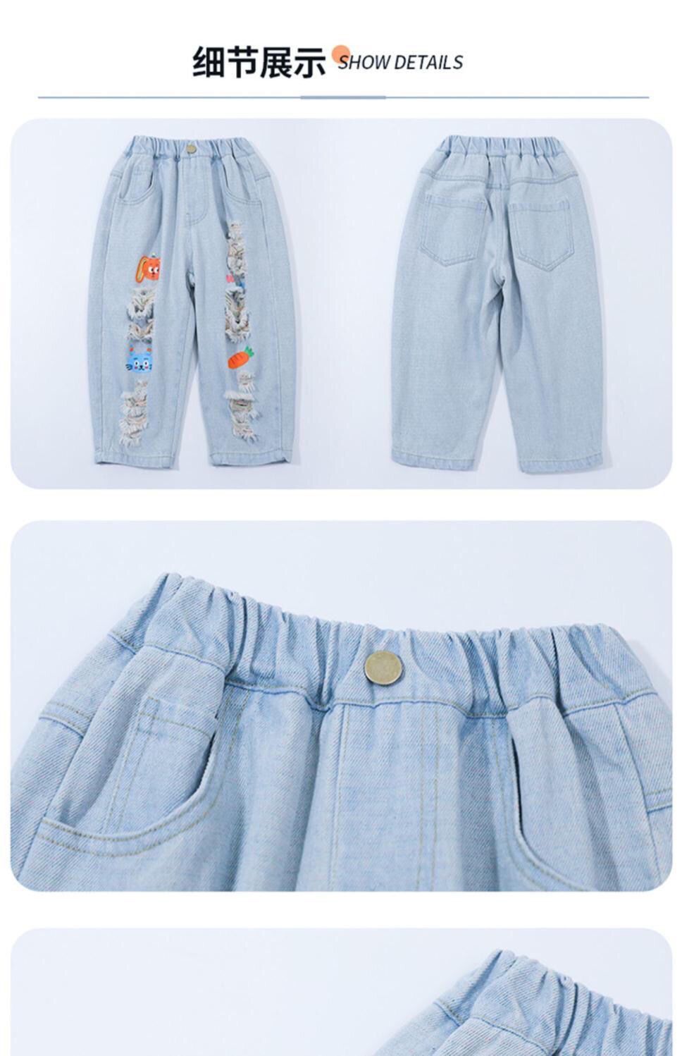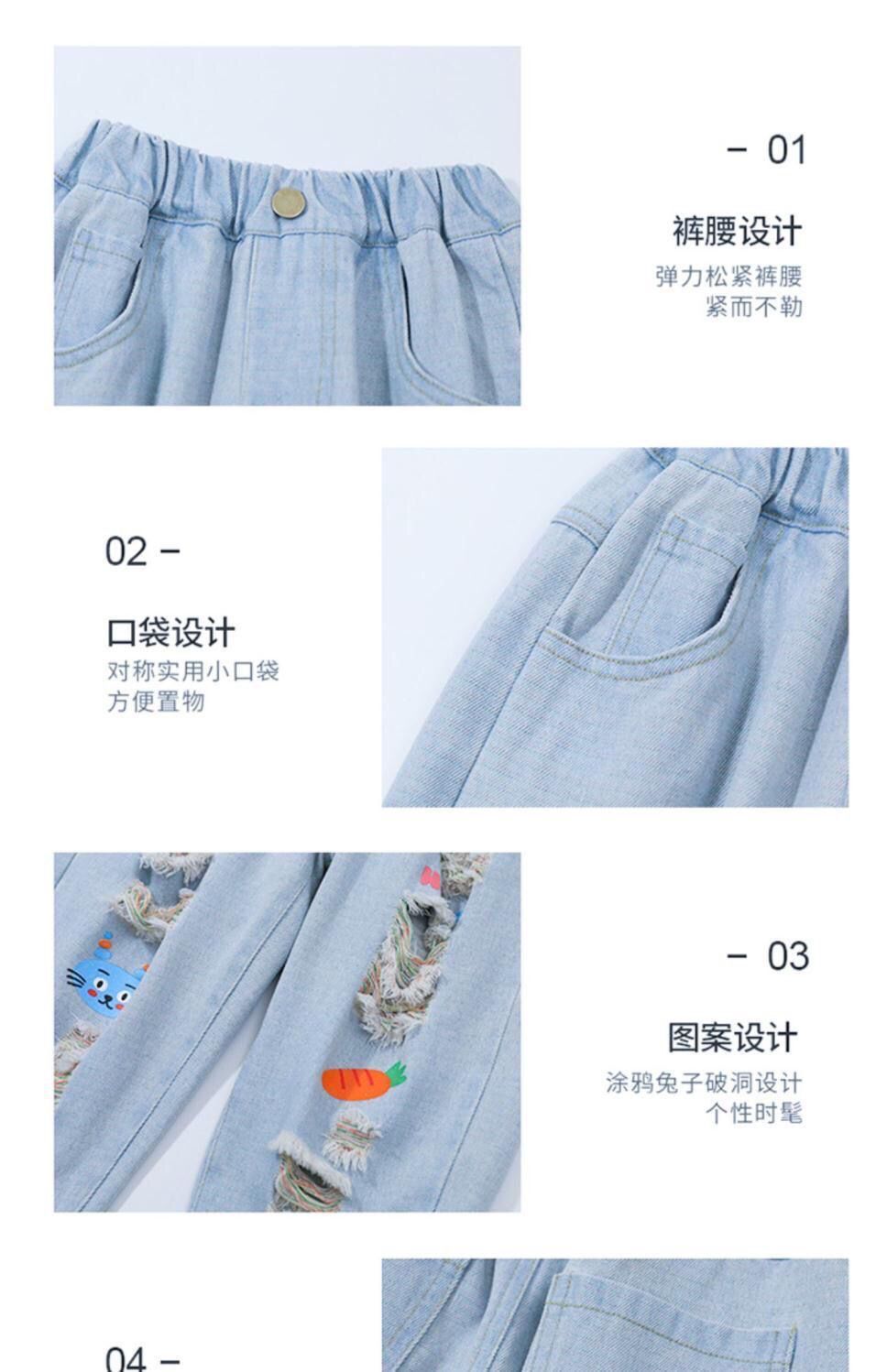 소녀 청바지 여름 새 어린이 낙서 구멍 캐주얼 바지 얇은 남녀 아기 여름 바지
