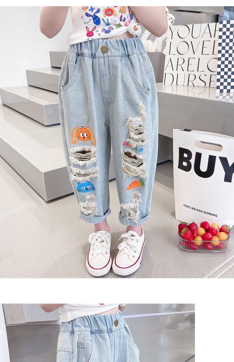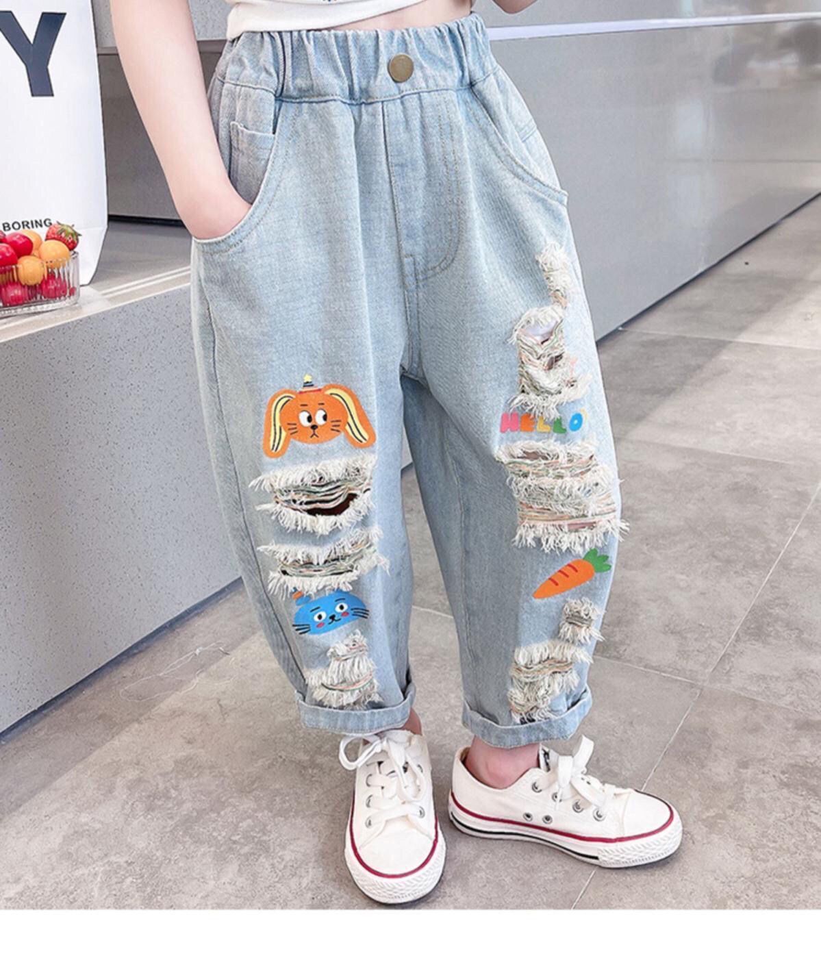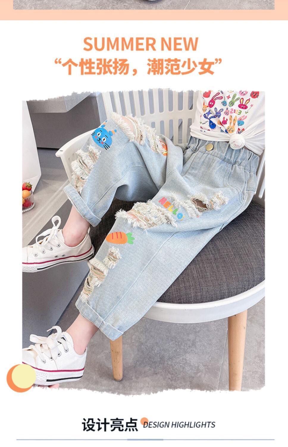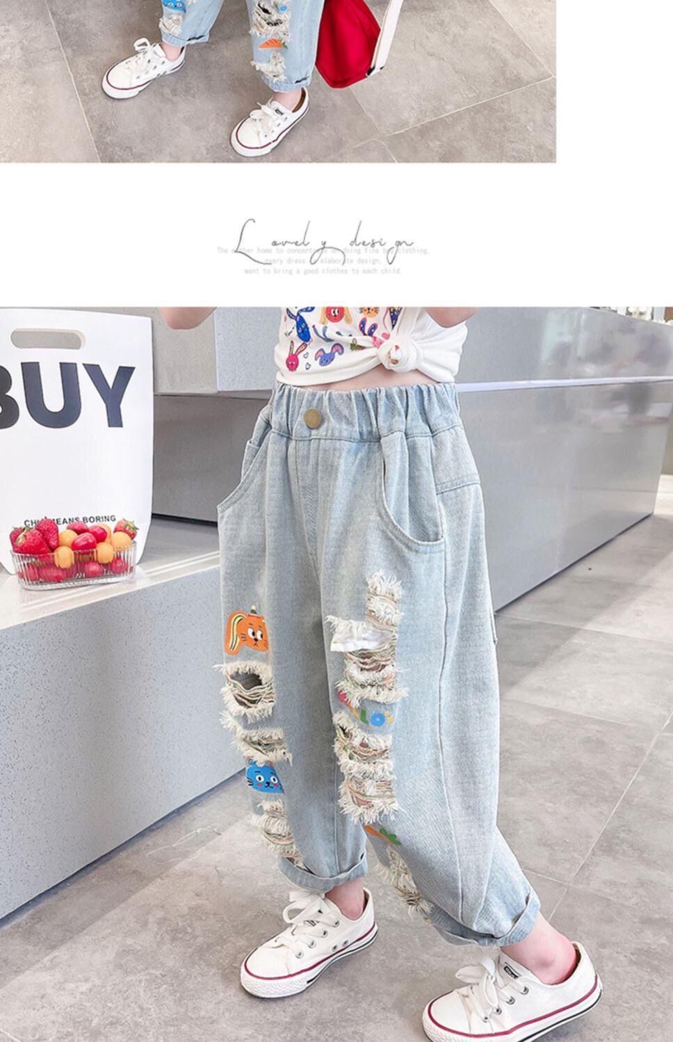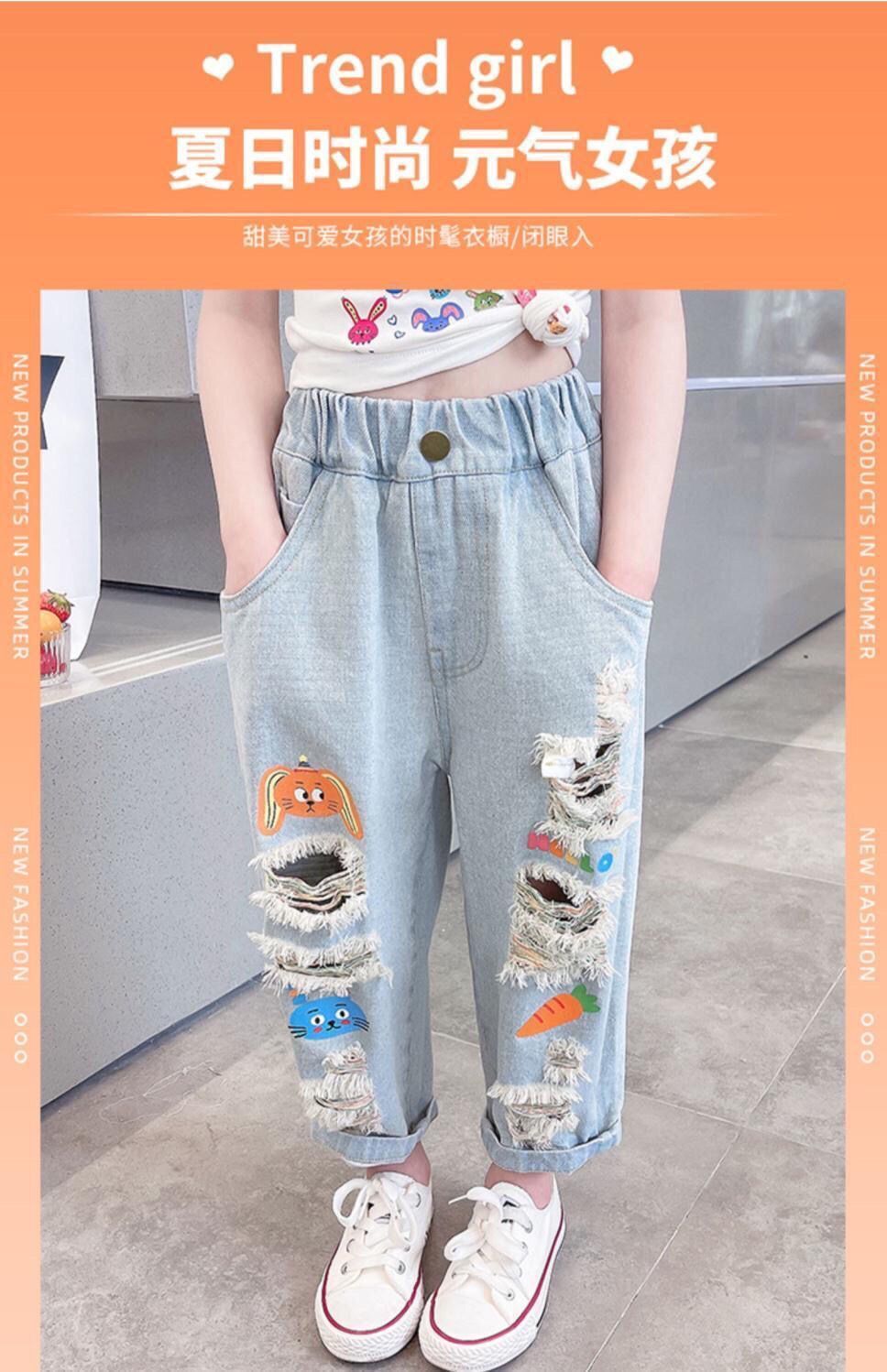소녀 청바지 여름 새 어린이 낙서 구멍 캐주얼 바지 얇은 남녀 아기 여름 바지스토어 가기