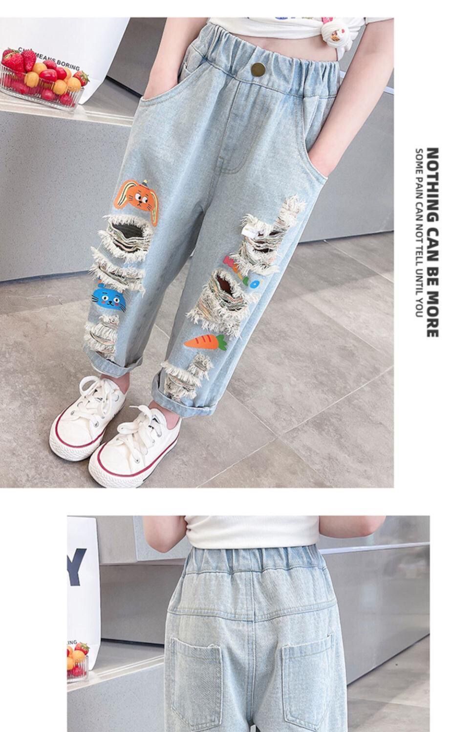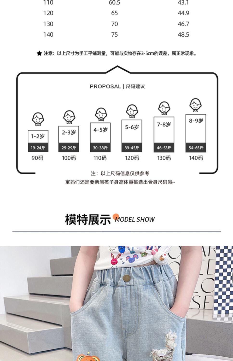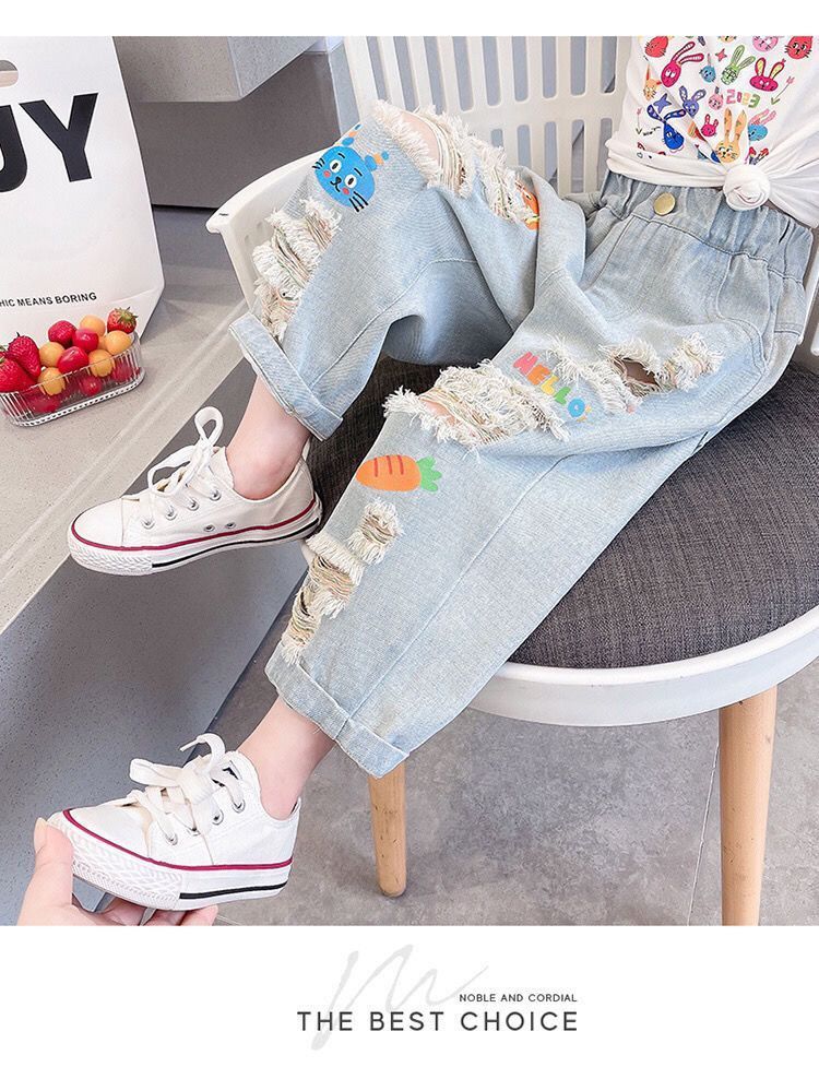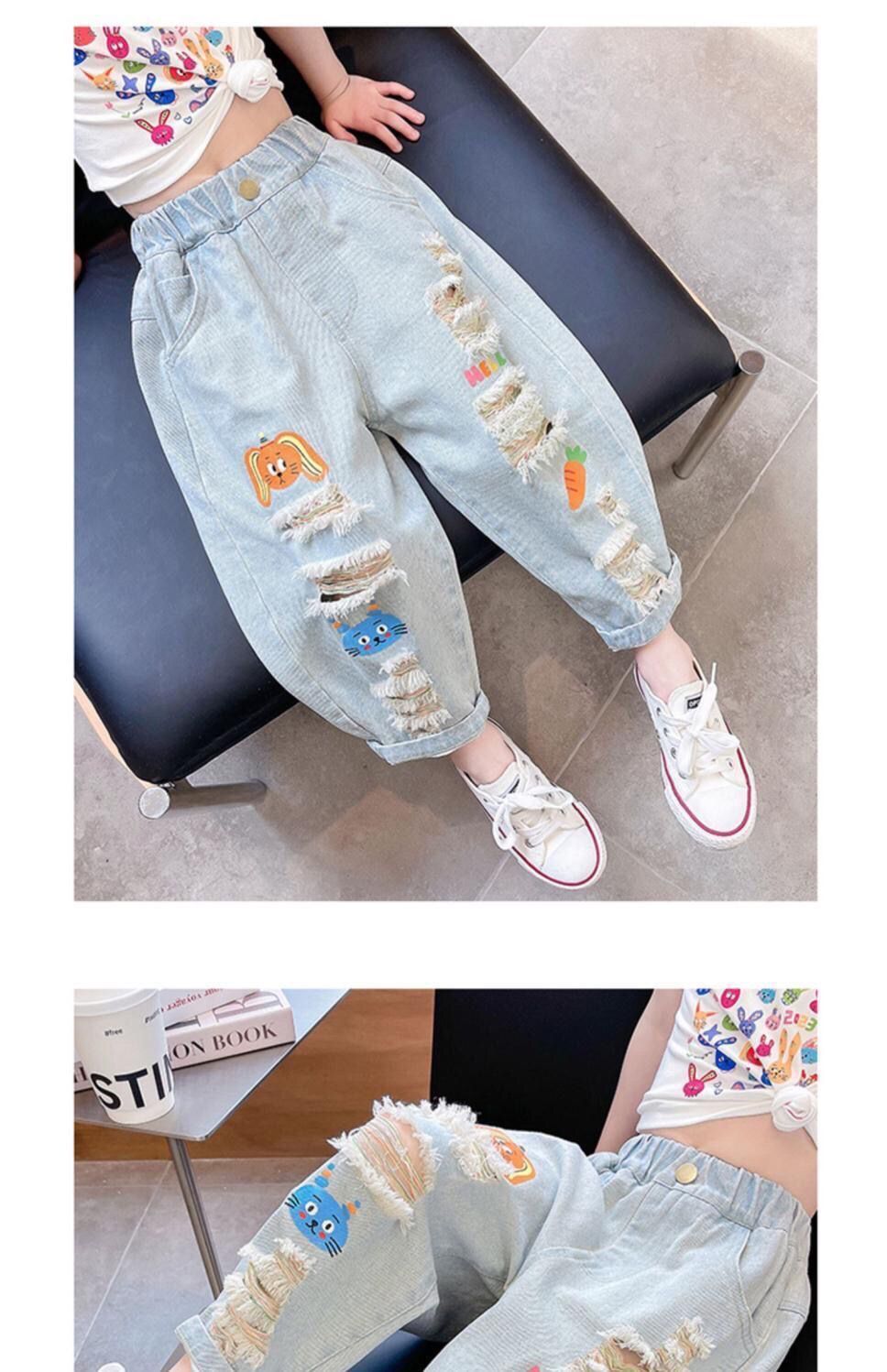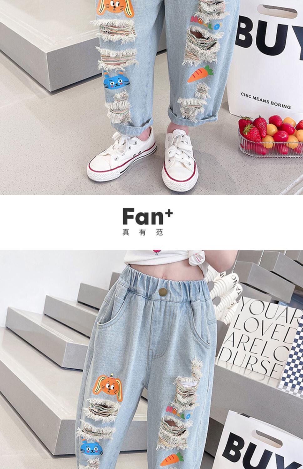 소녀 청바지 여름 새 어린이 낙서 구멍 캐주얼 바지 얇은 남녀 아기 여름 바지스토어 가기