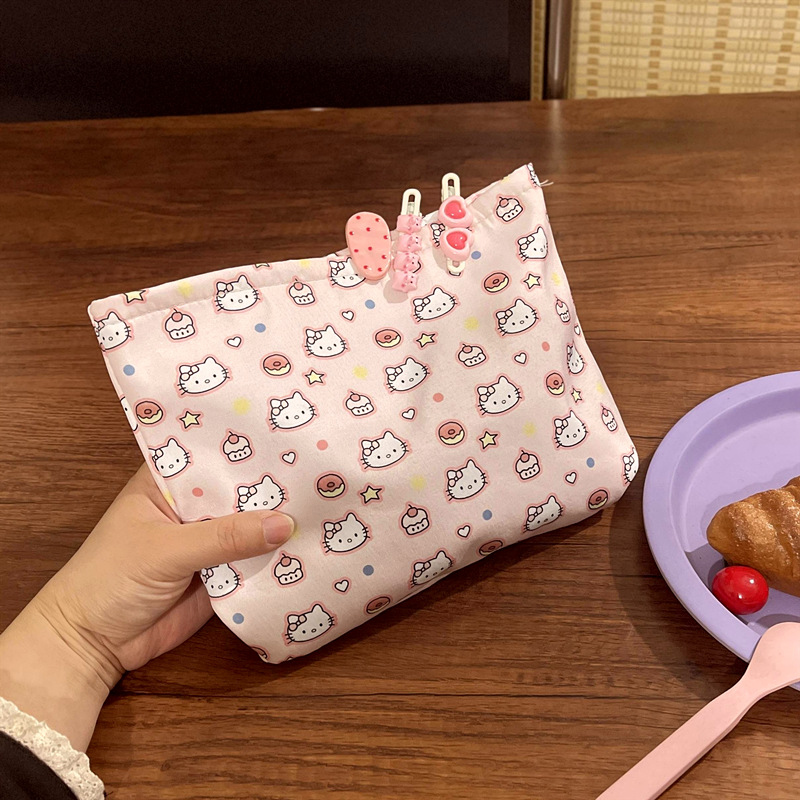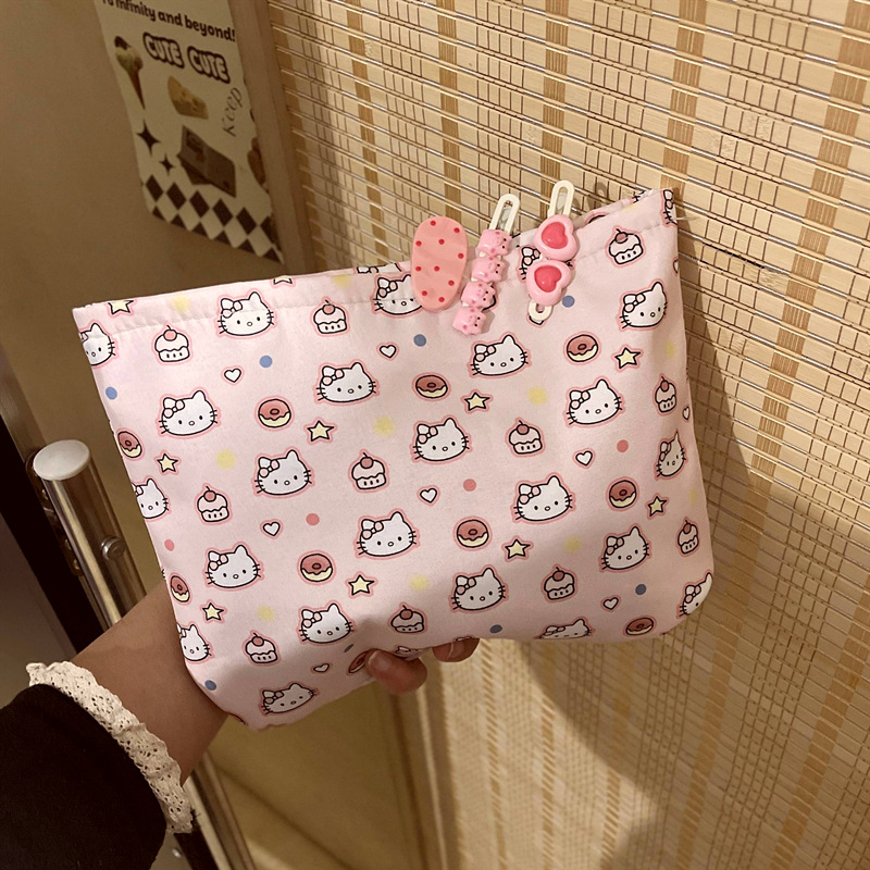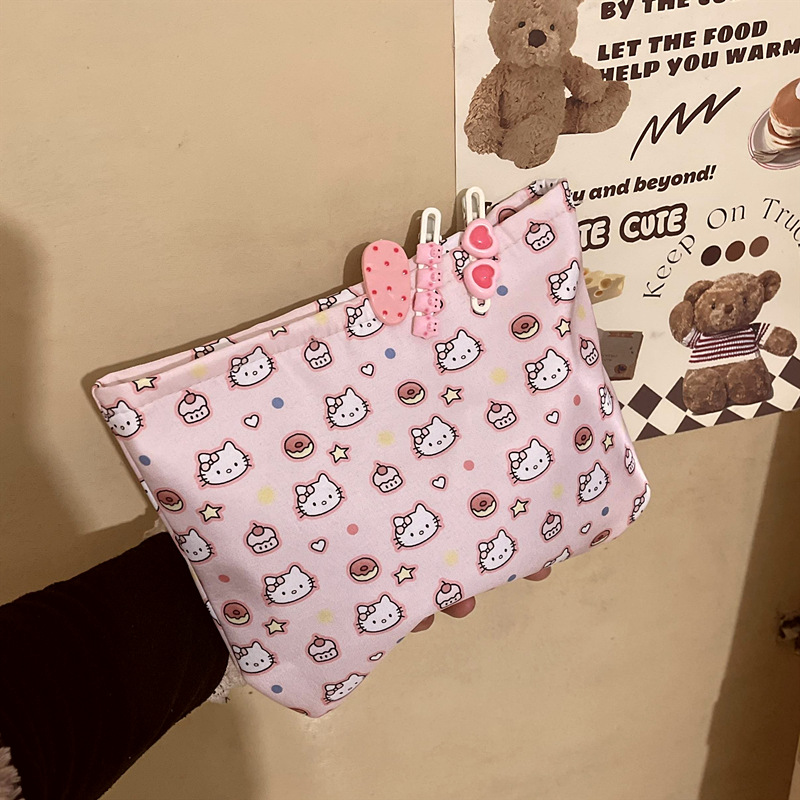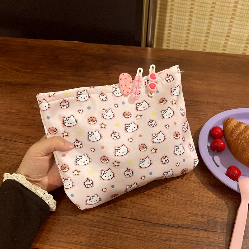 귀여운 만화 고양이 메이크업 가방 KT 고양이 손 가방 중간 고대 내부 가방 휴대용 립스틱 메이크업 보관 가방