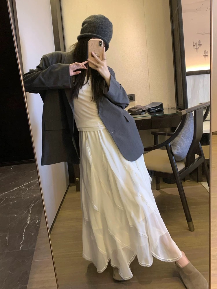1Z1ZGUN 미니어처 왈츠 니치 프렌치 헤비컷 불규칙 요정 스커트
