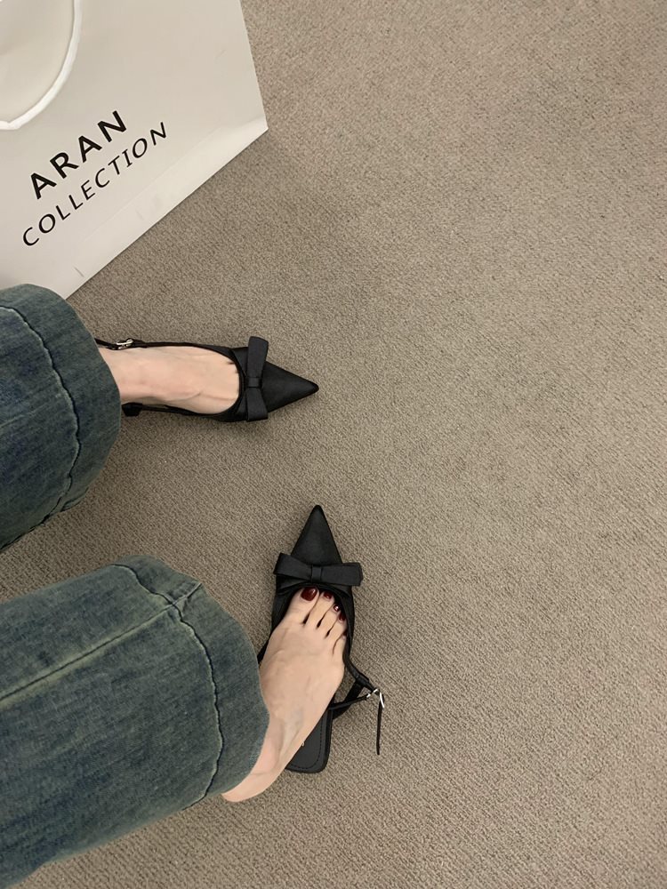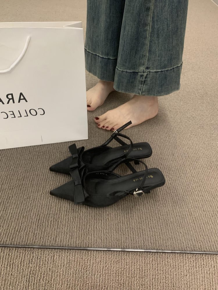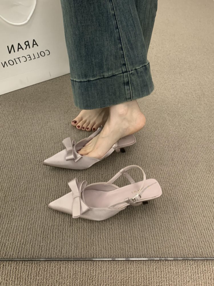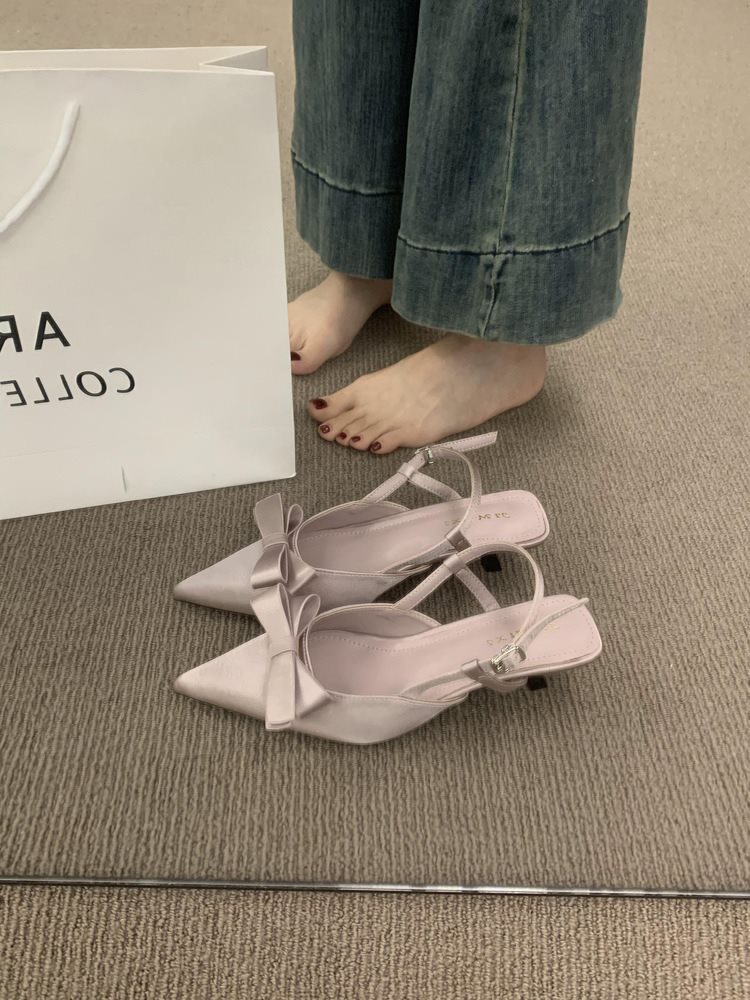 프랑스 스타일의 새틴 활 부드러운 저녁 신발 아름다운 발가락 샌들 여성 신발 하이힐 싱글 레이어 신발스토어 가기