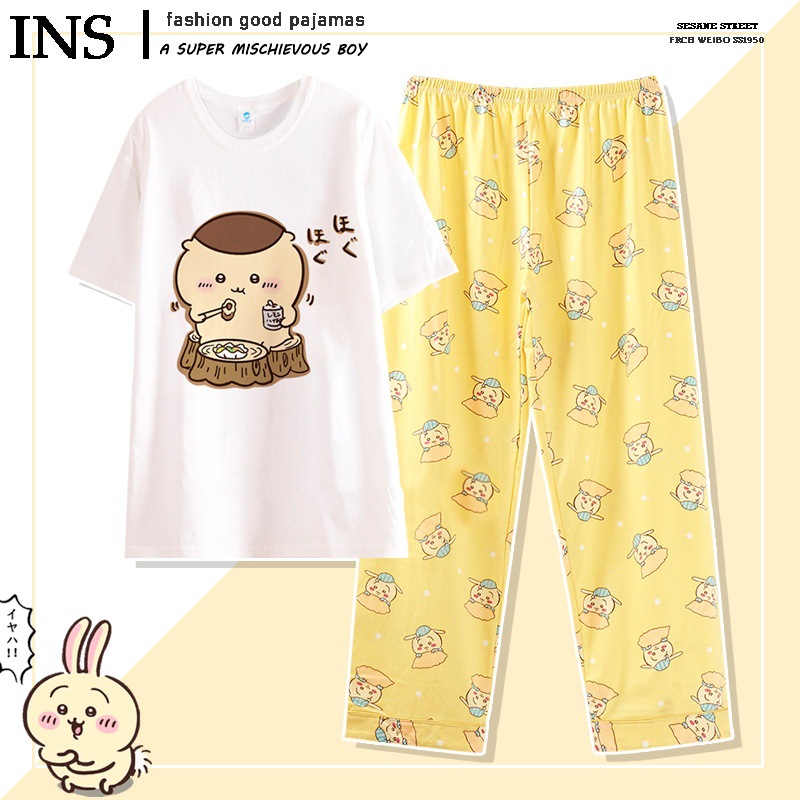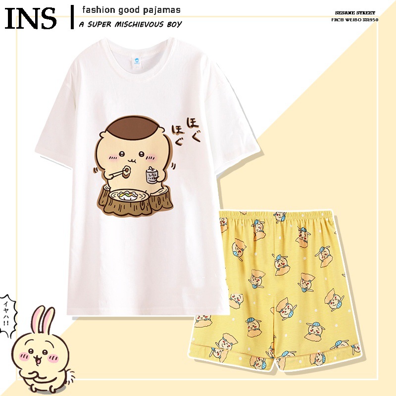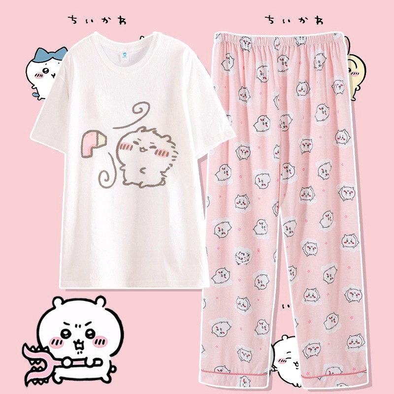 일본식 지이카 와우 치카와 파자마 여성 반팔 여름 순면 귀여운 사용 인터넷 레드 스타일 홈 의류