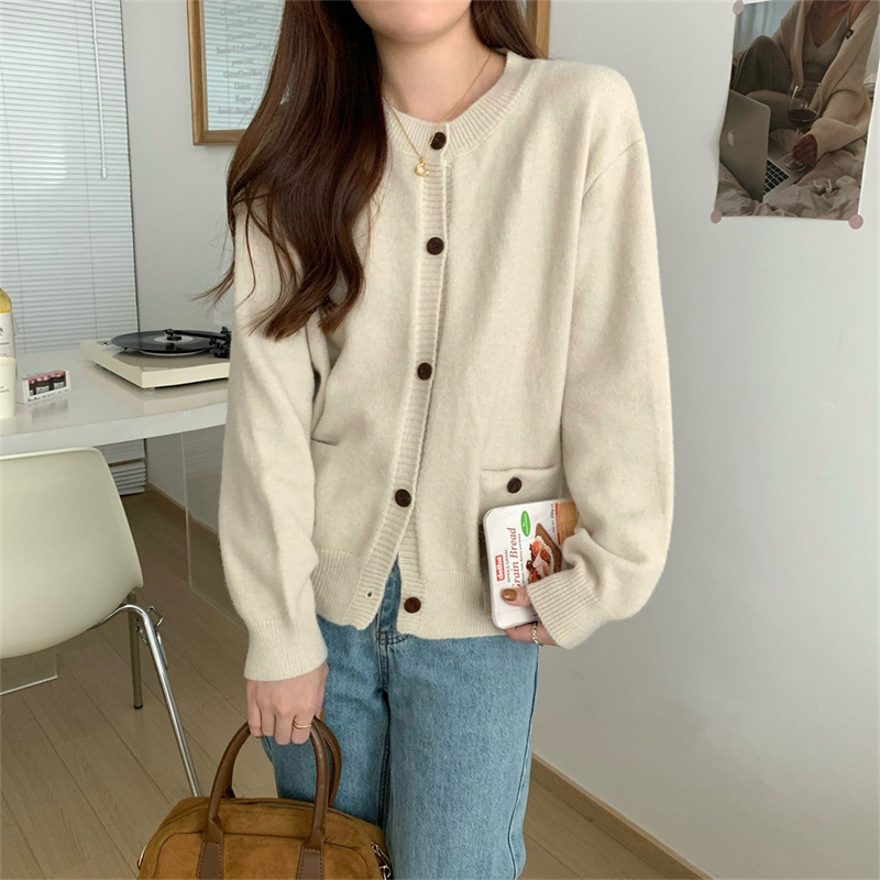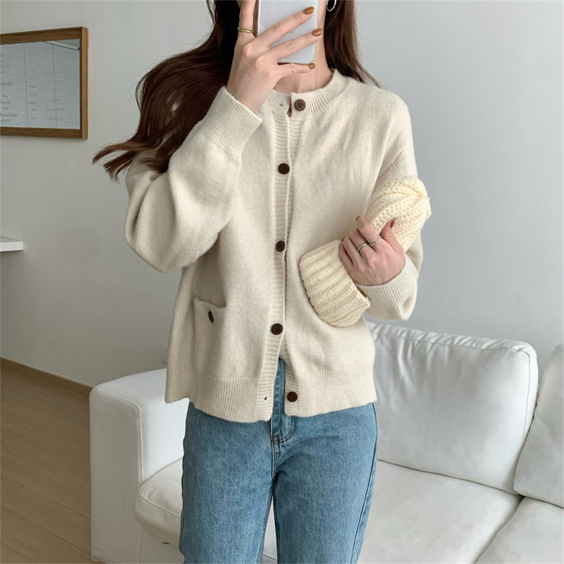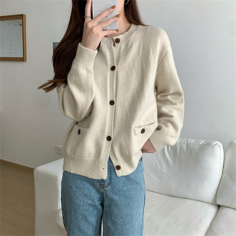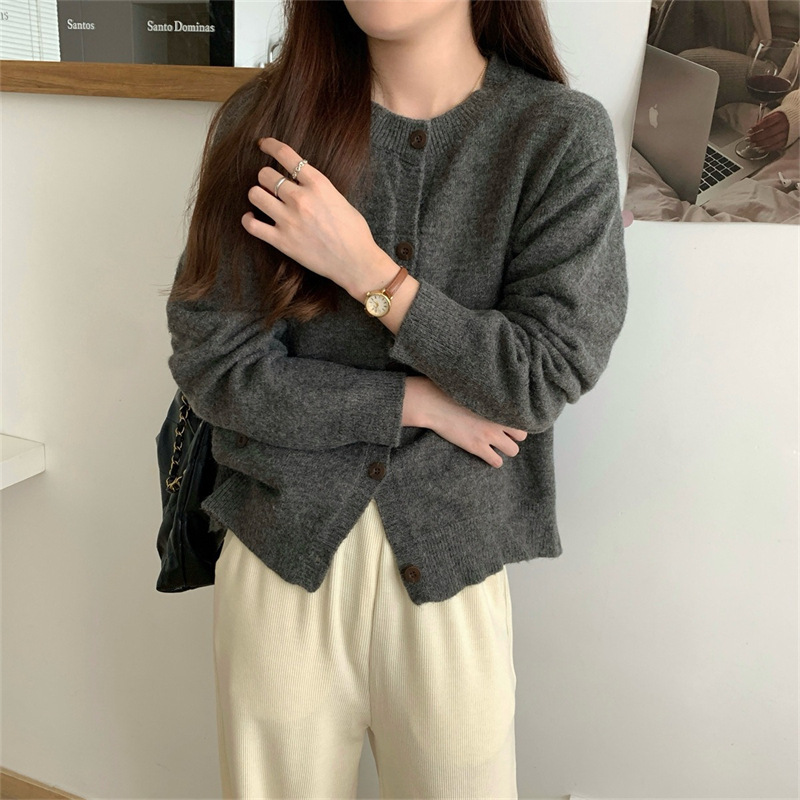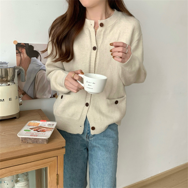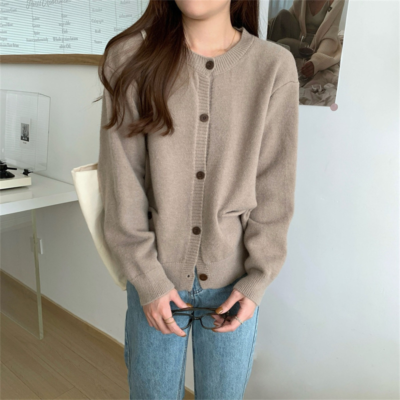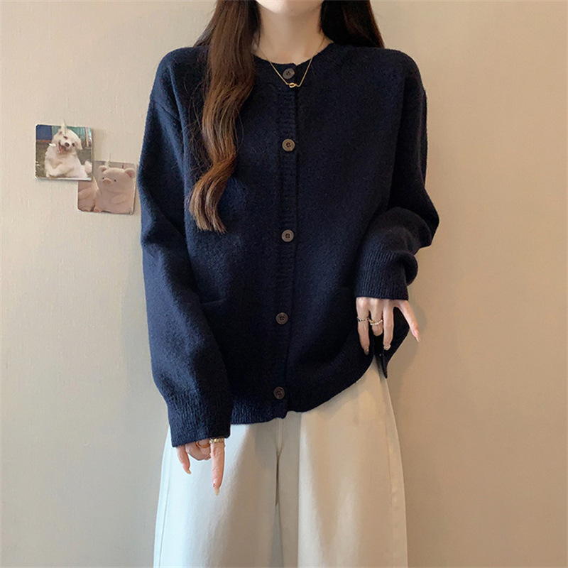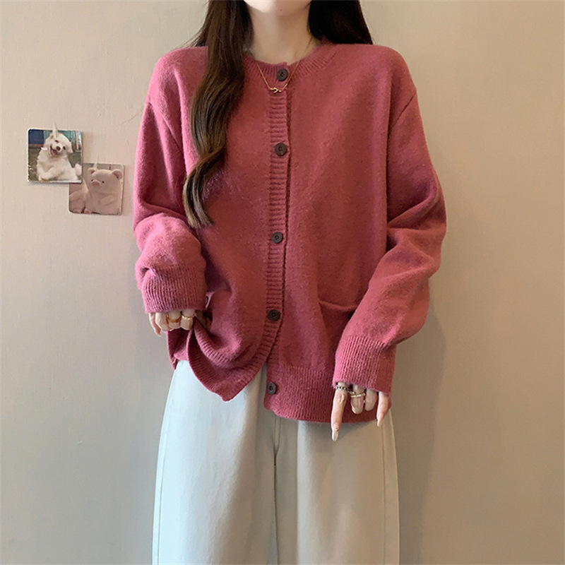 한국 스타일 부드럽고 여유로운 니트 여성용 코트 2025 가을 겨울 신상 루즈핏 긴팔 여성 니트 가디건 상의