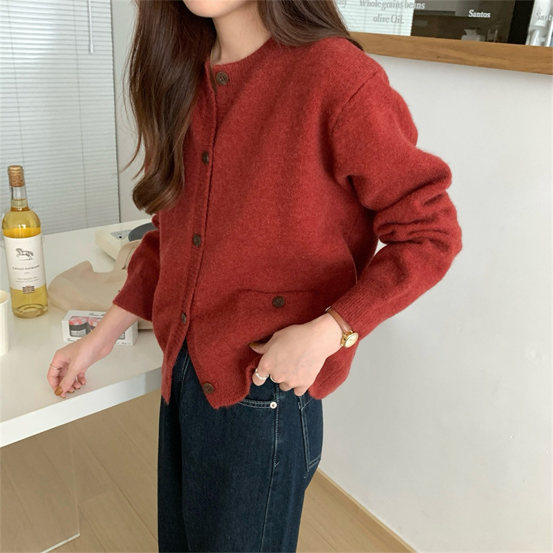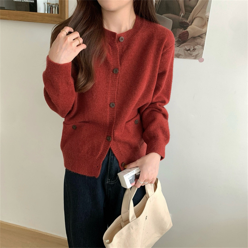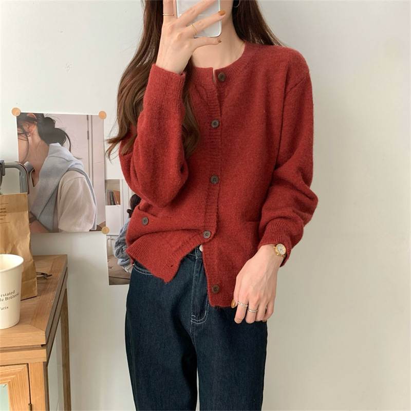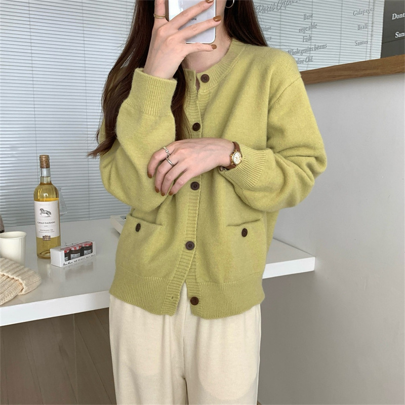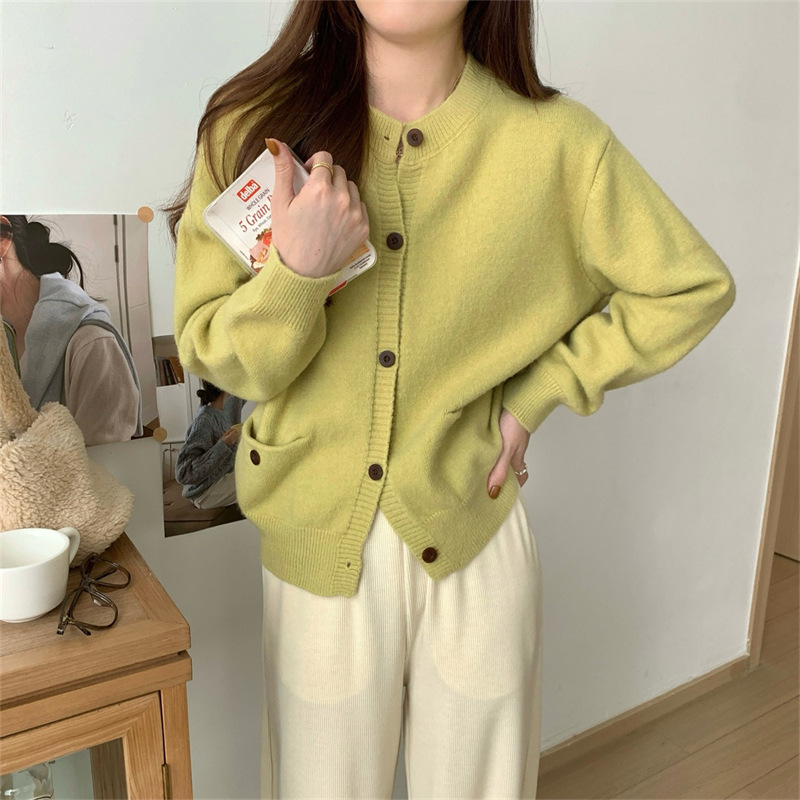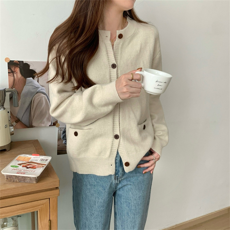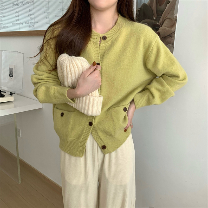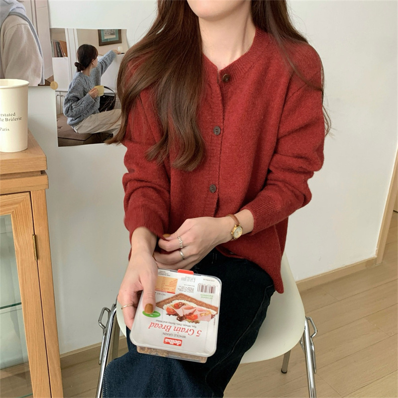 한국 스타일 부드럽고 여유로운 니트 여성용 코트 2025 가을 겨울 신상 루즈핏 긴팔 여성 니트 가디건 상의