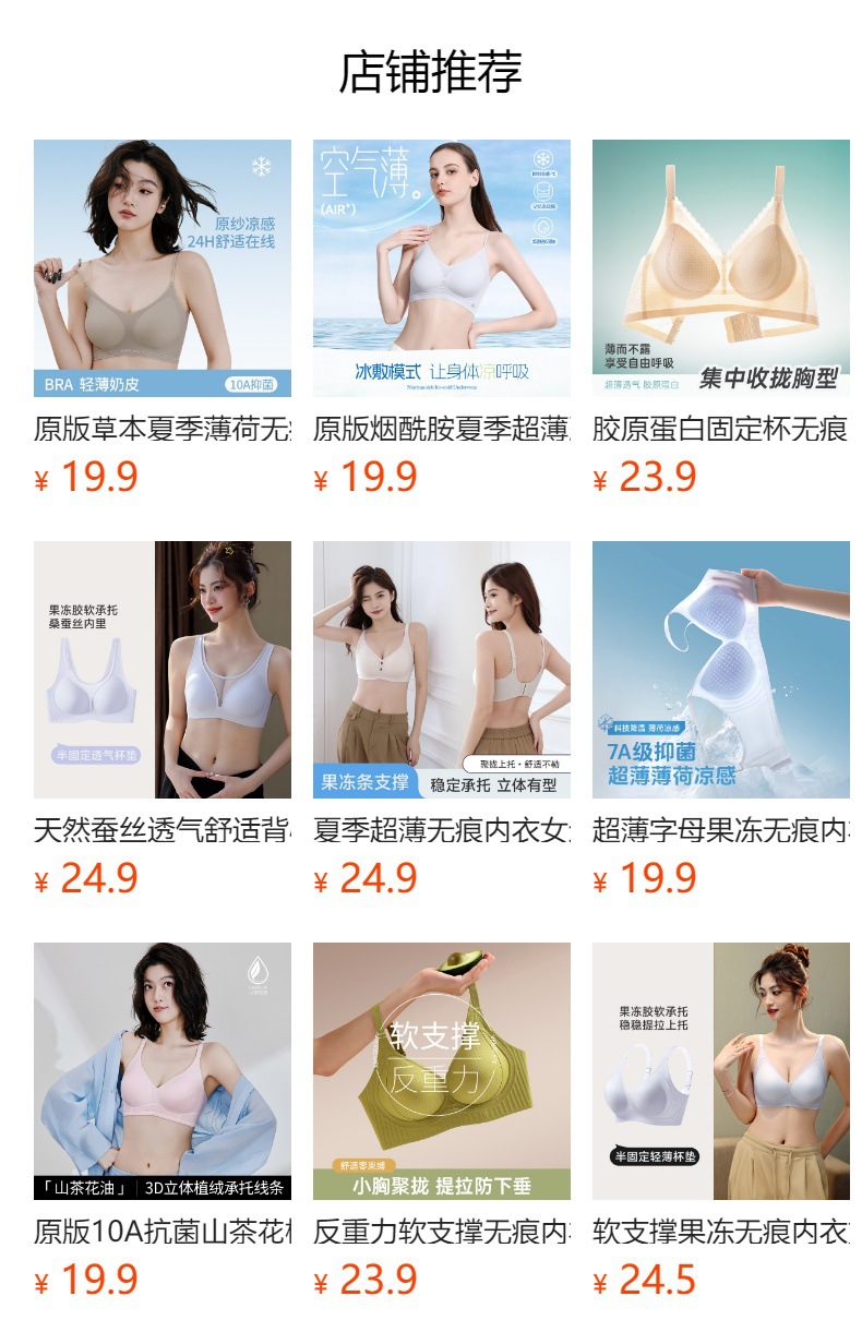 오리지널 10A 항균 허브 젤리 스트립 여성용 심리스 속옷 브라 얇은 작은 가슴 푸시 업 브라스토어 가기