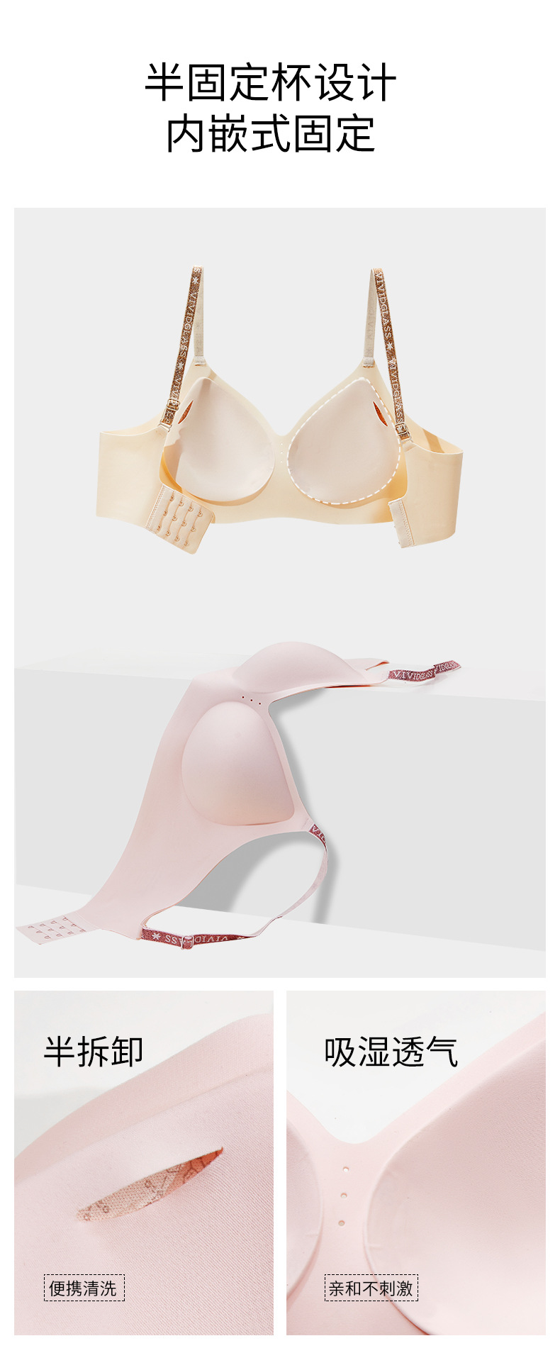 오리지널 10A 항균 허브 젤리 스트립 여성용 심리스 속옷 브라 얇은 작은 가슴 푸시 업 브라
