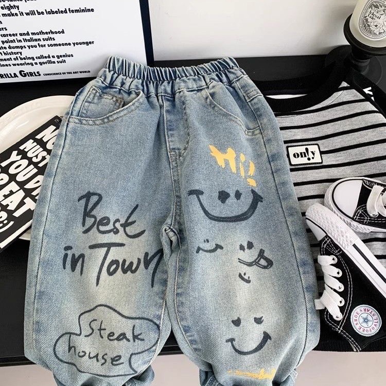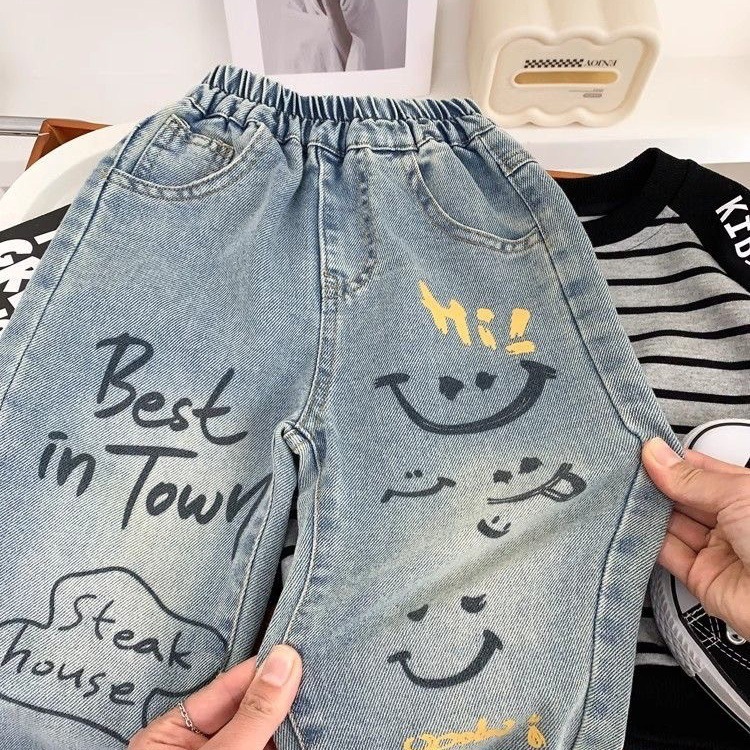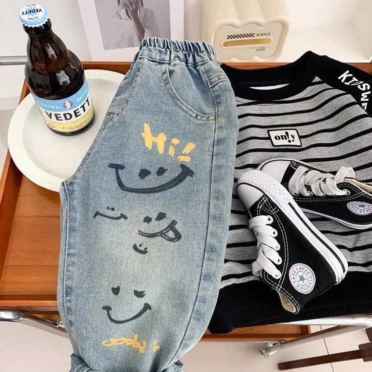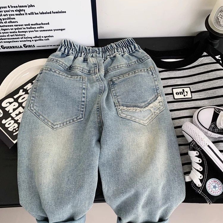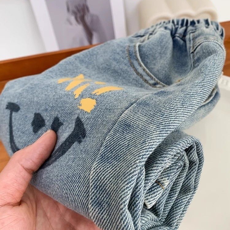새로운 어린이 청바지 봄과 가을 바지 어린이와 아기 바지 느슨한 어린이 캐주얼 유행 바지스토어 가기