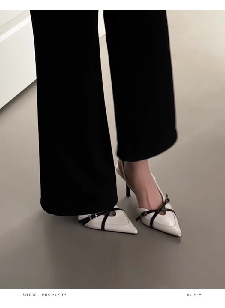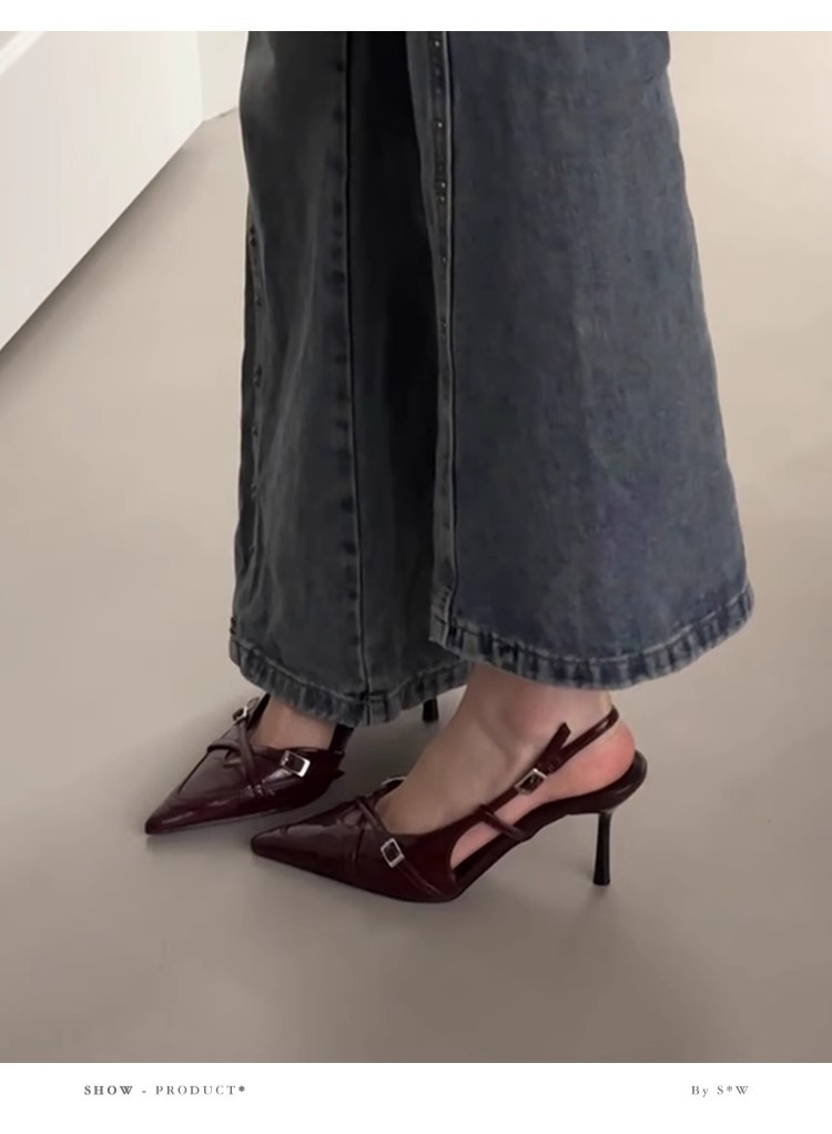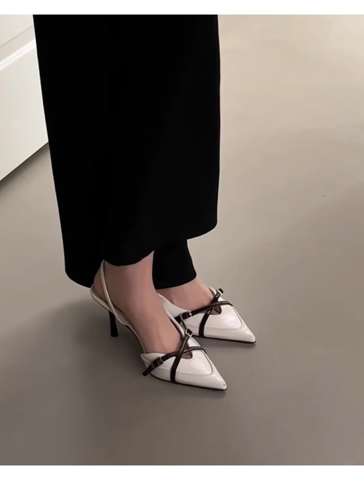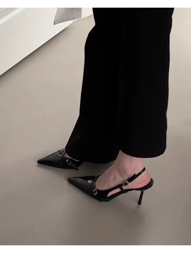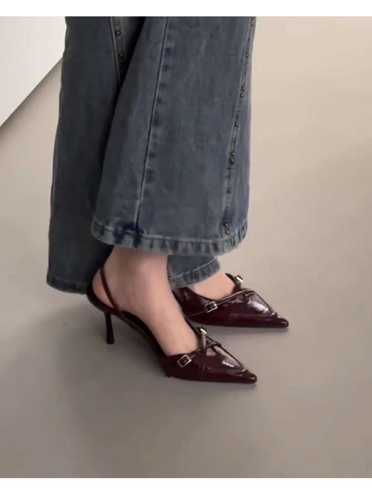 양가죽 버전 ~ 프랑스 기질 얕은 입 뒷여행 페달 샌들 여성 뾰족한 십자가 버클 조커 왕실 자매 신발스토어 가기