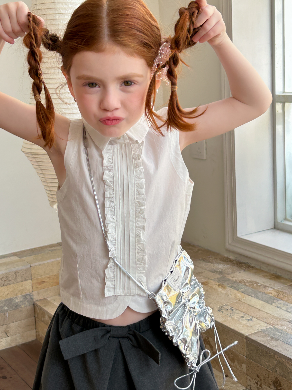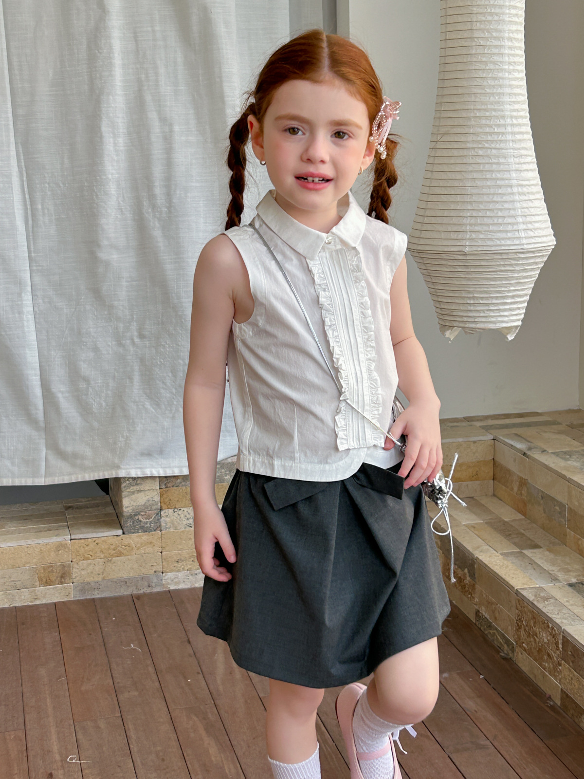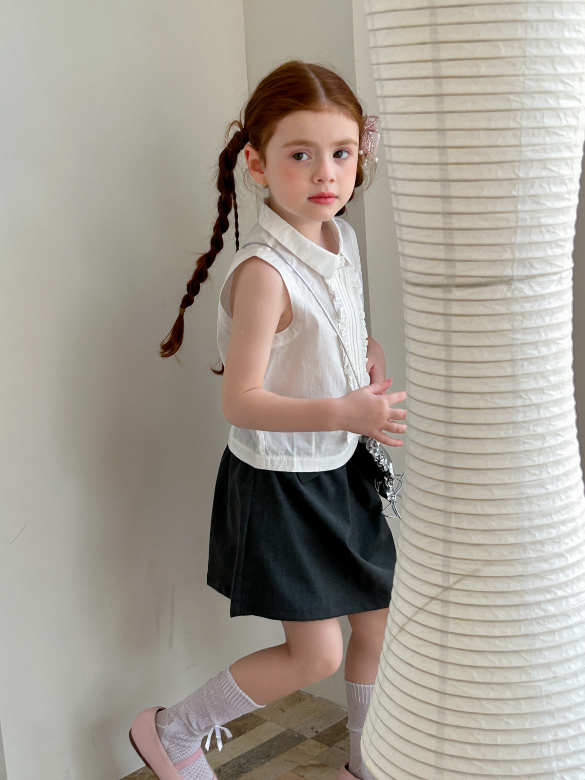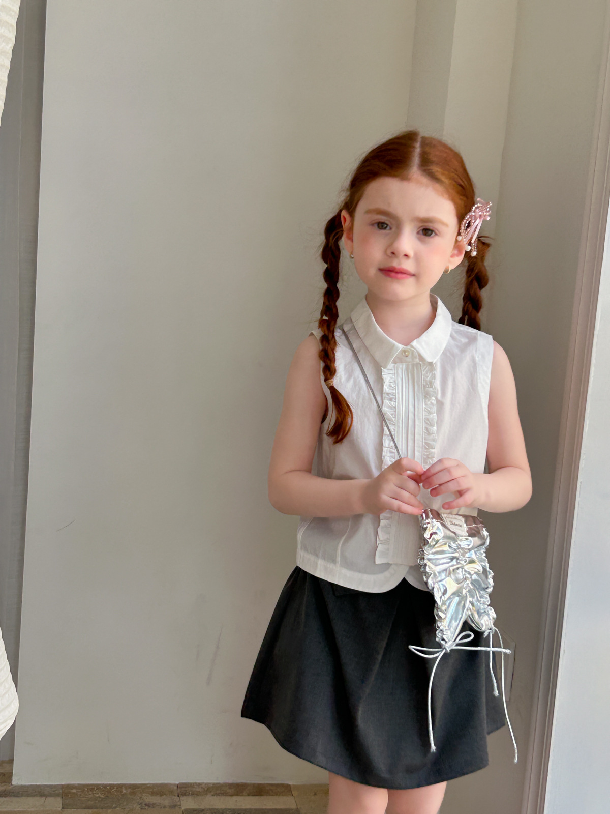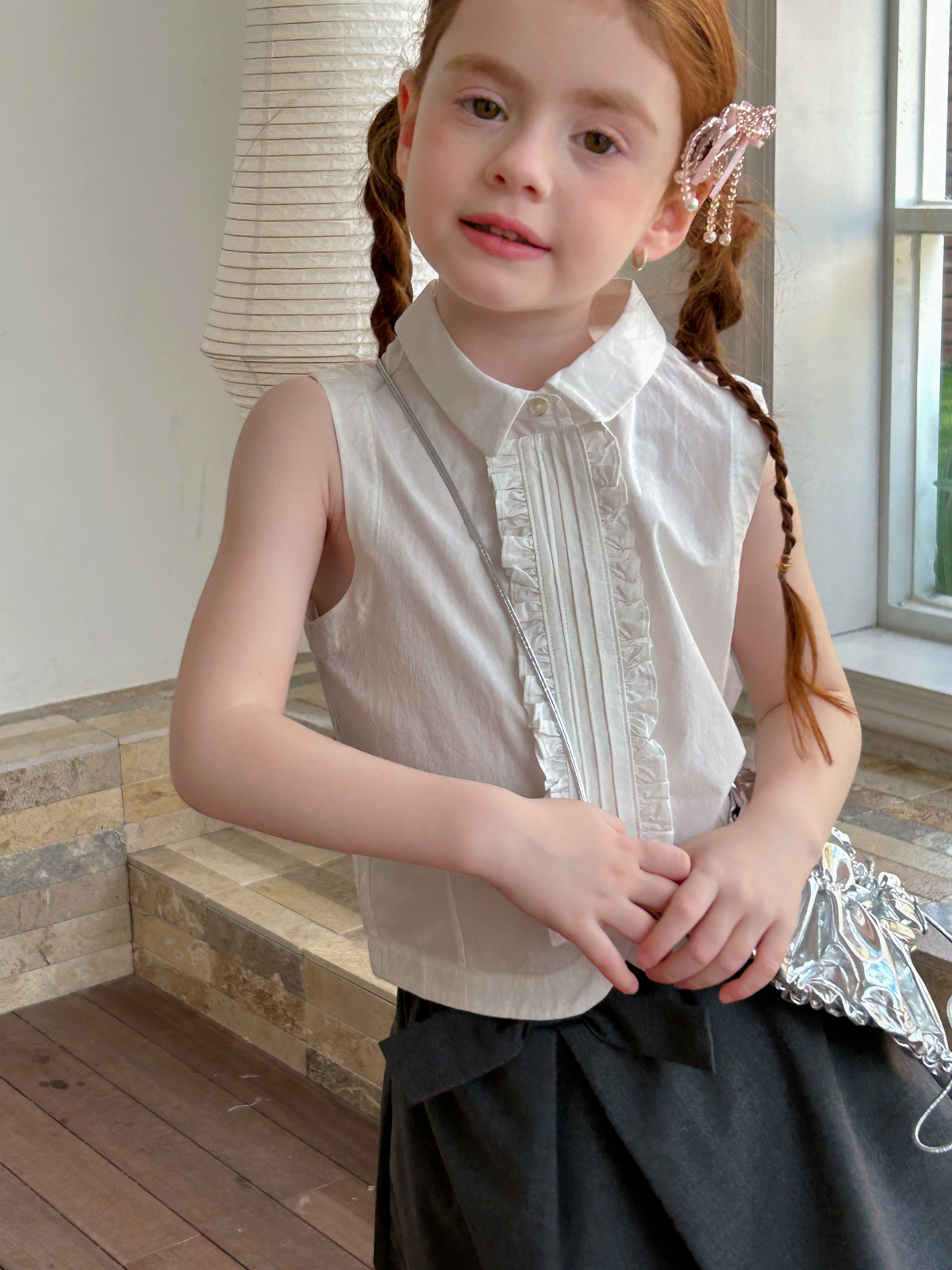2025 여름 새로운 소녀 틈새 디자인 센스 러플 레이스 간단한 민소매 조끼 어린이 셔츠 탑