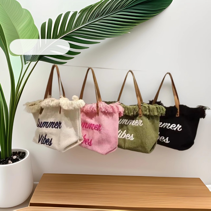 가방 2025 새로운 한국 편지 술 캔버스 가방 여성 대용량 단순 통근 학생 어깨 가방