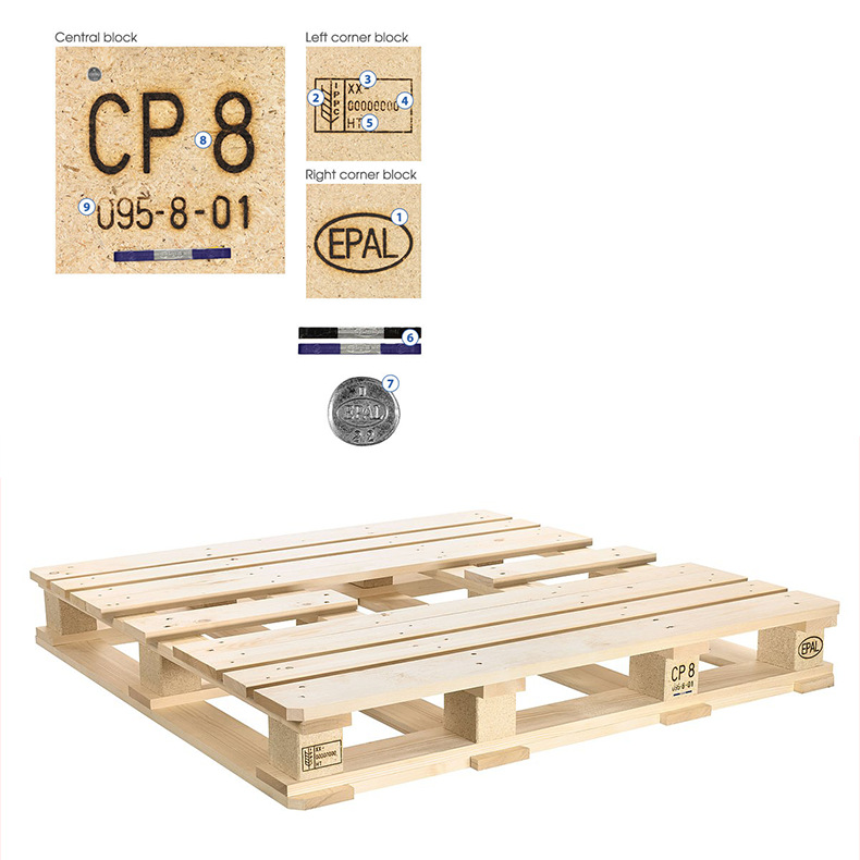 유럽 표준 epal 팔레트 CP1/CP2/CP3/CP8 카드보드 사면 포크리프트 사용 가능 살충 처리된 소나무 수출용 물류 팔레트