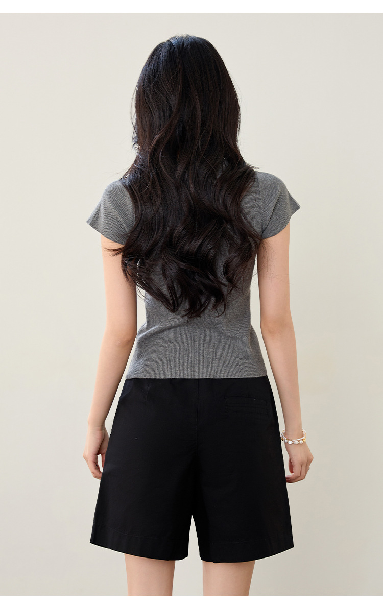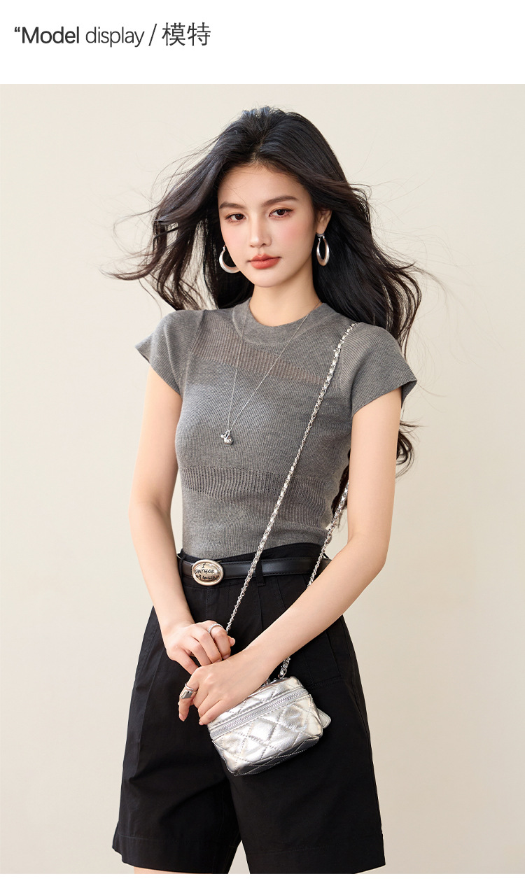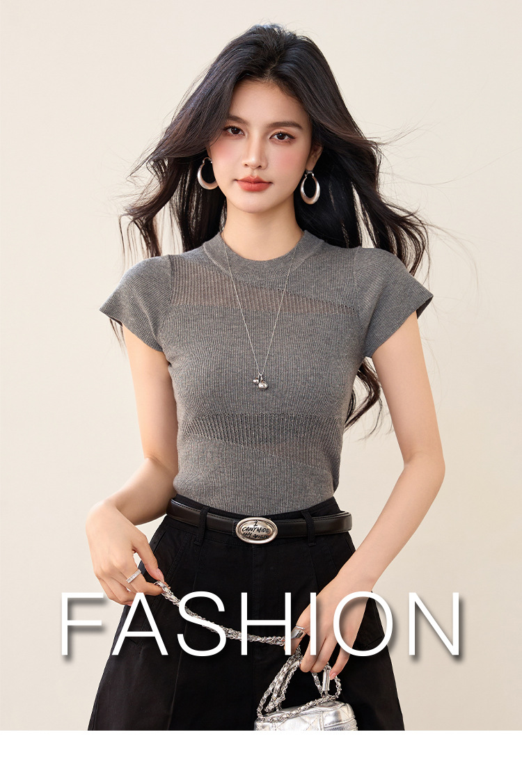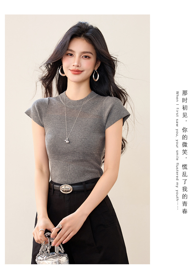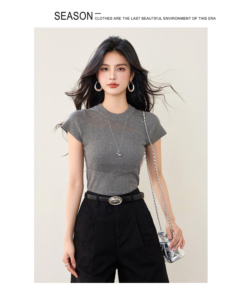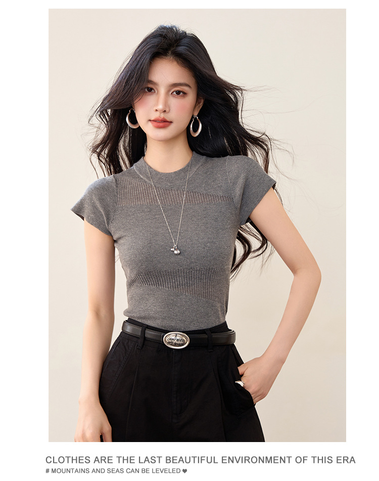 2025 년 여름 새로운 한국 스타일 가볍게 성숙한 착용 슬리밍 우아한 반팔 중공 디자인 짧은 니트 탑 여성스토어 가기