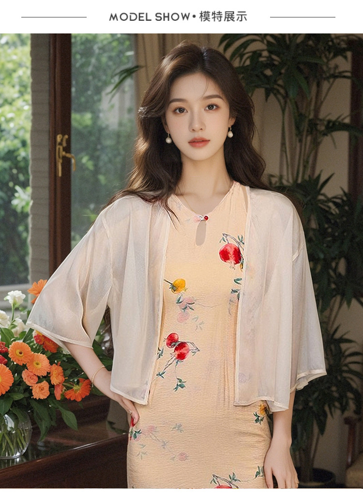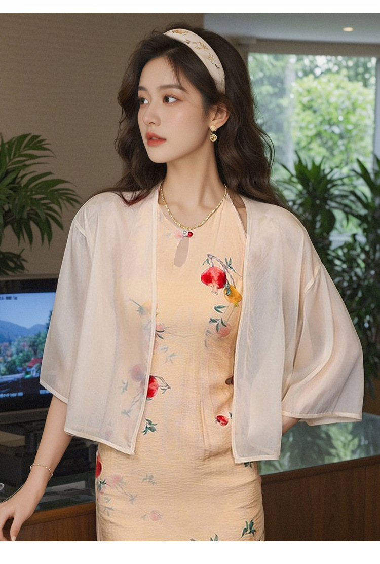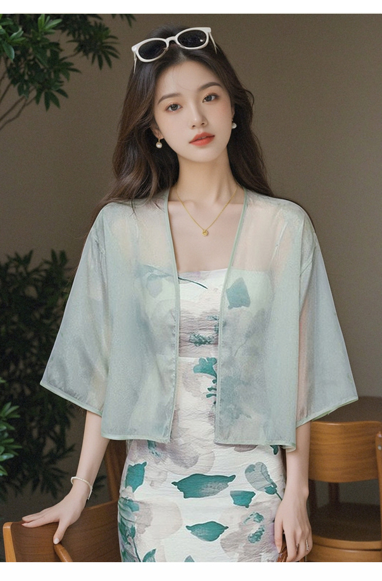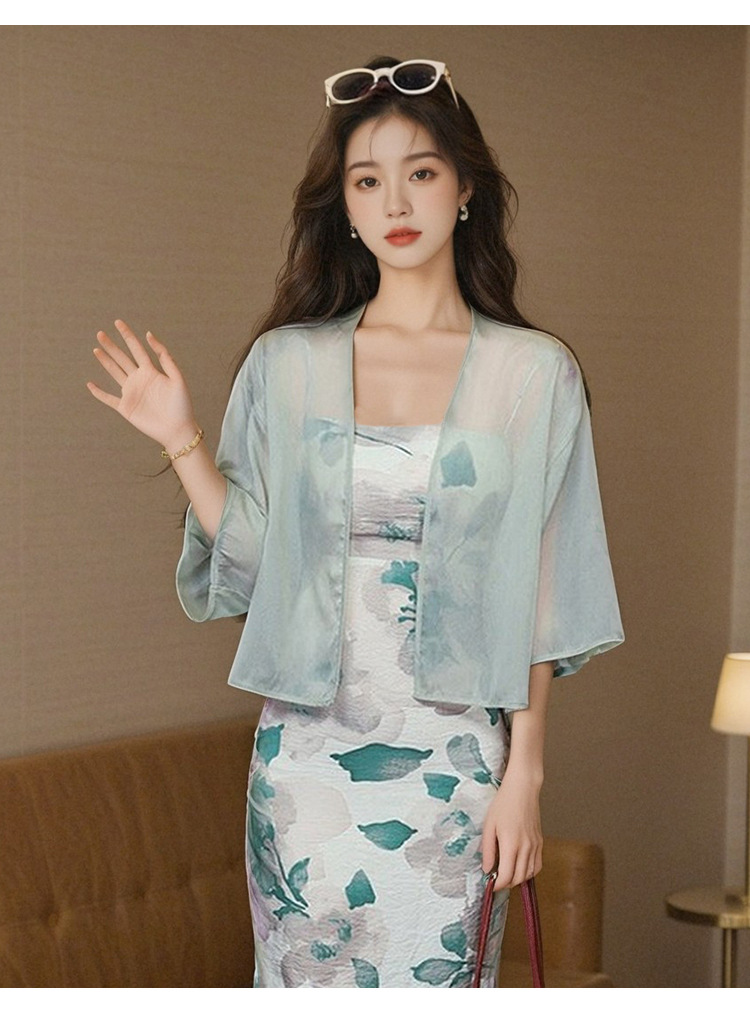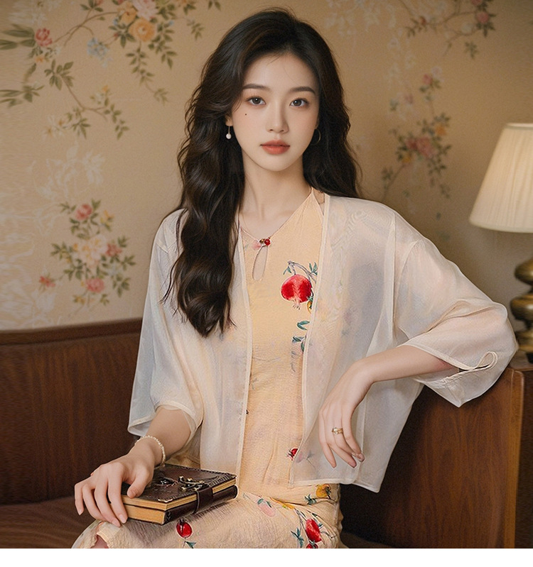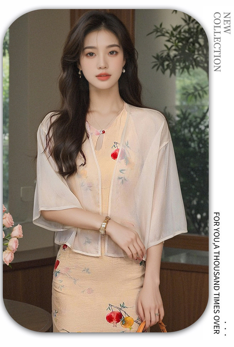 새로운 중국 스타일 국가 스타일 쉬폰 작은 목도리 2025 여름 새로운 태양 보호 카디건 여성의 7부 소매 얇은 겉옷