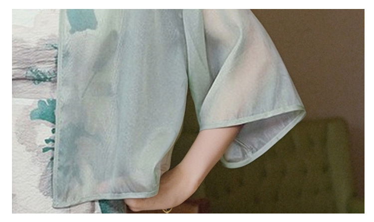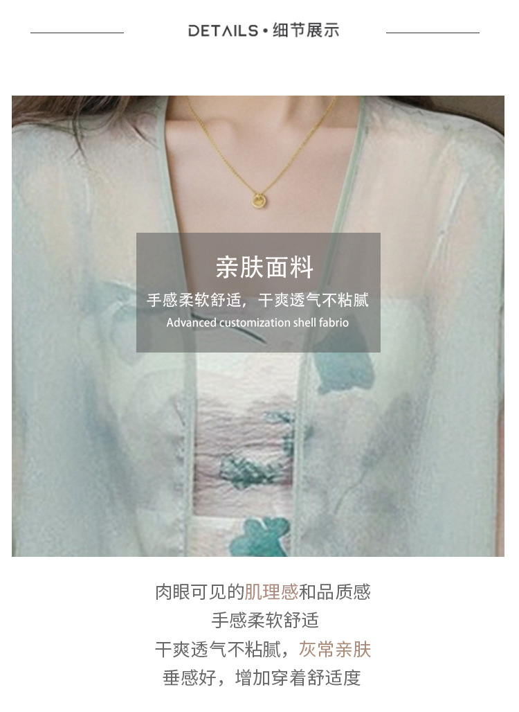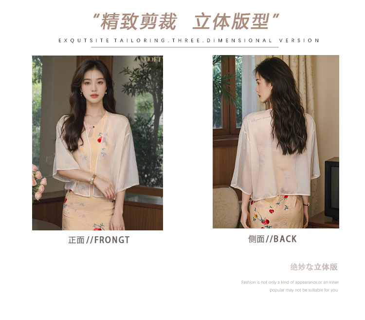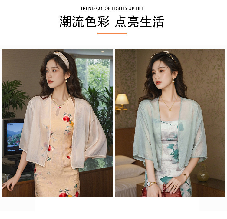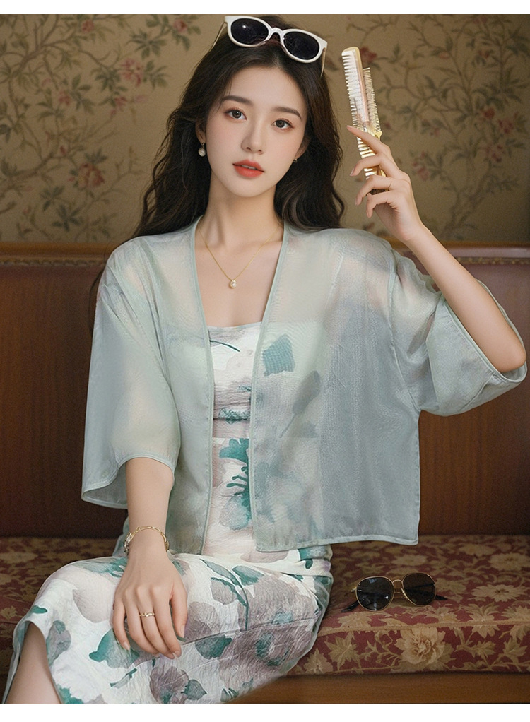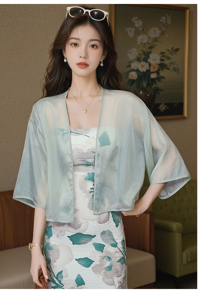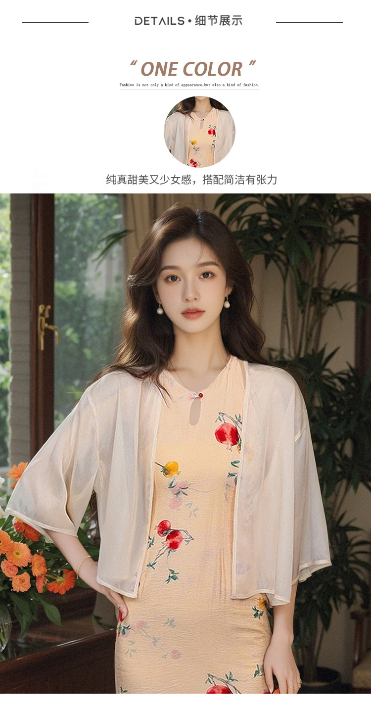 새로운 중국 스타일 국가 스타일 쉬폰 작은 목도리 2025 여름 새로운 태양 보호 카디건 여성의 7부 소매 얇은 겉옷